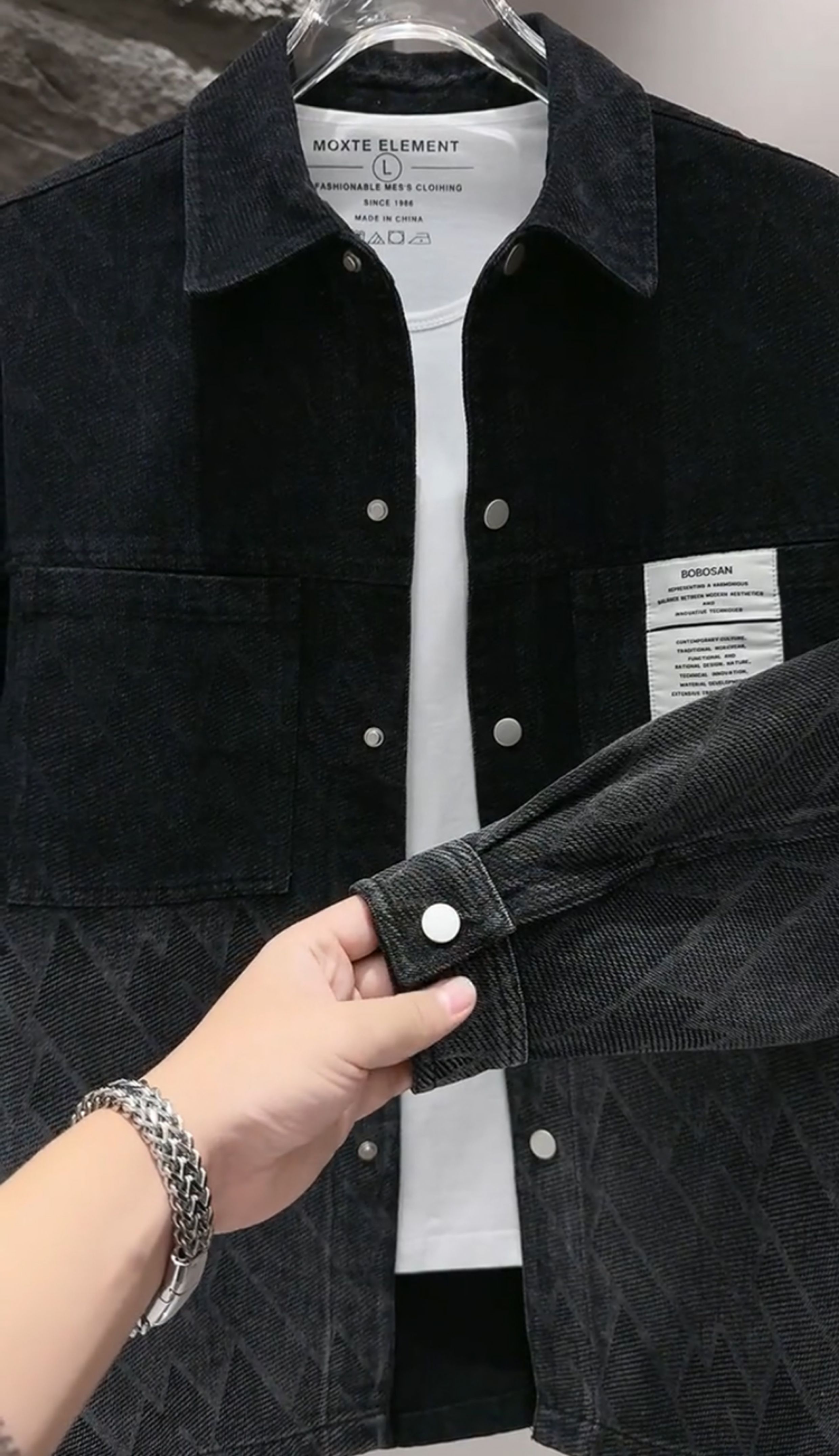 Fleece-Lined Thick Denim Jacket for Men, Trendy Autumn and Winter Casual Heavyweight American Retro Style Outerwear with a Turn-Down Collar