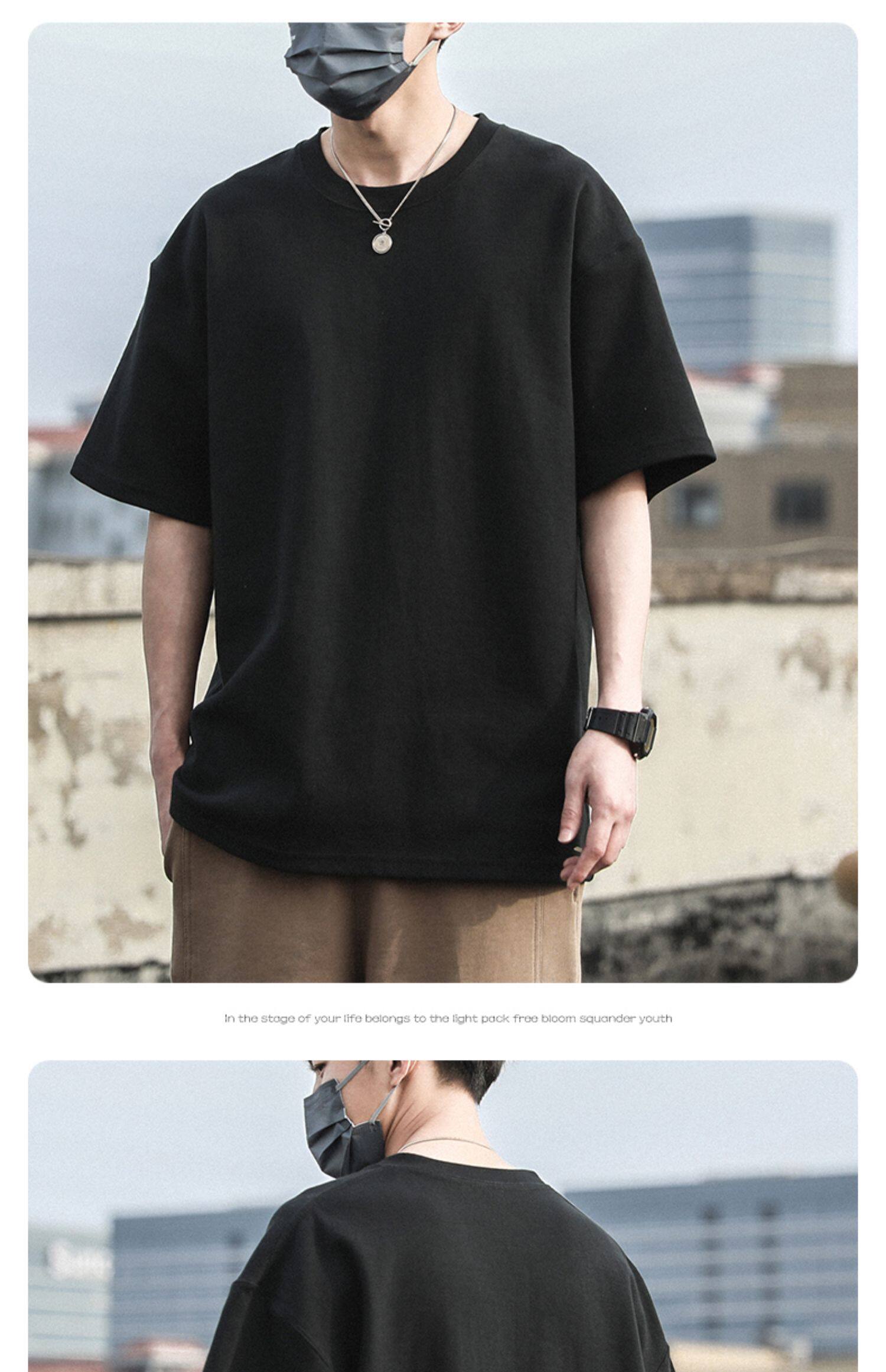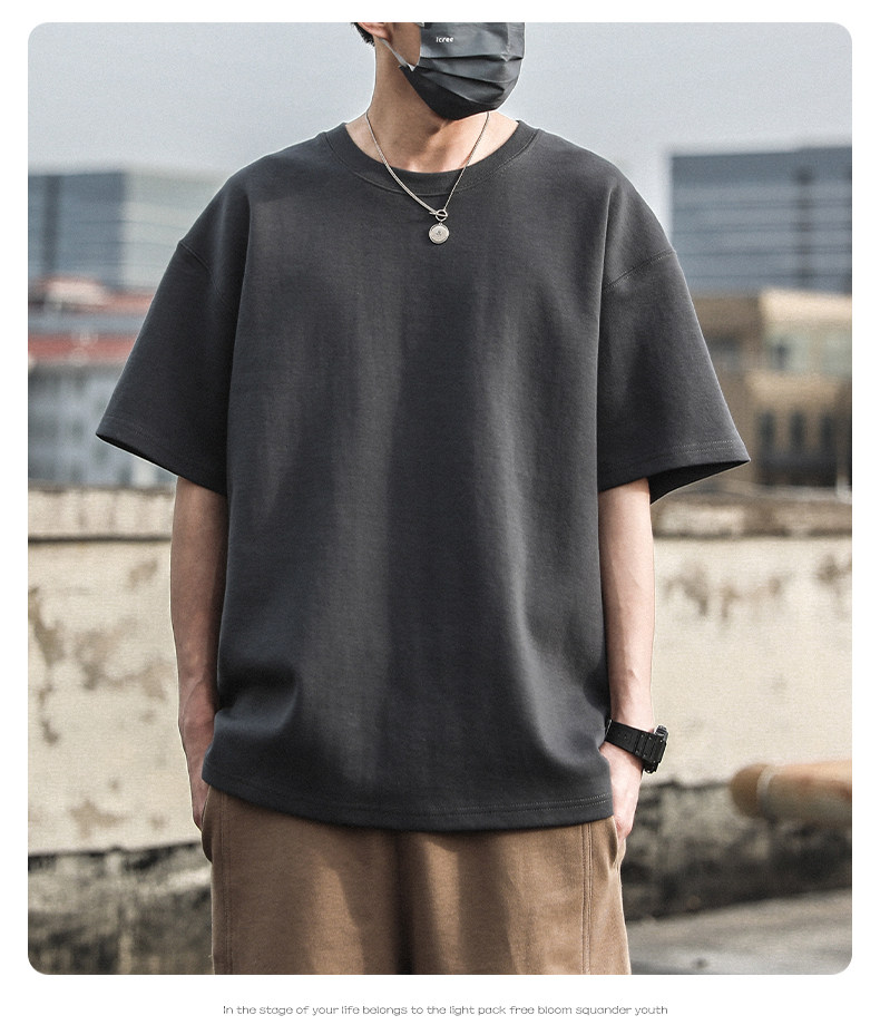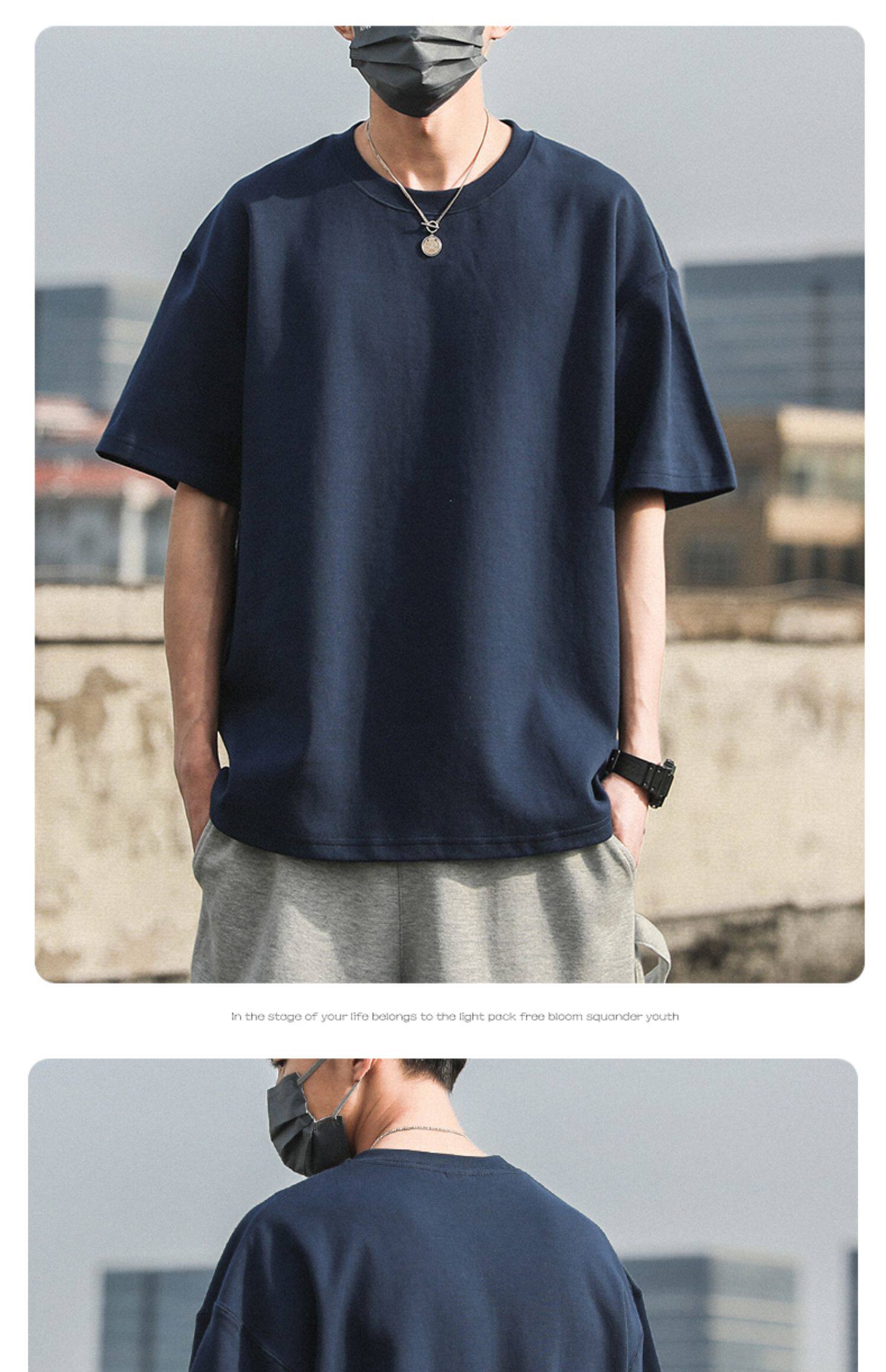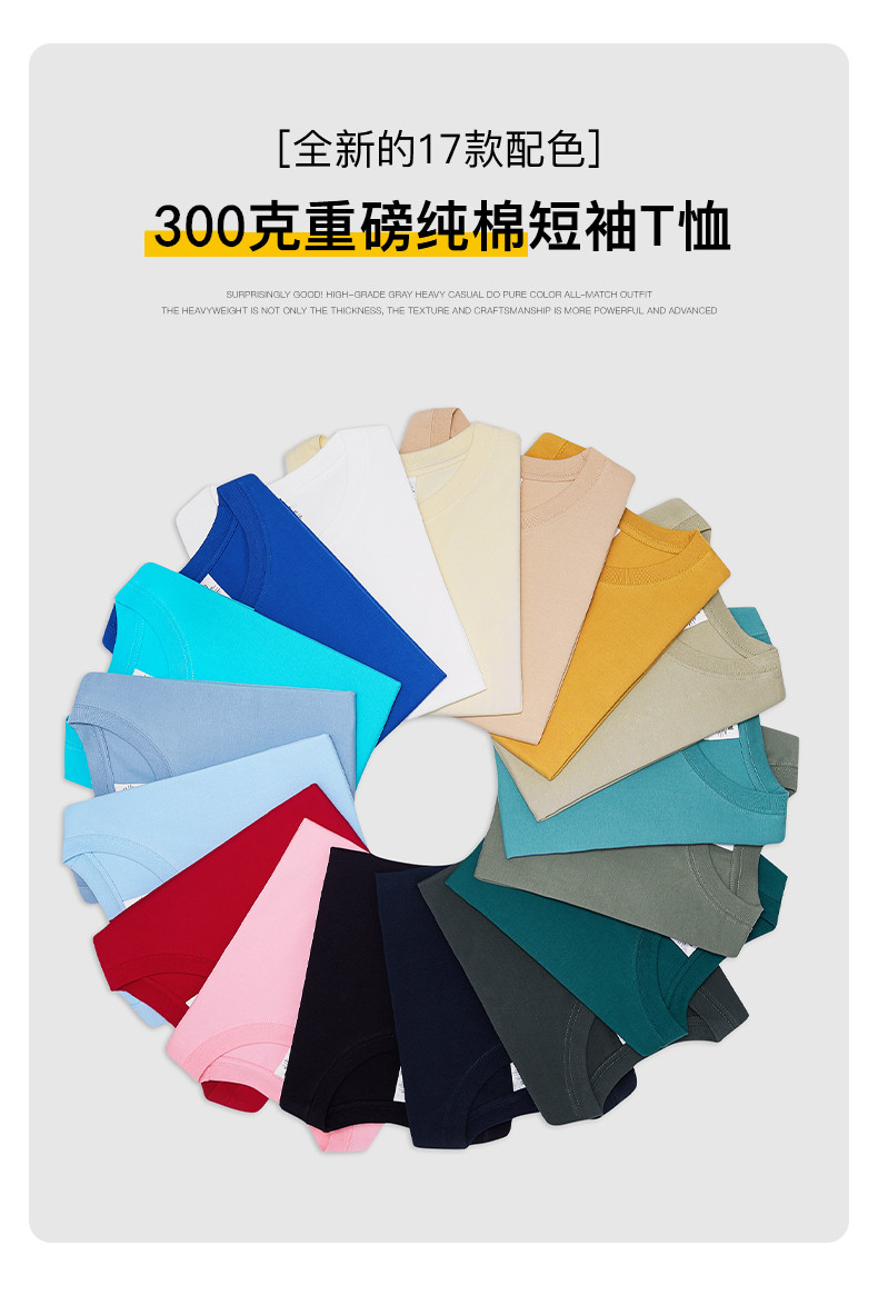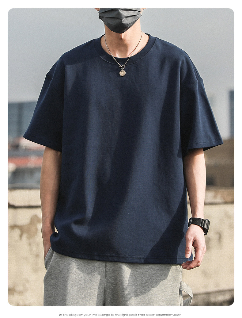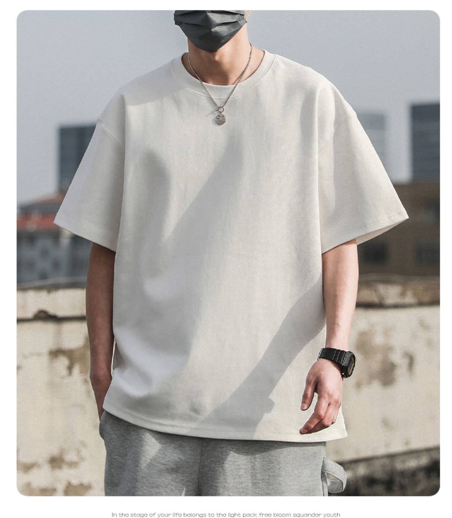 Xinjiang Cotton 300g Heavyweight Pure Cotton Solid Color Short-Sleeve T-Shirt for Men and Women, Cool-Toned American Retro Loose Half-Sleeve for Summer