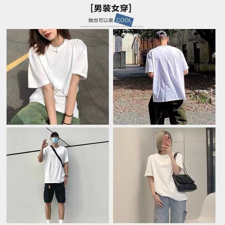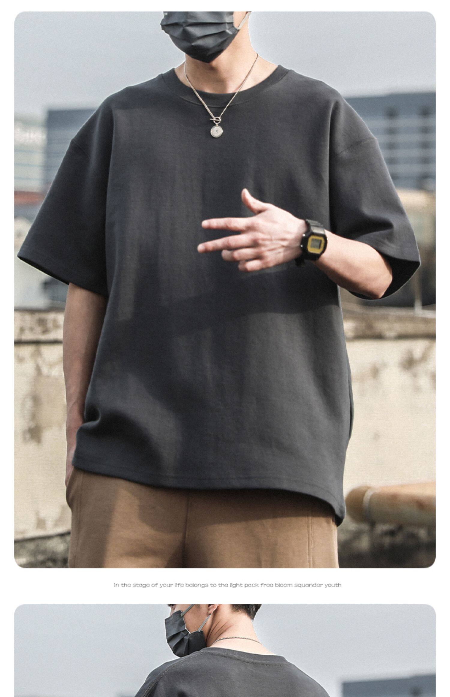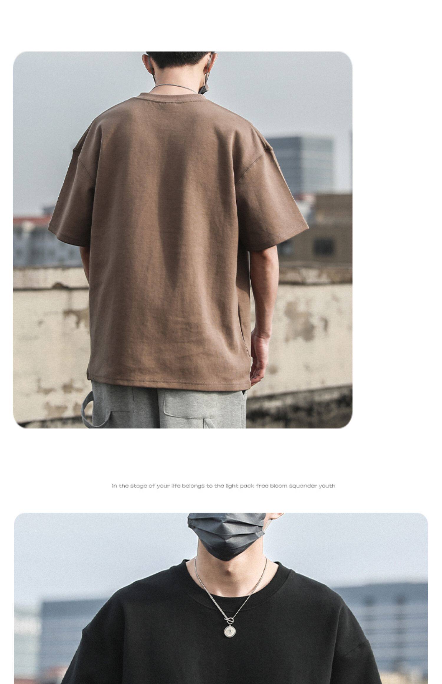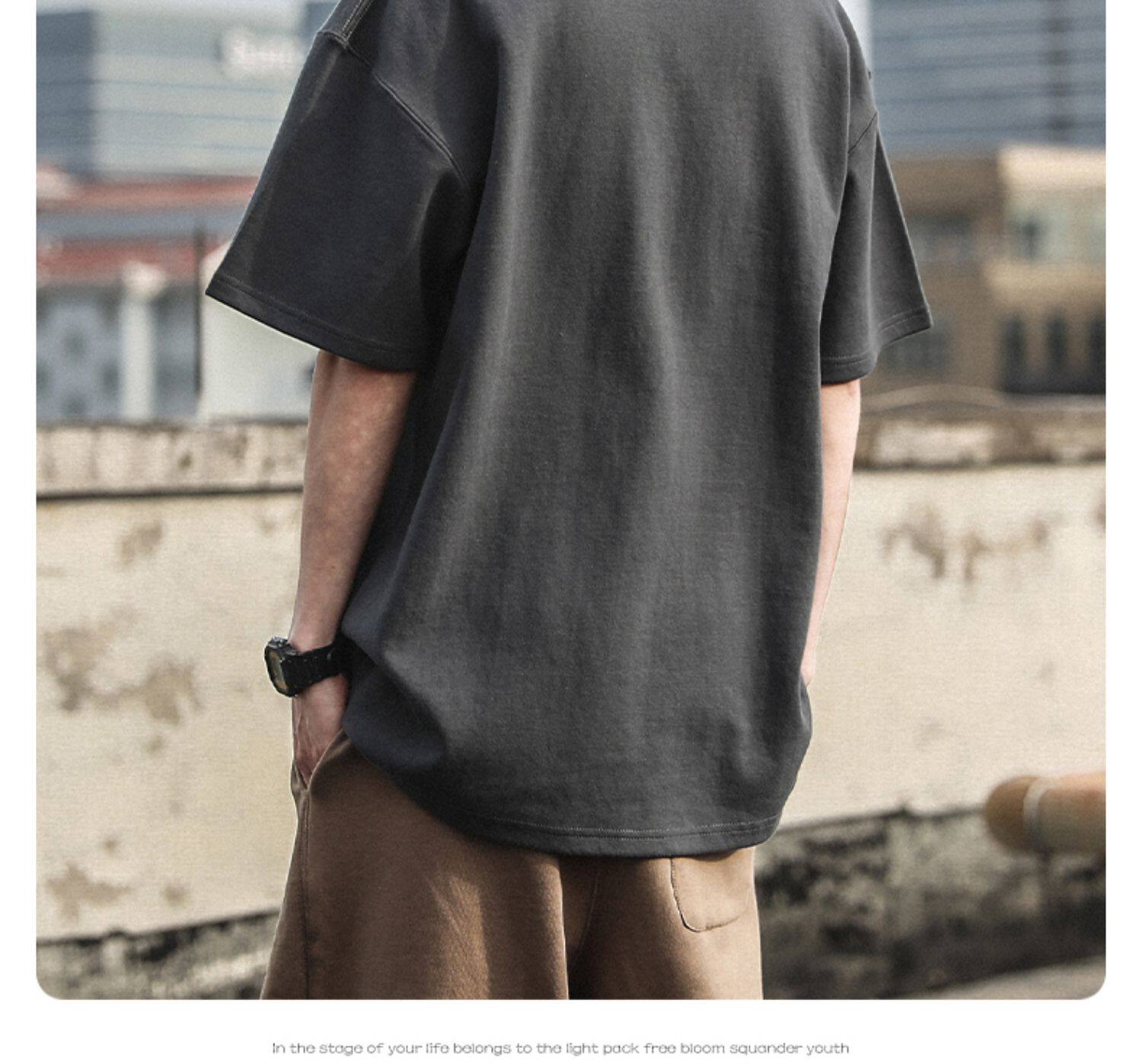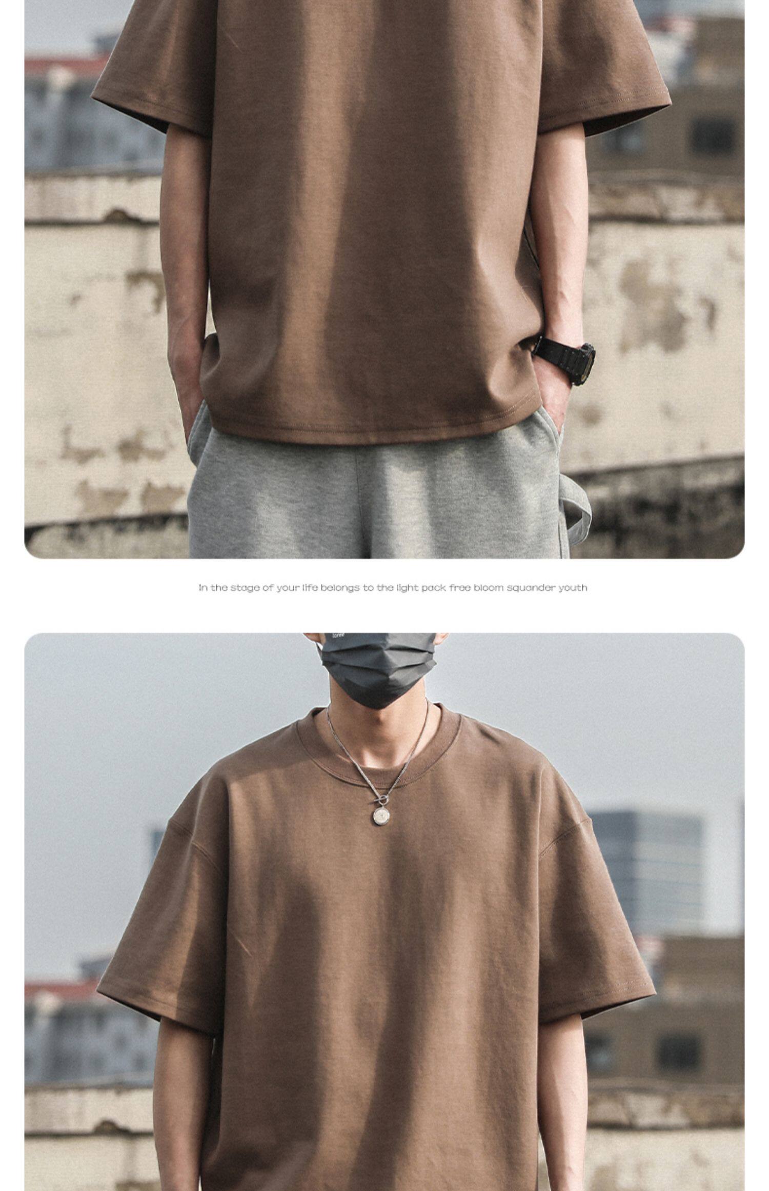 Xinjiang Cotton 300g Heavyweight Pure Cotton Solid Color Short-Sleeve T-Shirt for Men and Women, Cool-Toned American Retro Loose Half-Sleeve for Summer