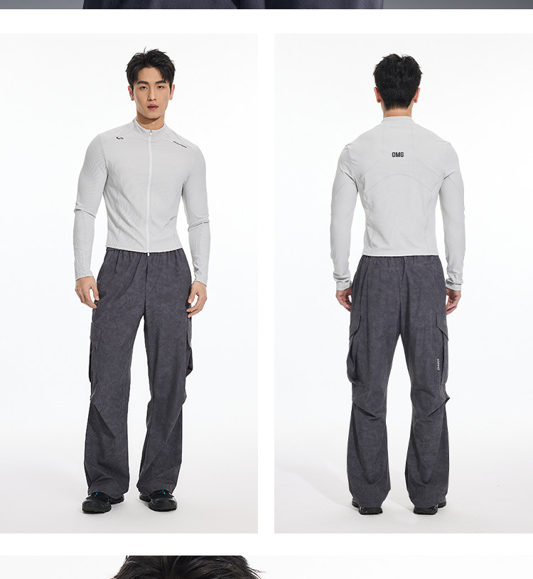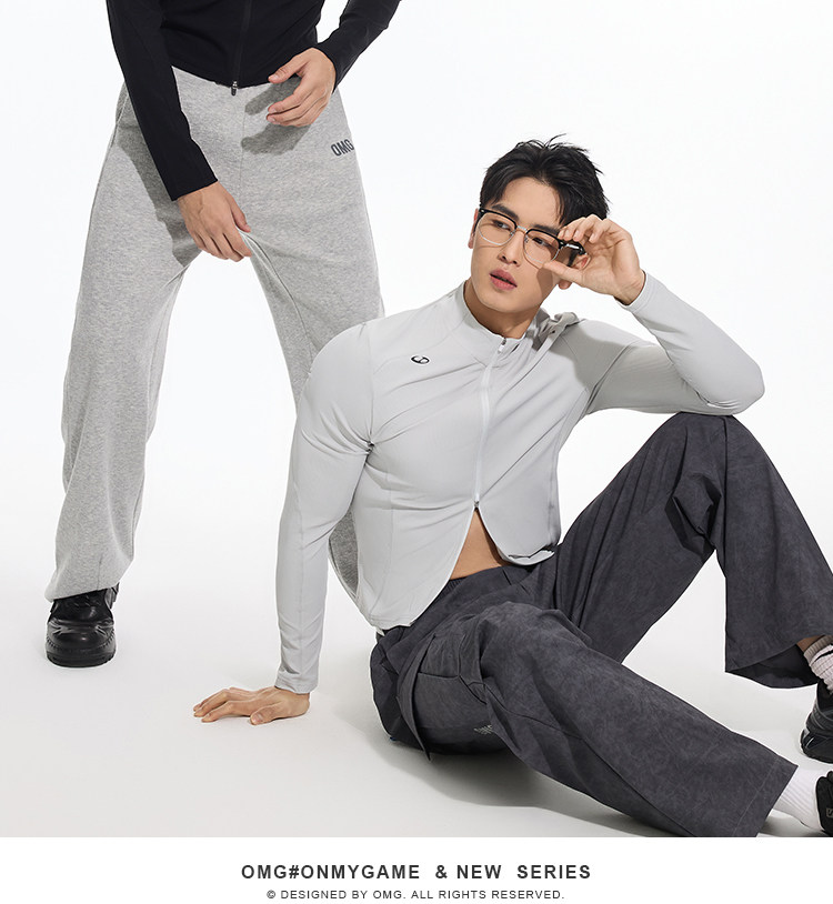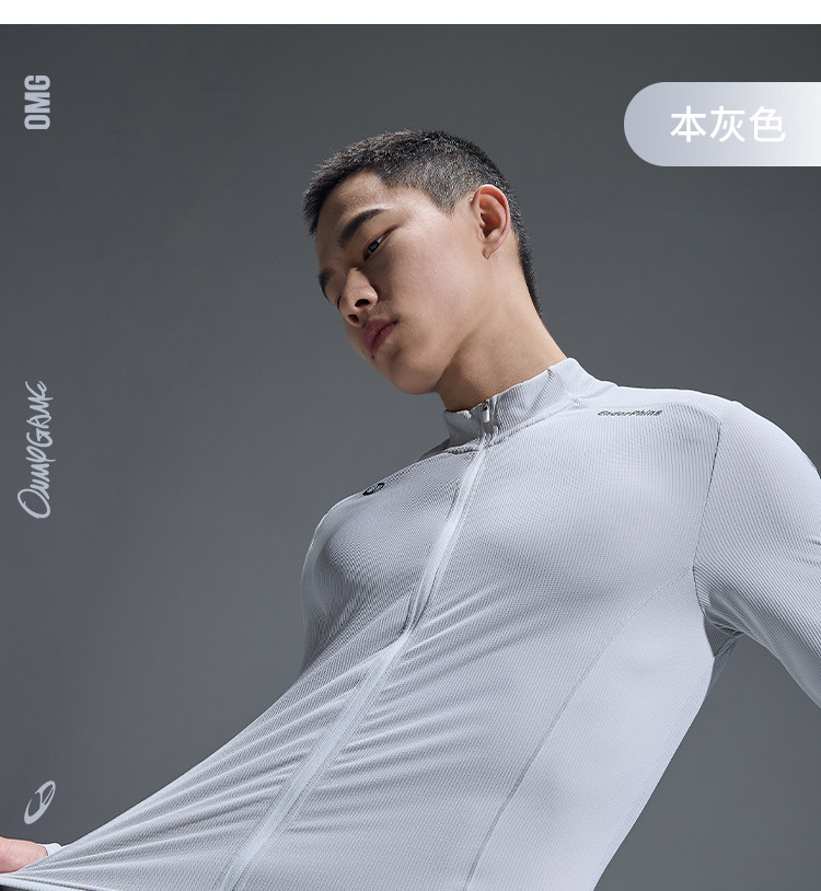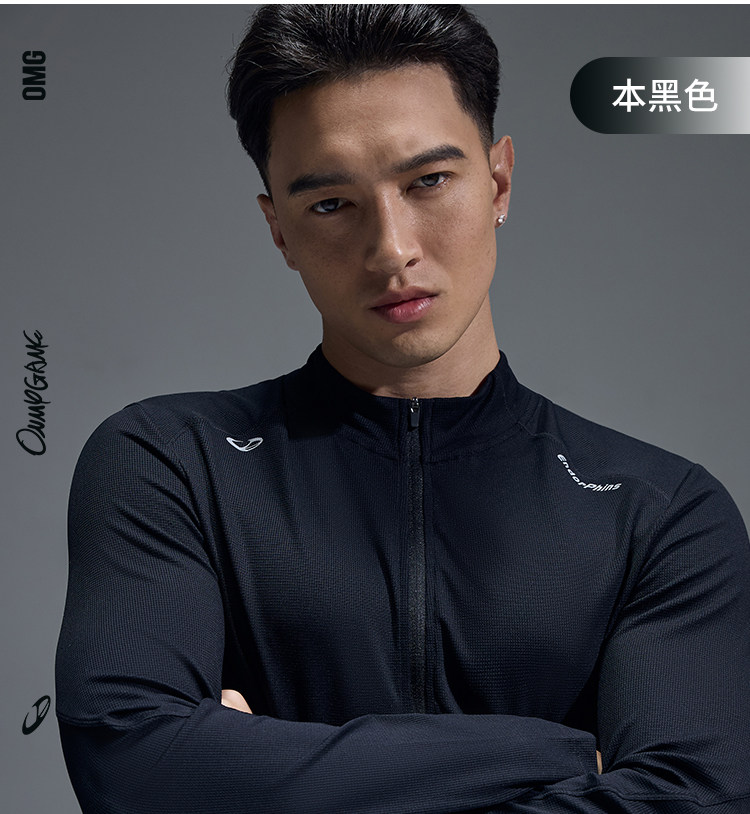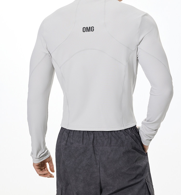 Omg Sports Curved Split Waffle High Elastic Tight Jacket Men's Moisture-Wicking Quick-Drying Sports Training Fitness Clothing