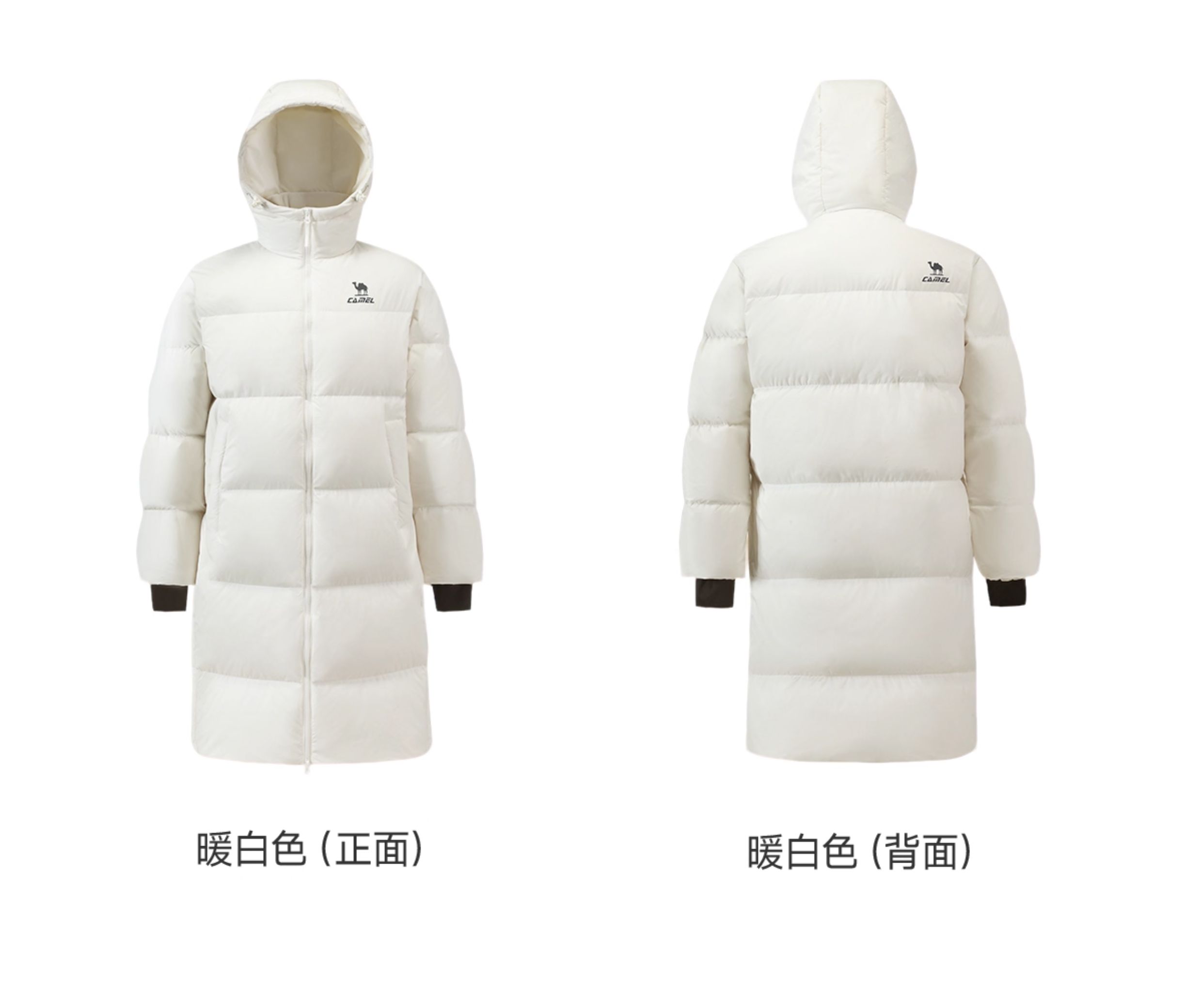 Camel Fire God down Jacket North Shadow Mid-Length Winter Women's and Men's 90% down Thickened Hooded Water-Repellent down Coat