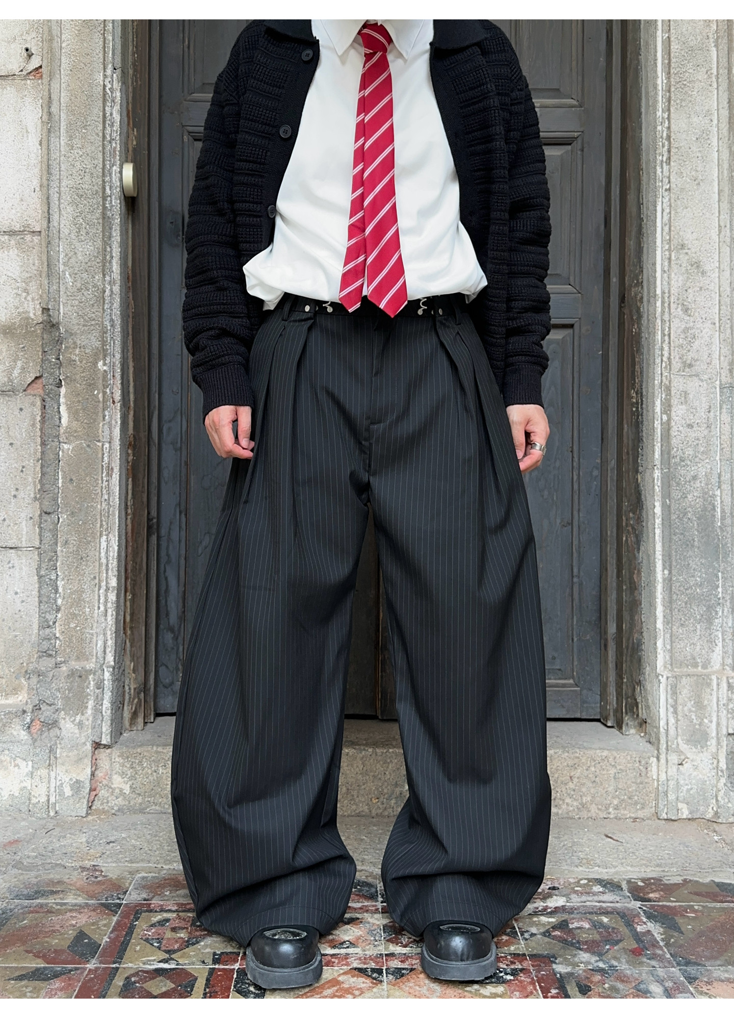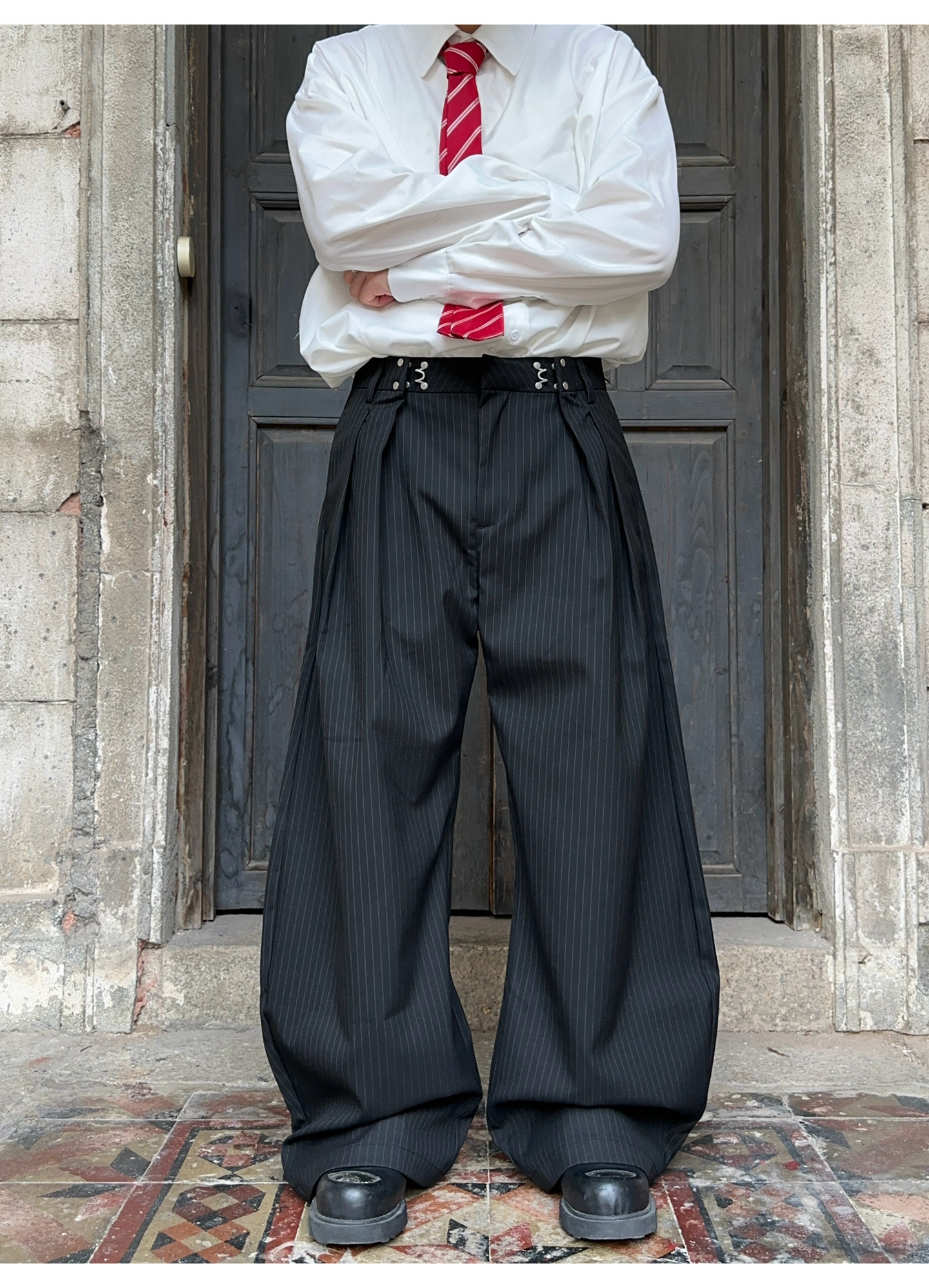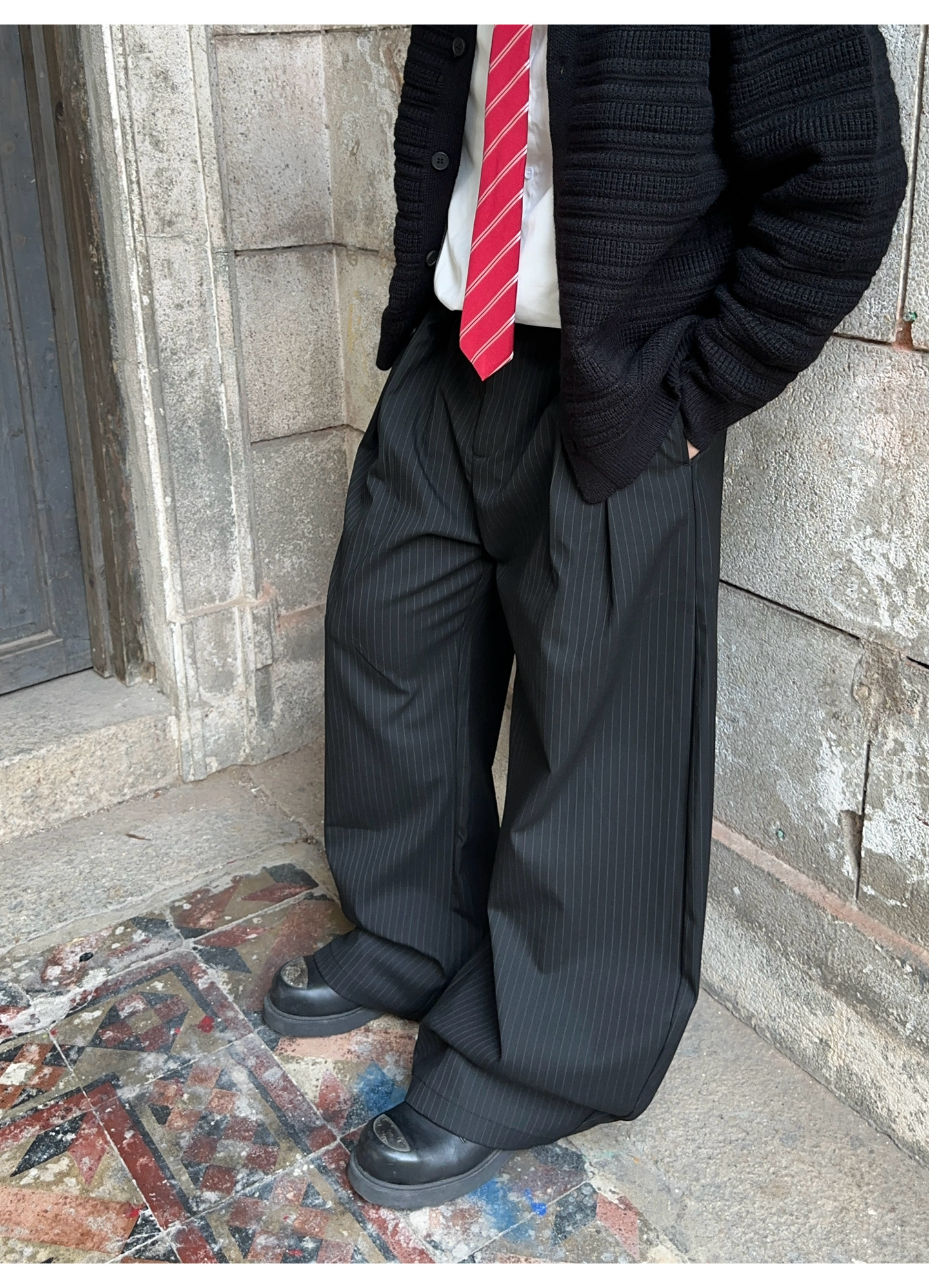 Fateegg American Retro Pleated Design High-End Casual Trousers for Men and Women, Loose Vertical Striped Scimitar-Style Dress Pants