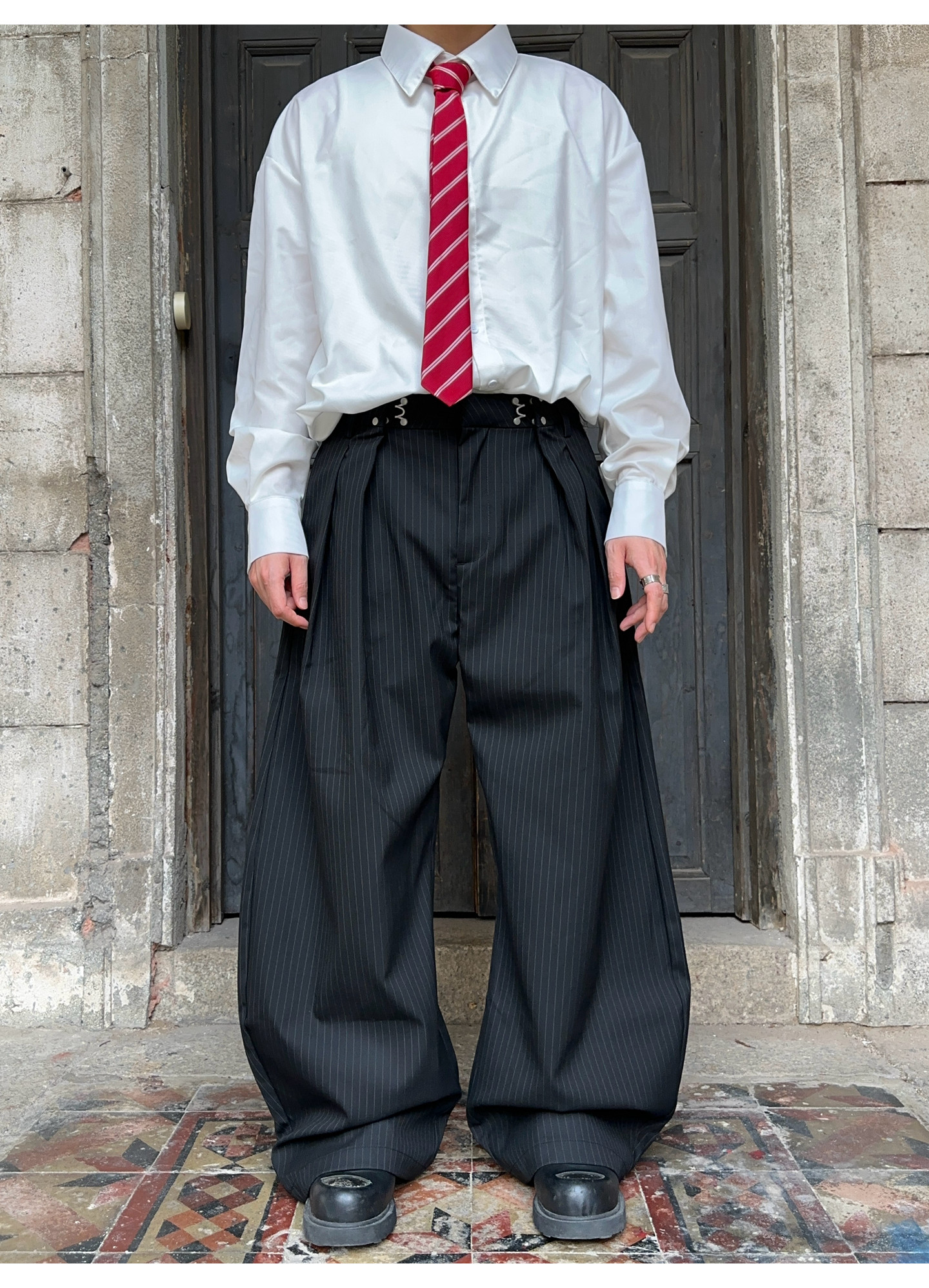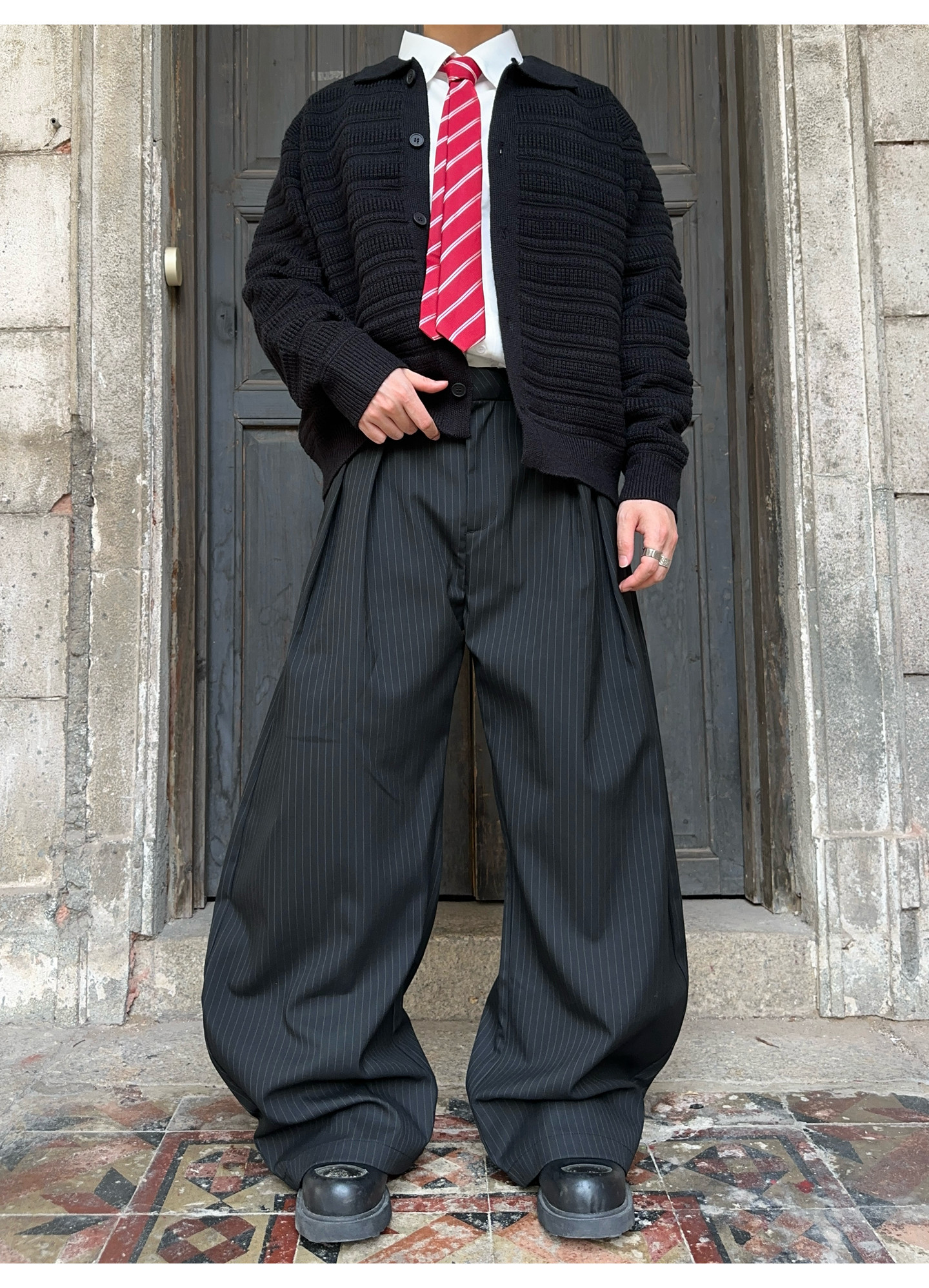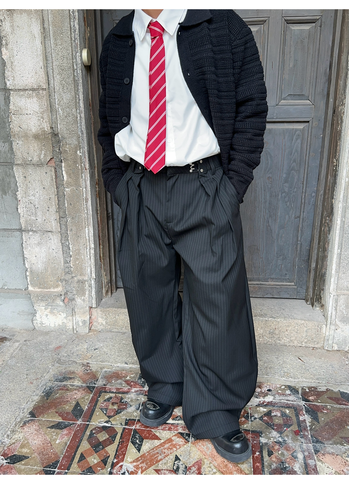 Fateegg American Retro Pleated Design High-End Casual Trousers for Men and Women, Loose Vertical Striped Scimitar-Style Dress Pants