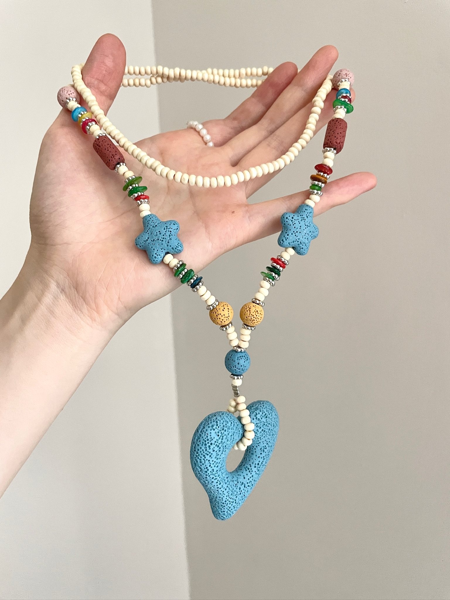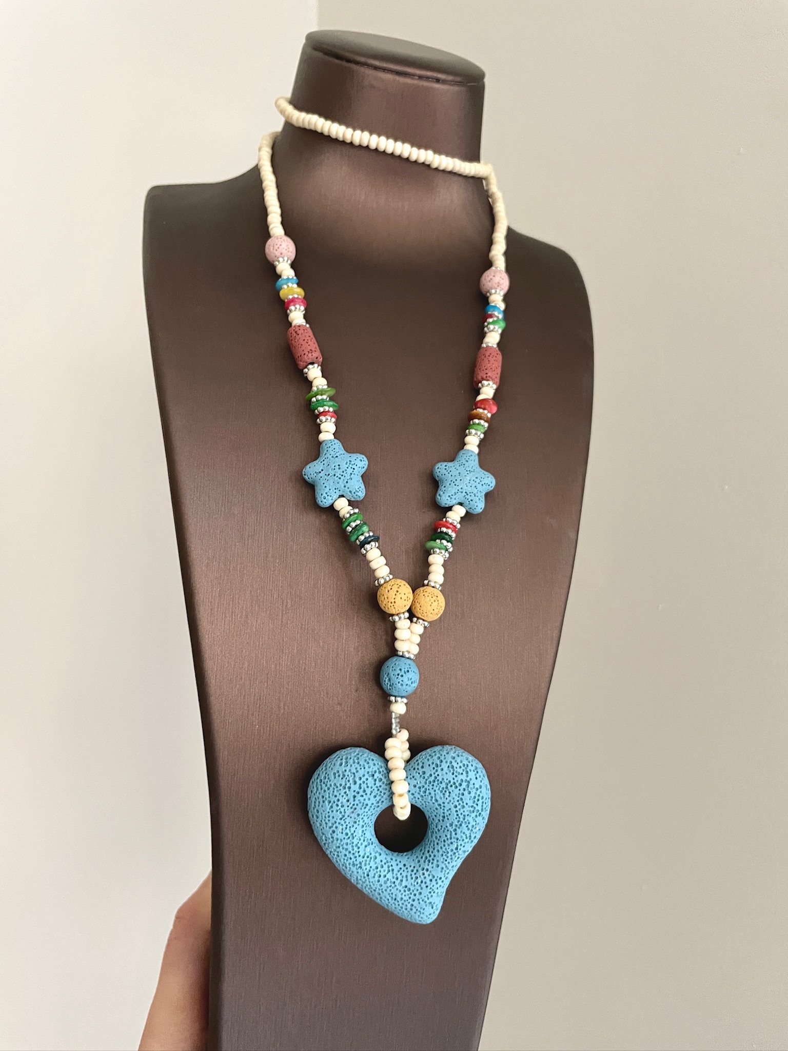 Vintage Dopamine Volcanic Stone Blue Heart Necklace