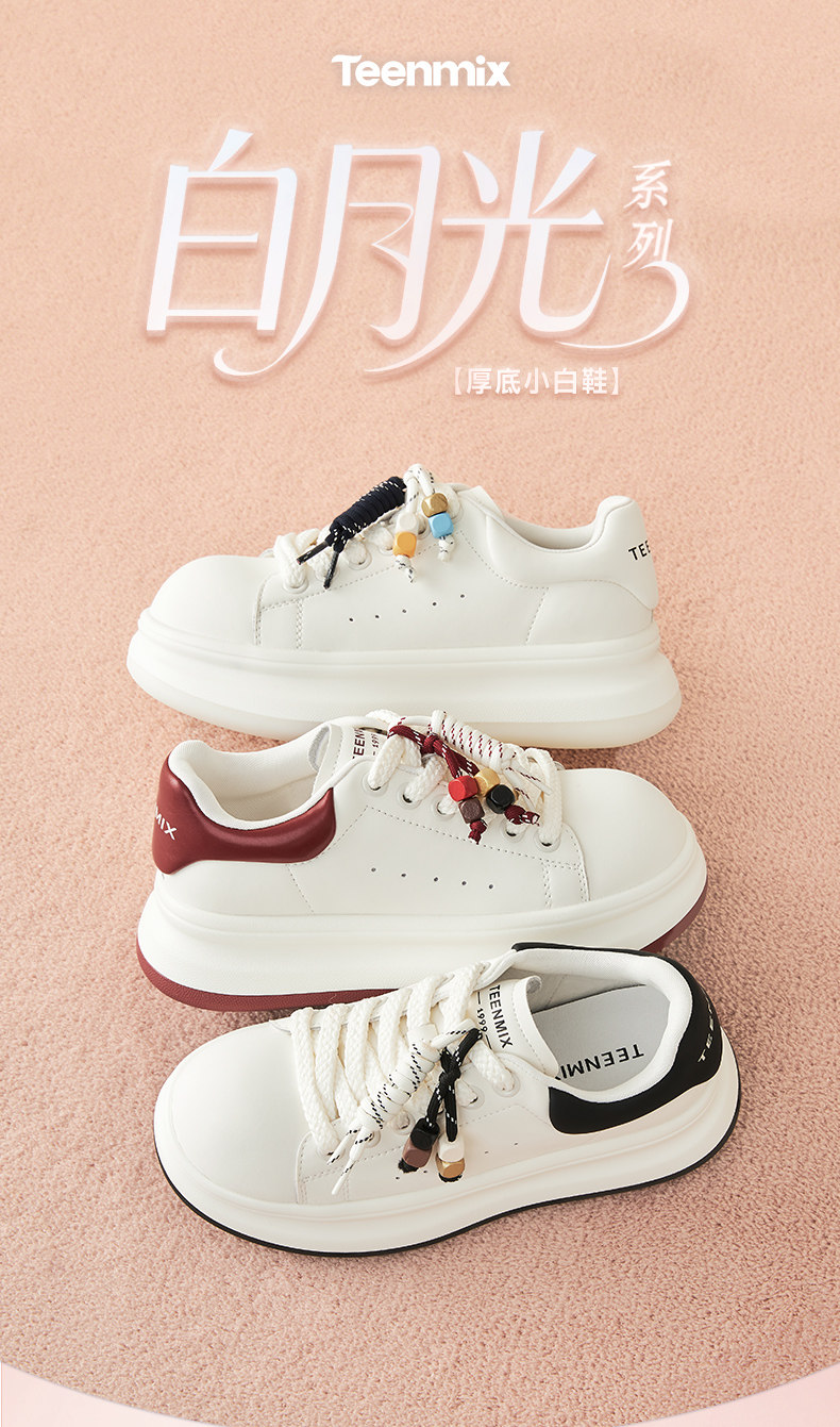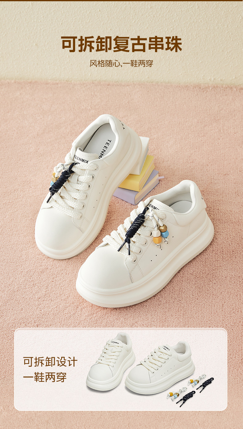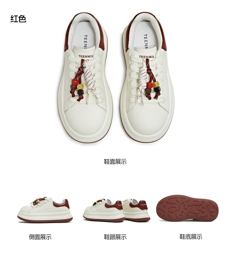 Tianmeiyi Beaded Thick-Soled Height-Increasing White Sneakers Red Sports Board Shoes Women's Shoes Autumn New Casual Shoes