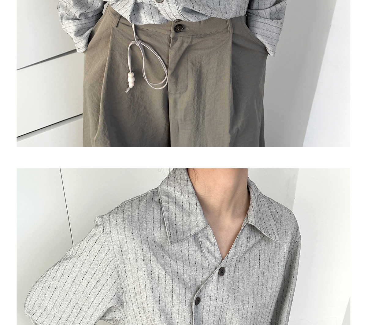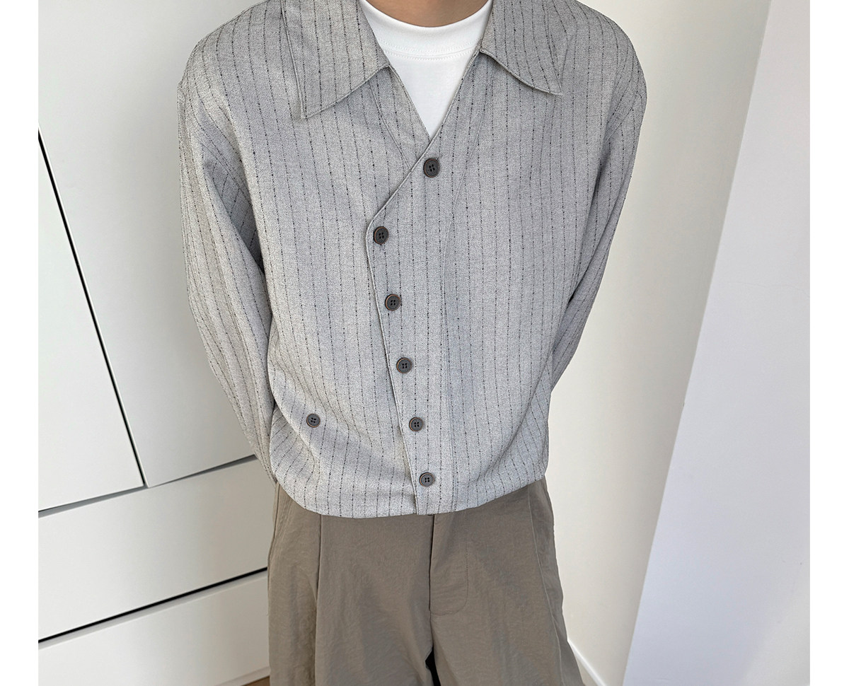 Rever React 25Aw Diagonal Placket V-Neck Striped Beaded Drawstring Shirt, Linen-Like, Easy to Care For, Short and Wide, Adjustable