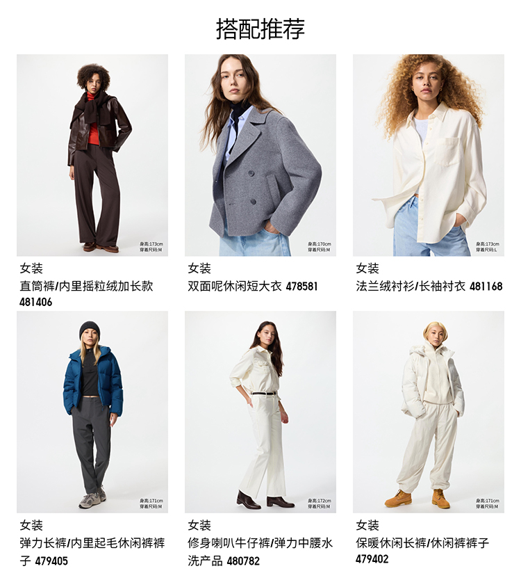 UNIQLO Women's Straight Leg Pants/Lined Fleece Heattech 25 Fall and winter New arrival 479695