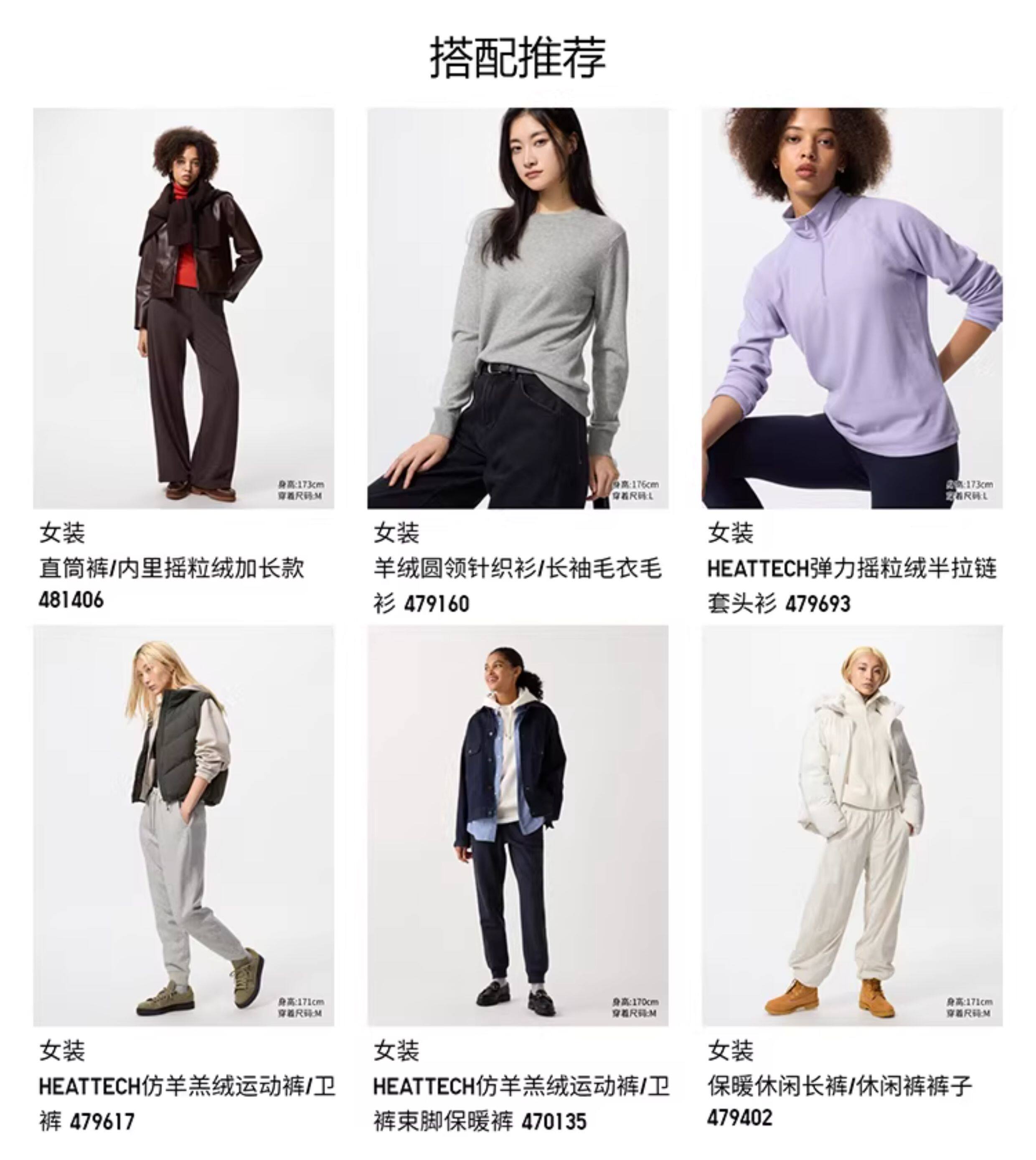 Regular Style Uniqlo Women's Straight-Leg Pants/Fleece-Lined for Warmth 479695