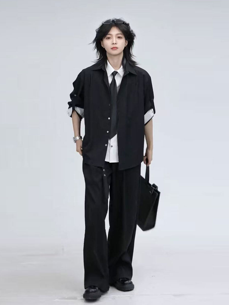 Hei Chi Original Fake Two-Piece Suit Shirt for Men and Women, High-End Dk Uniform Style, Niche Korean-Style Jacket, Trendy Men's Wear