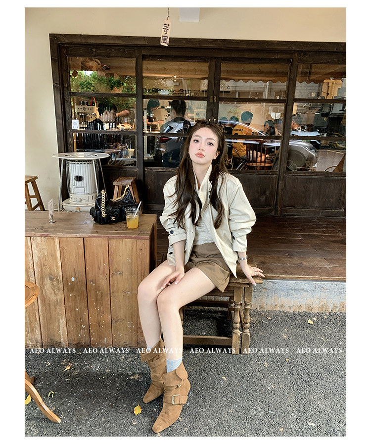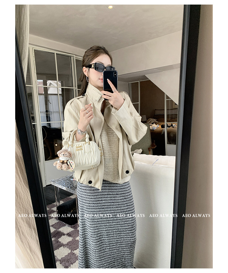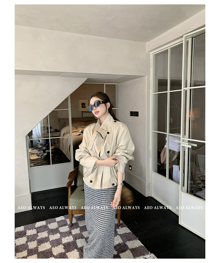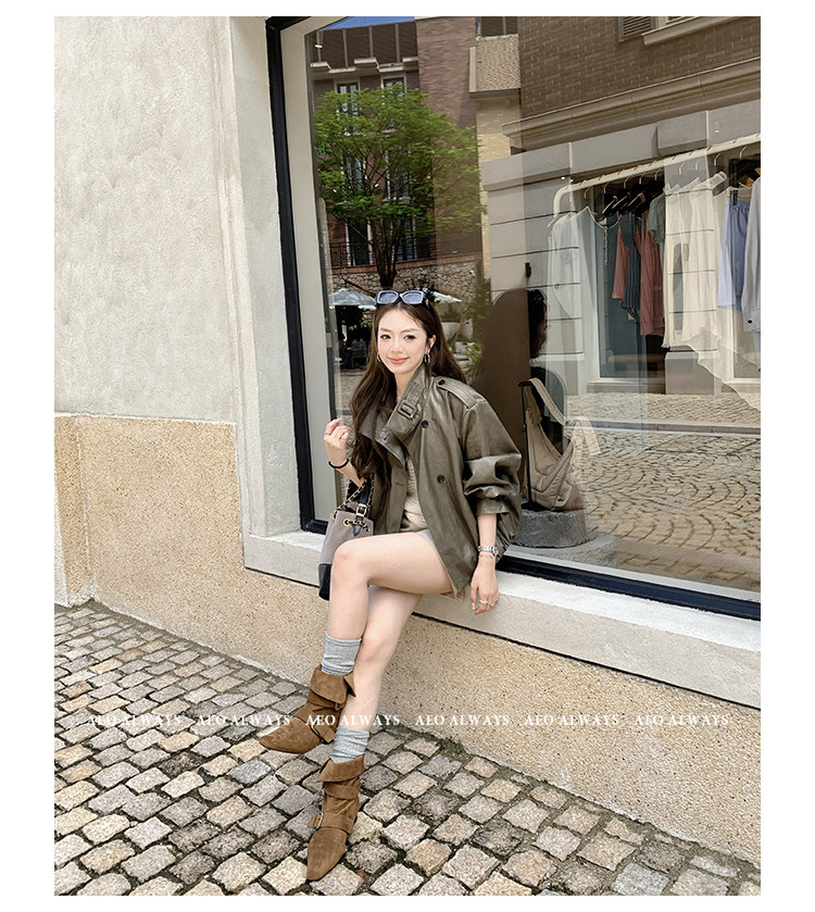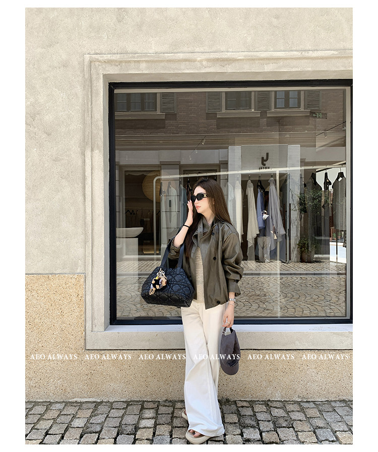 Aeoalways【Autumn Lightness】New Style Stand-Collar Leather Jacket for Women, Slimming, High-End Silhouette Trench Coat Pu Jacket