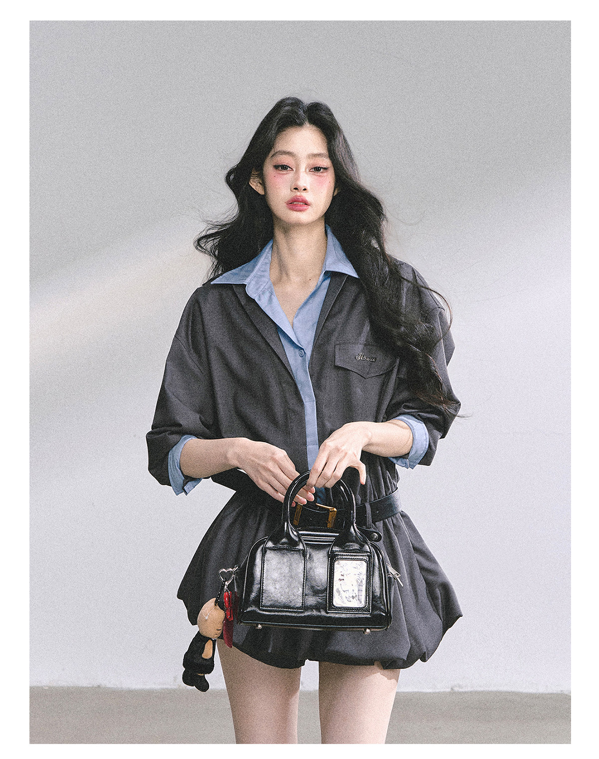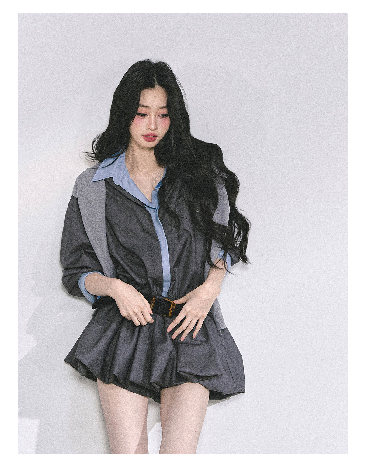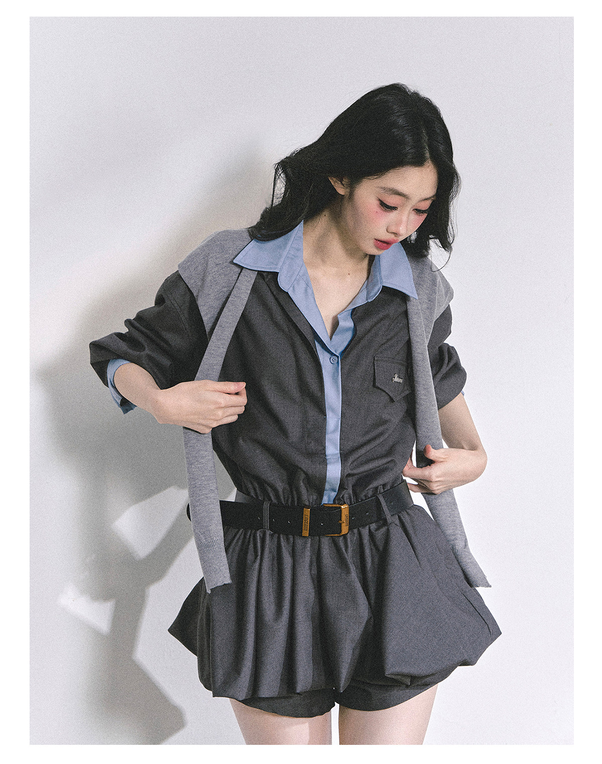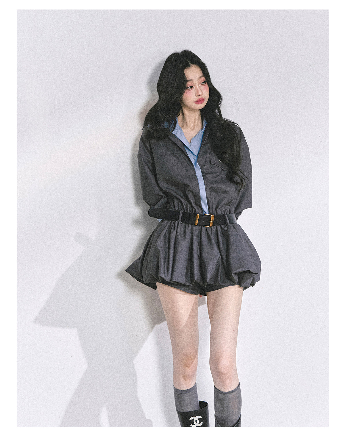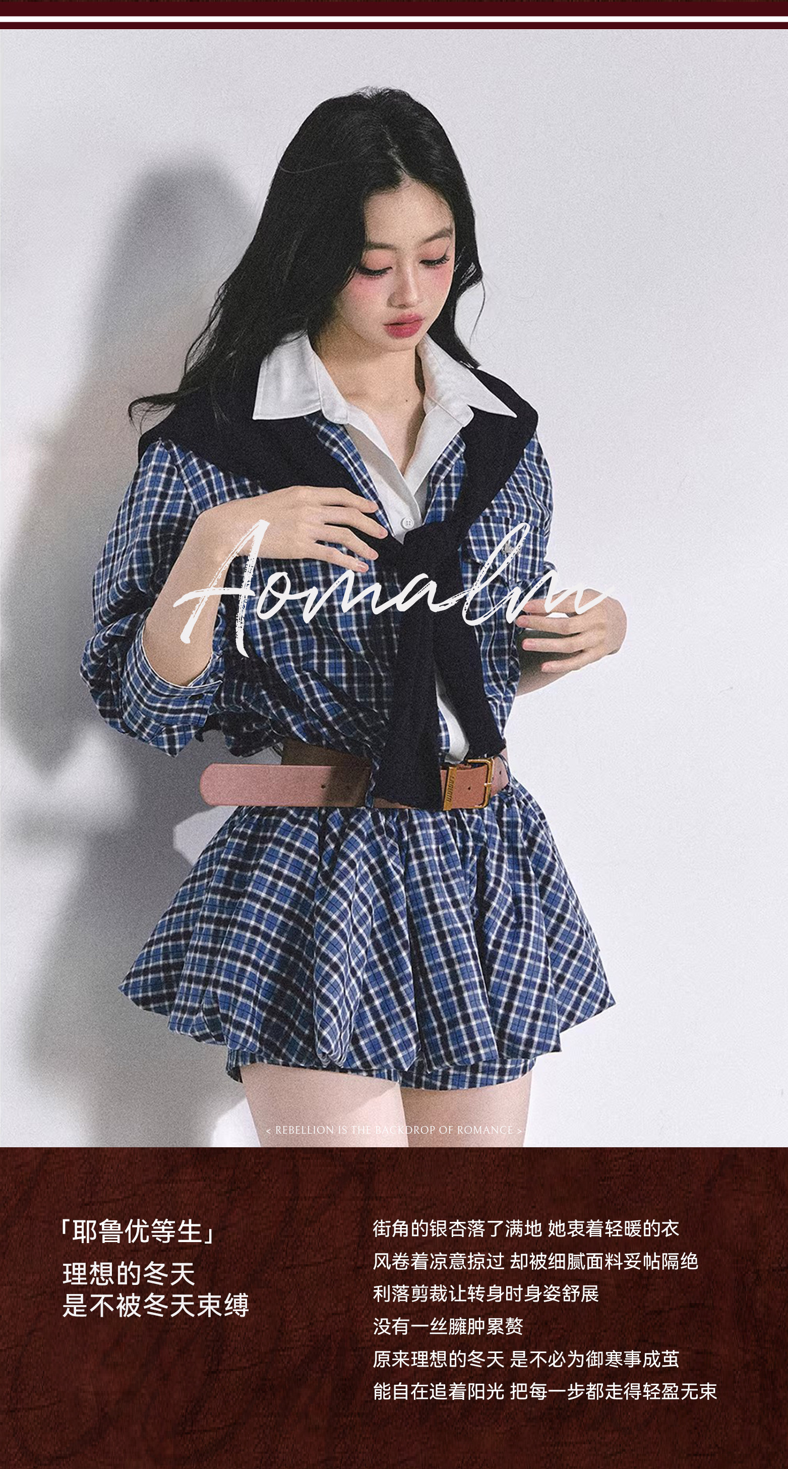 Aomalm Young Girl's "Yale Top Student"% Fake Two-Piece Hepburn Style Dress Women's Autumn Floral Bud Skirt Short Skirt