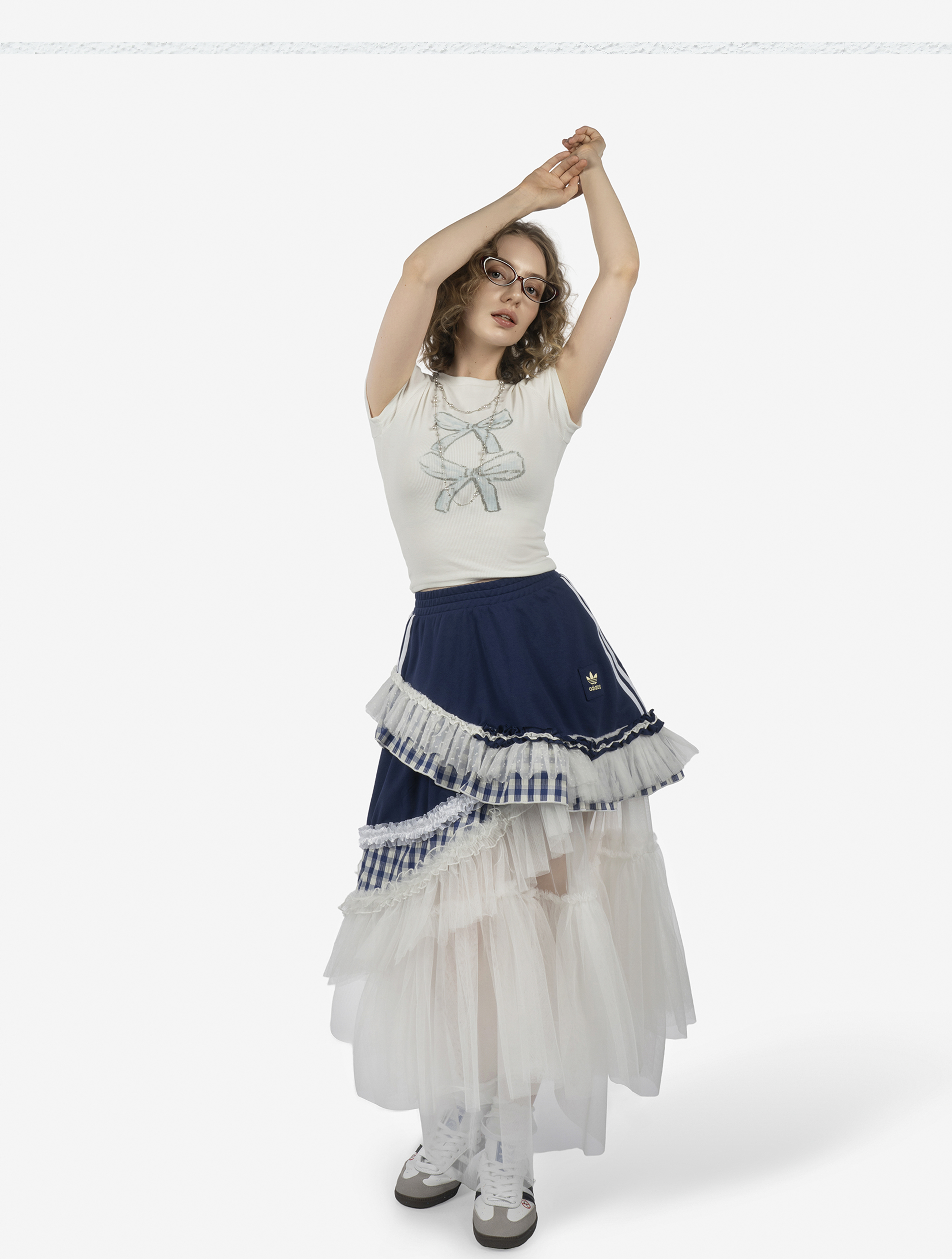 Adidas Trefoil Remake French Court Style Ballet Style Blue and White Skirt Encompass