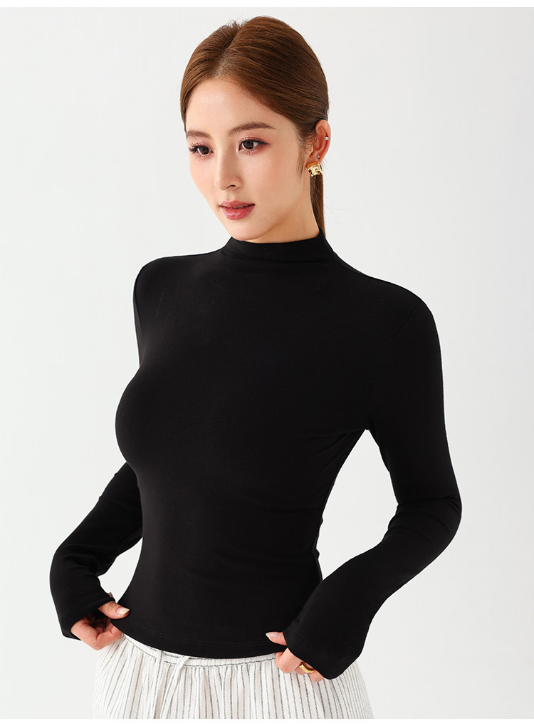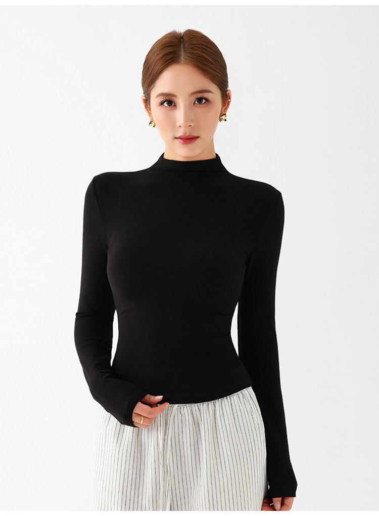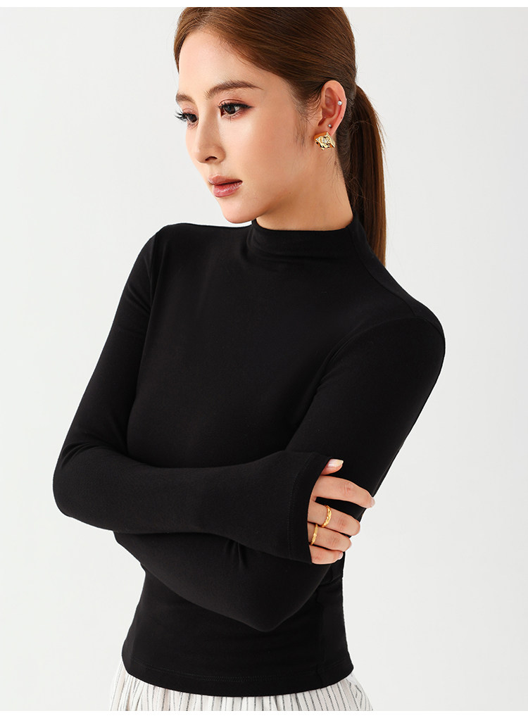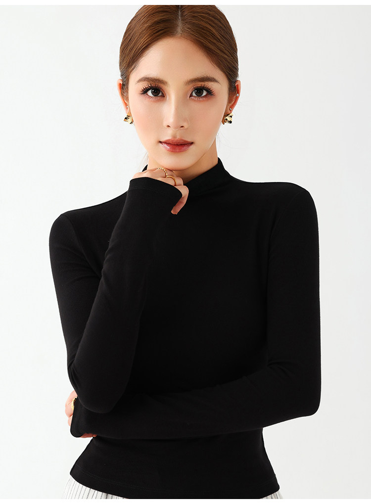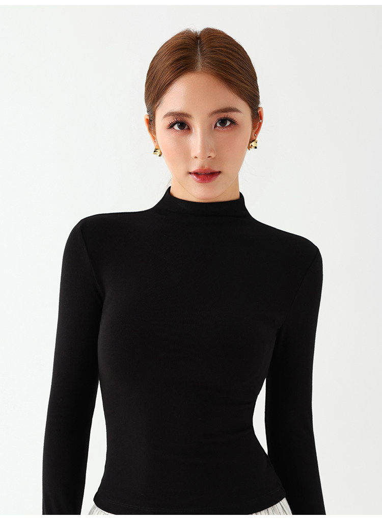 Neva Hu Basic Blind Selection Black Half-Turtleneck Knitted Base Shirt for Women, Autumn and Winter Long Sleeve Slim Fit Inner Top