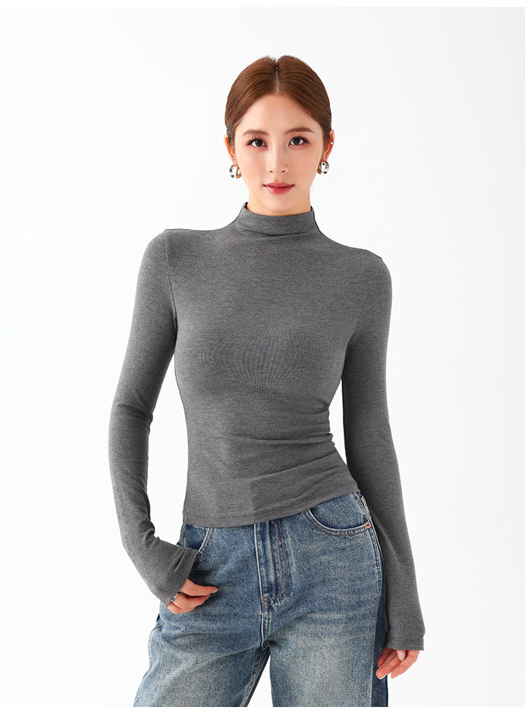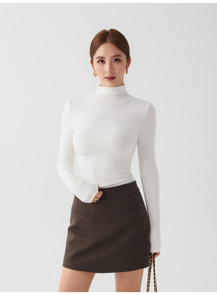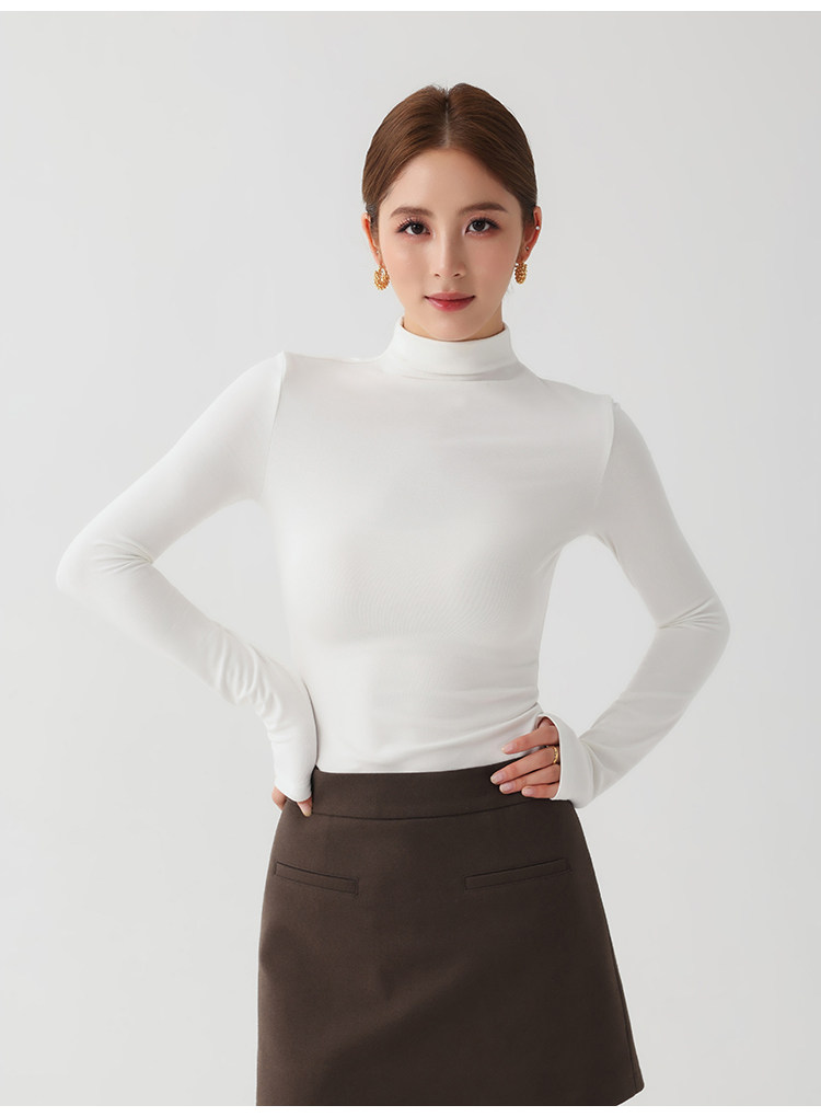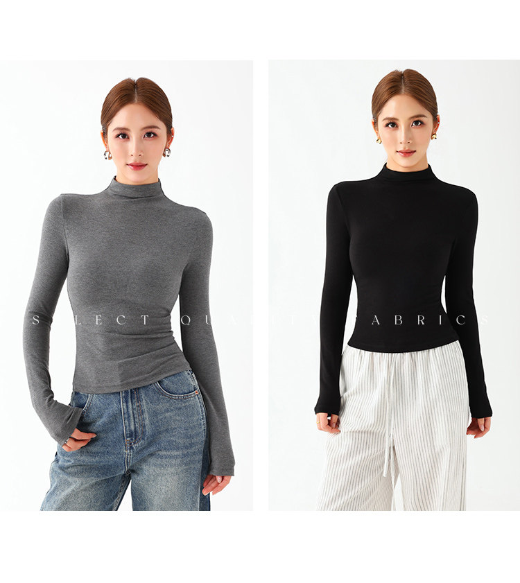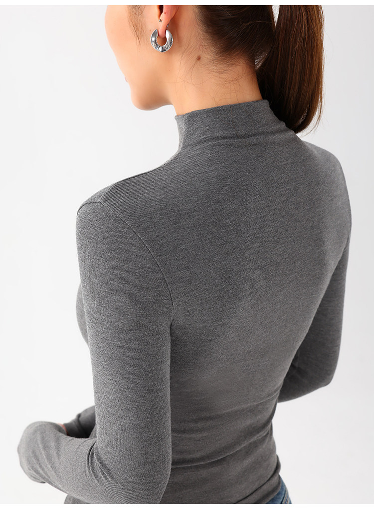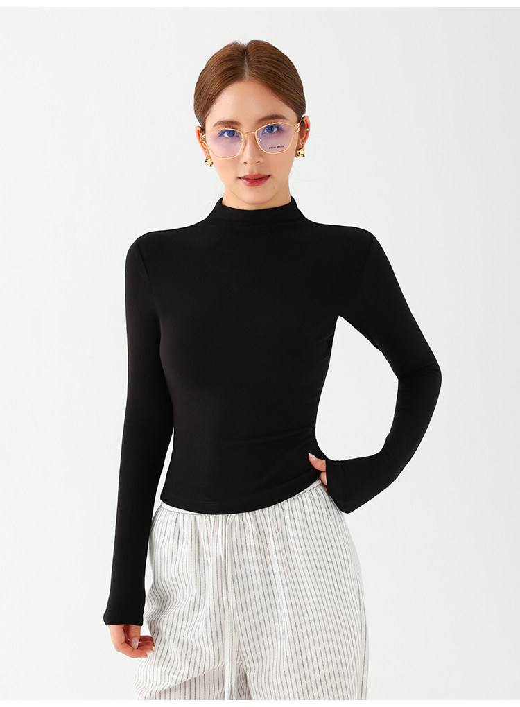 Neva Hu Basic Blind Selection Black Half-Turtleneck Knitted Base Shirt for Women, Autumn and Winter Long Sleeve Slim Fit Inner Top