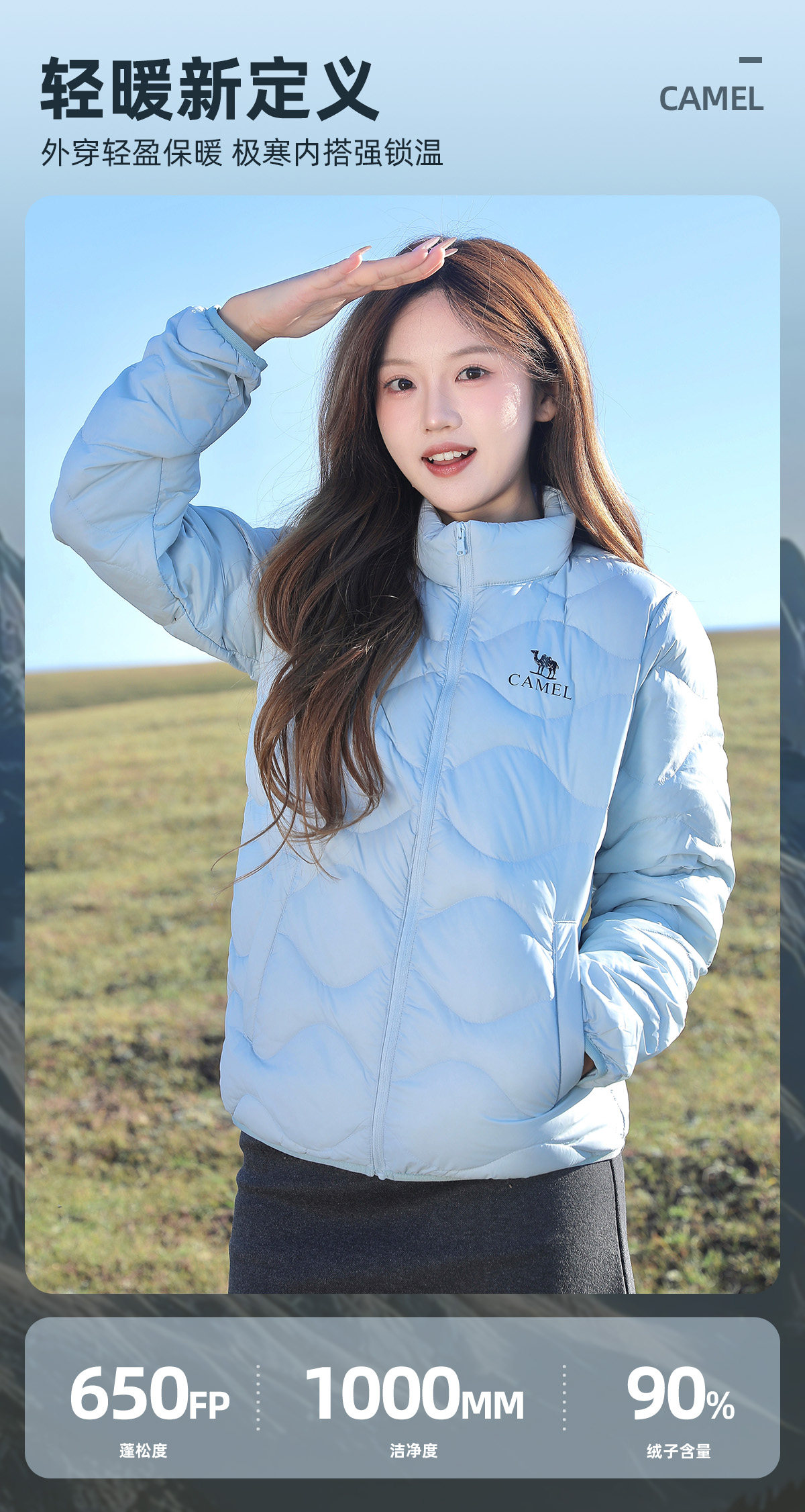 Camel Brand Women's Lightweight Stand-Collar down Jacket, New Winter Model, 90% Duck Down, Windproof Quilted down Coat for Men