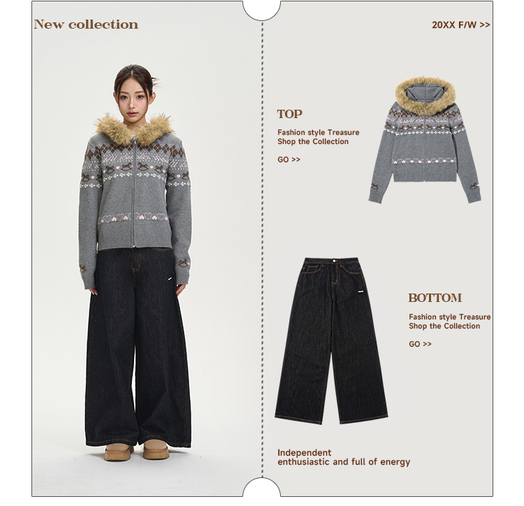 Isaluteu Fair Isle Sweater Jacket American Retro Trendy Brand Autumn and Winter Couple's Large Fur Collar Color-Blocked Knitwear