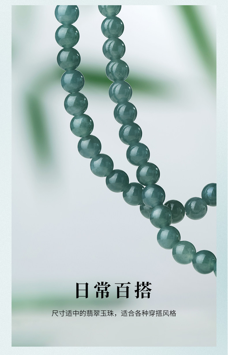 Chow Tai Sang Official Jade Necklace Round Bead Pendant Blue Water Jade Raw Stone Round Bead Bracelet Authentic Valentine's Day Gift
