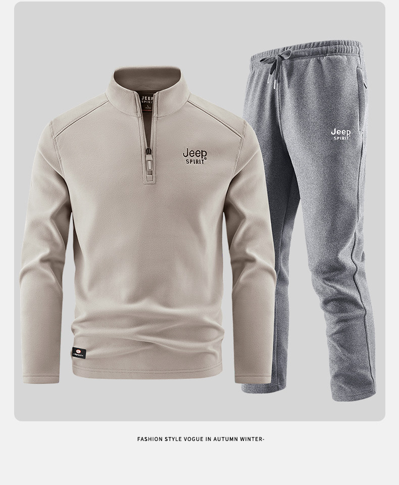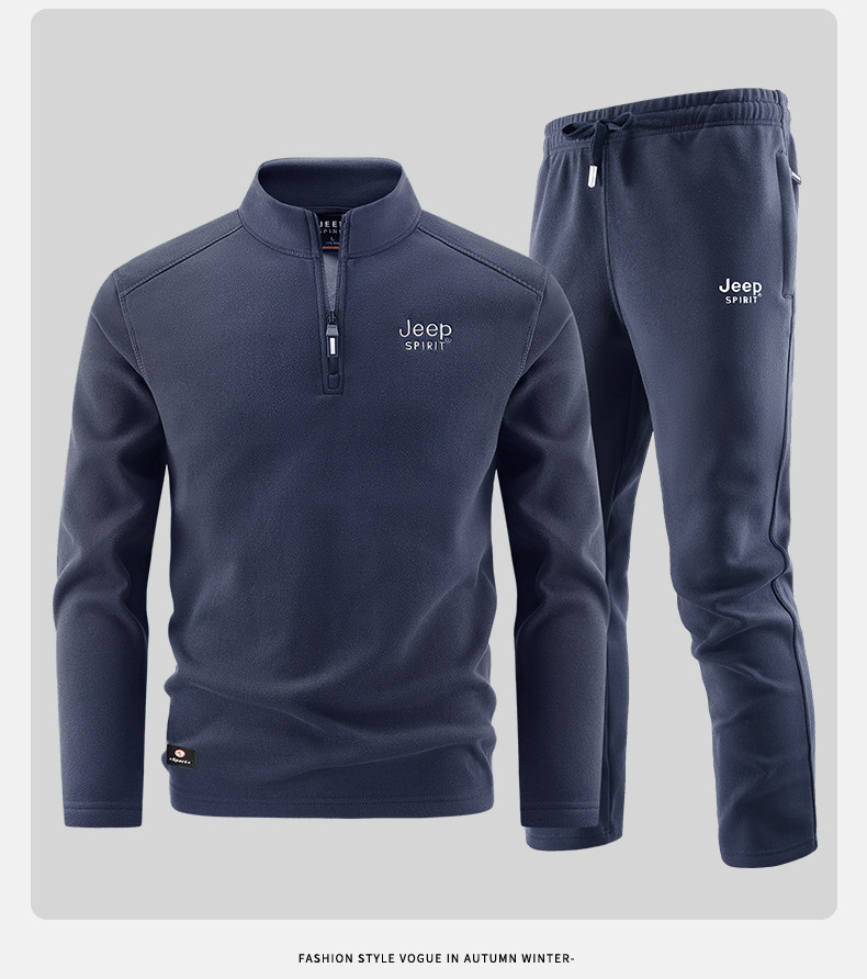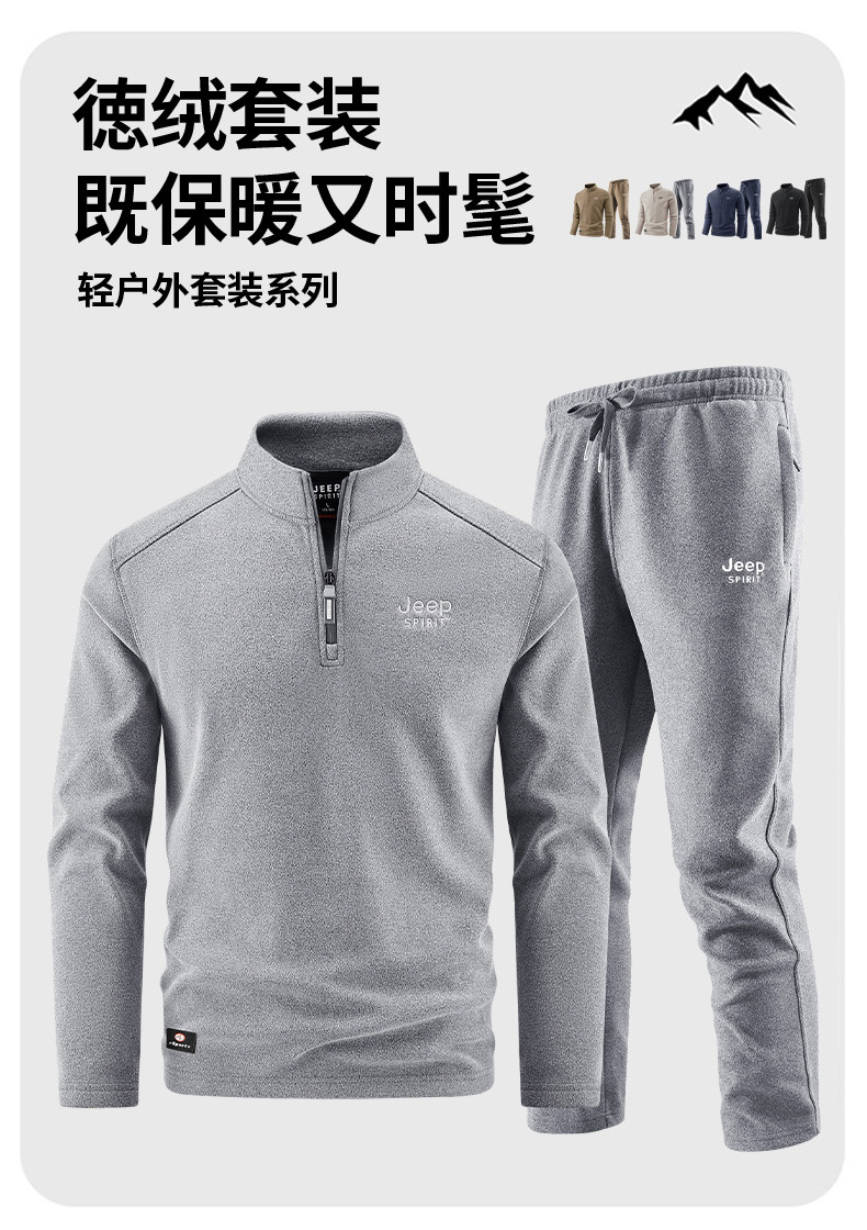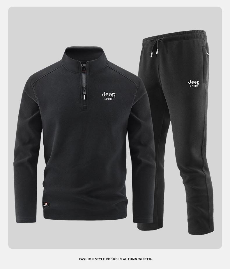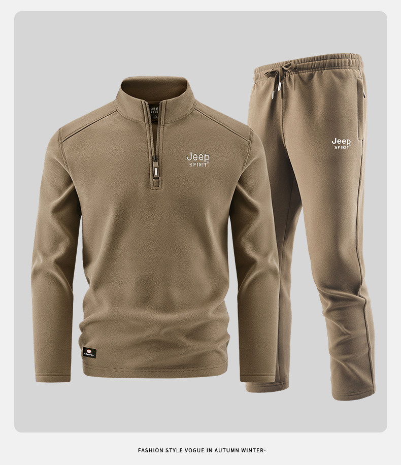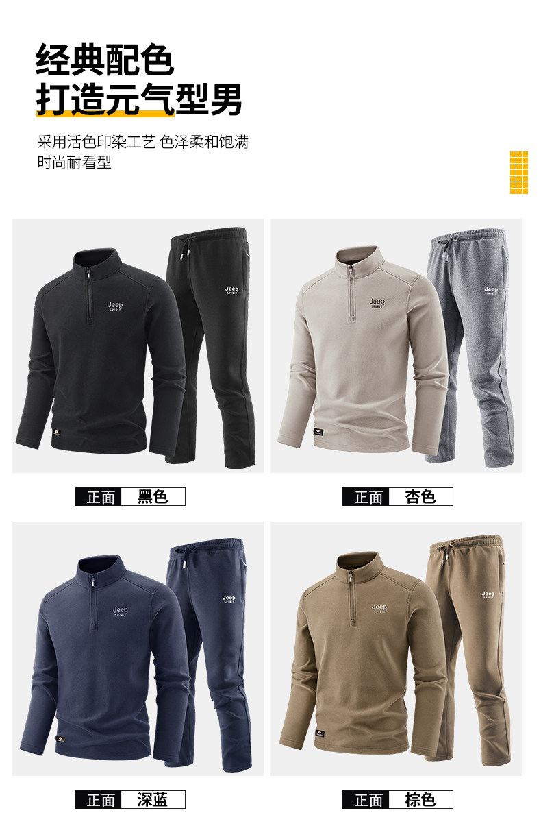 Jeep Fleece Sports Jacket for Men 2025 Autumn and Winter New Style Fleece-Lined Warm Pullover Sweatshirt Casual Two-Piece Set