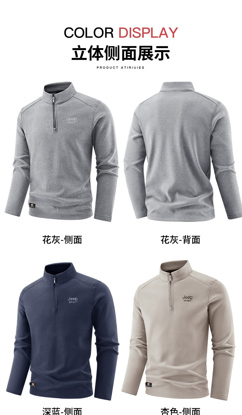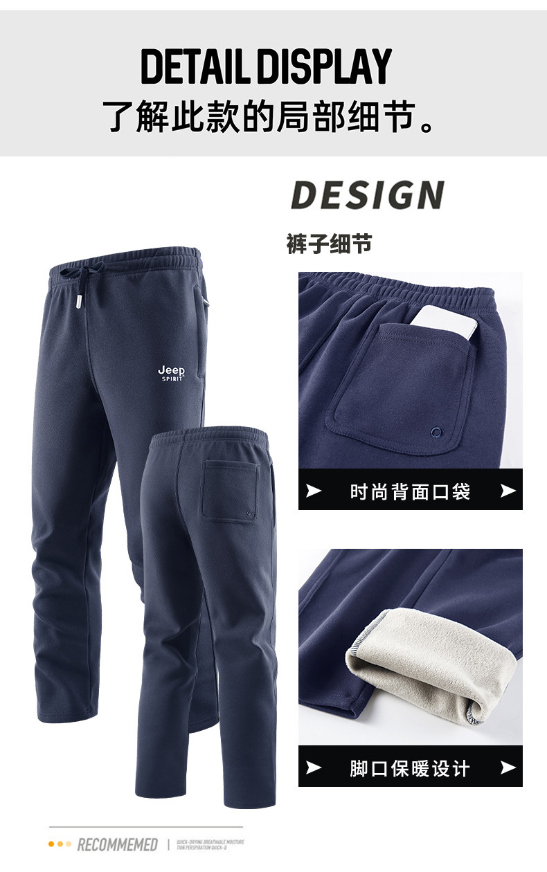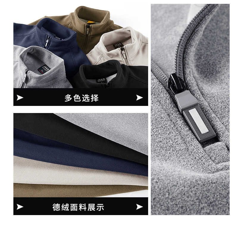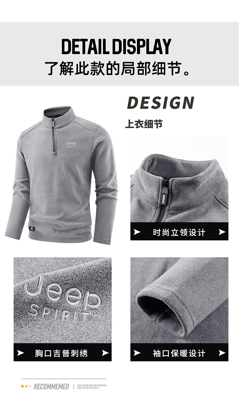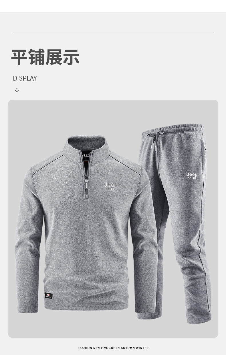 Jeep Fleece Sports Jacket for Men 2025 Autumn and Winter New Style Fleece-Lined Warm Pullover Sweatshirt Casual Two-Piece Set