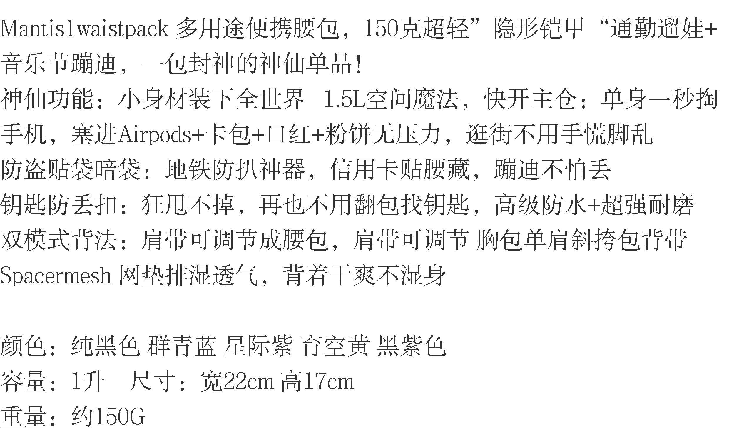 New Mantis 1-Liter 2-Liter Shoulder Bag for Men and Women, Couple Style, Crossbody Waist Bag, Waterproof and Wear-Resistant Small Crossbody Bag