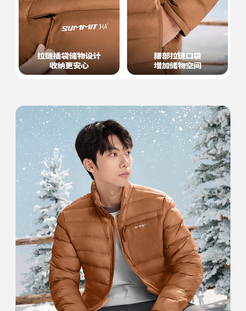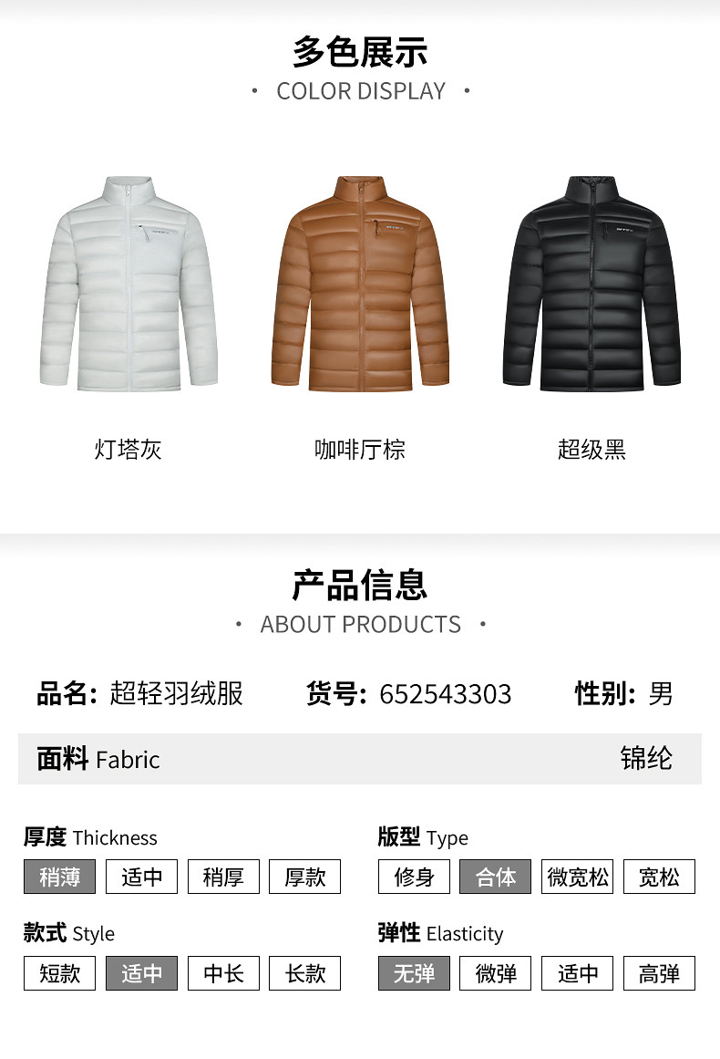 361 Rain Screen down Jacket Men's 2025 Winter Ultra-Light down Jacket Men's Stand Collar Warm Water-Repellent Jacket 3303