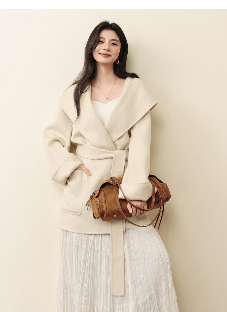 【Meng Huan Coat】Shifanli 12%+ Silk Camel Wool Bathrobe-Style Coat 25 Winter Wool Hooded Woolen Jacket