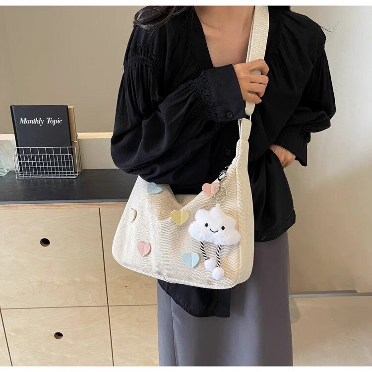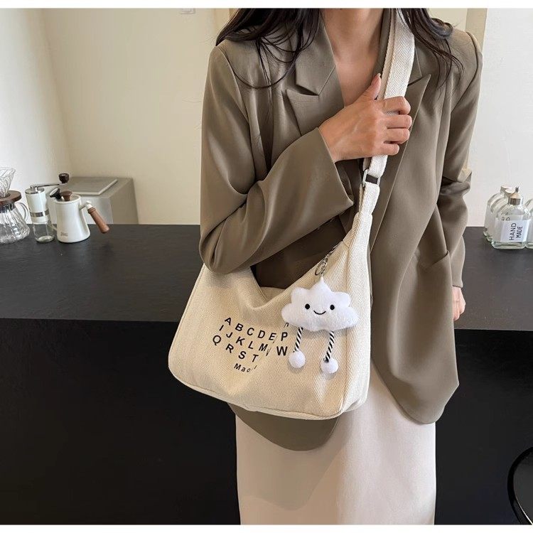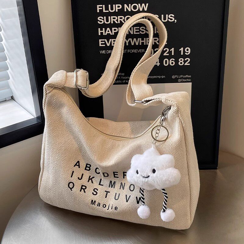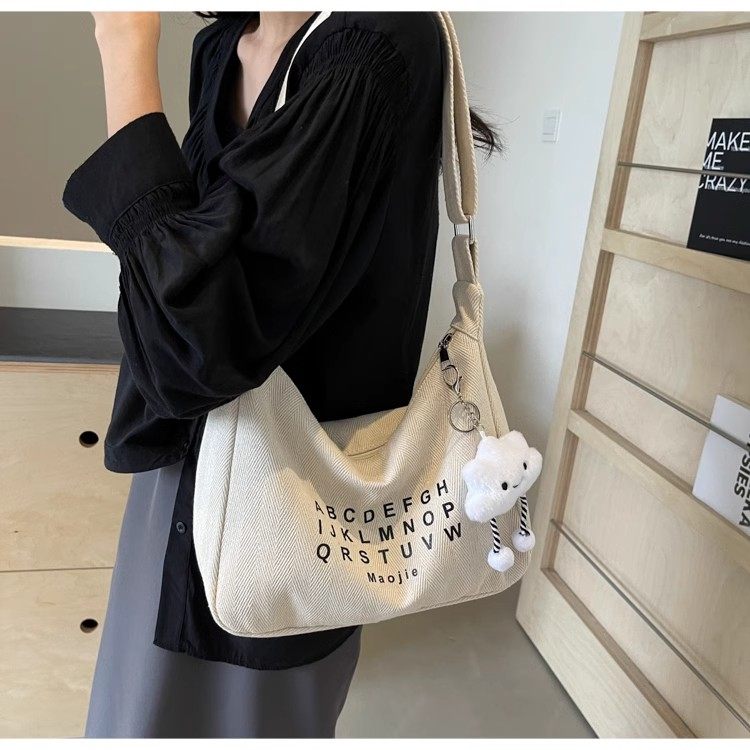 Crossbody Bag for Women 2025 New Canvas Bag Large Capacity Versatile College Student Class Bag ins Korean Style Commuter Shoulder Bag