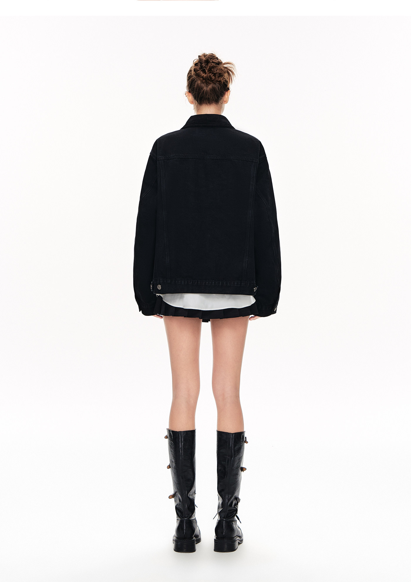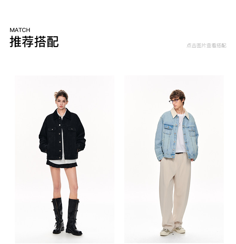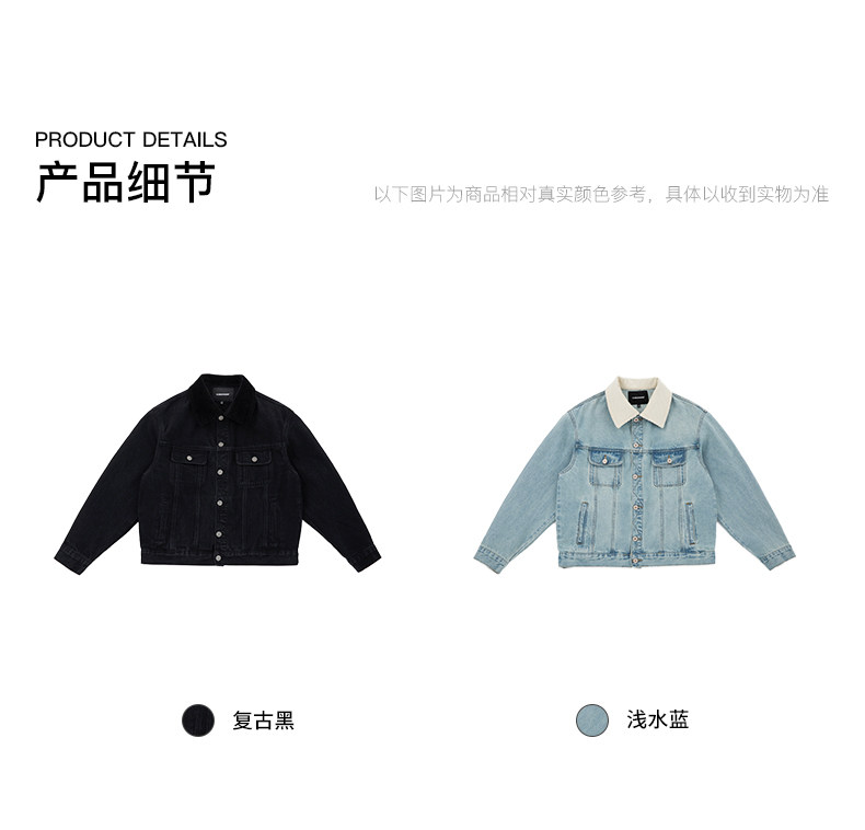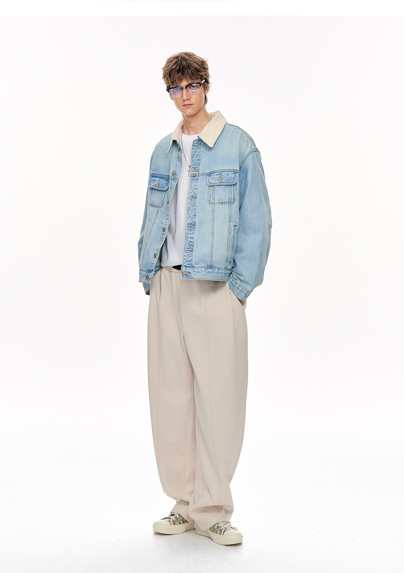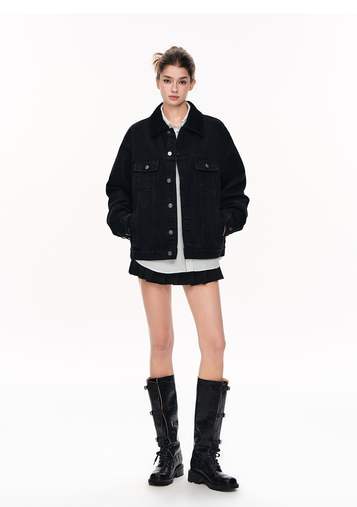 Climax Vision Classic Retro Corduroy Lapel Silhouette Washed Distressed Denim Jacket