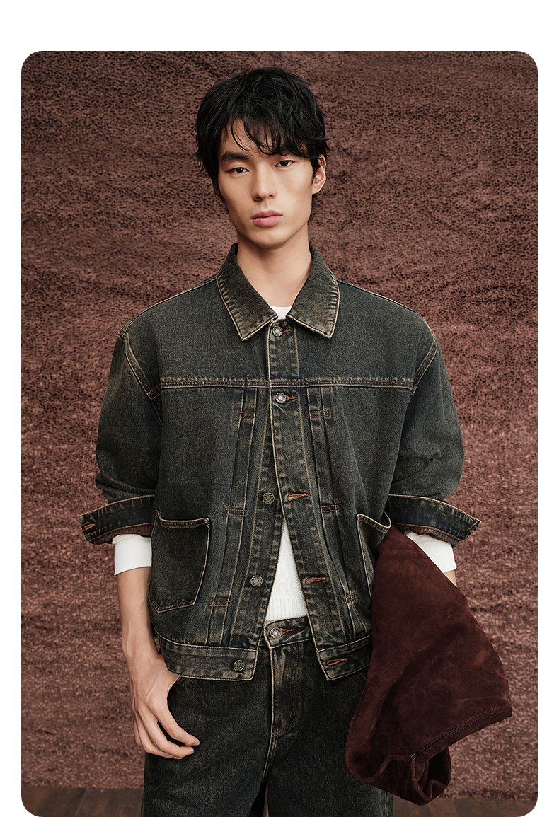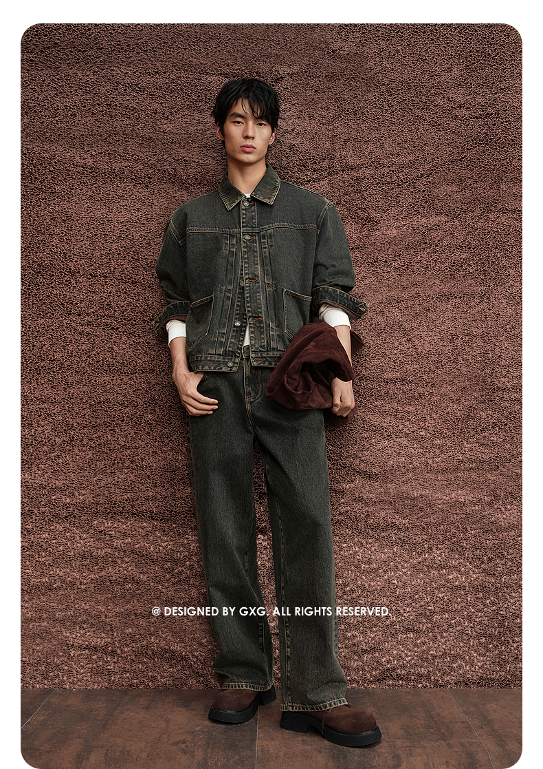GXG men's 2025 Autumn New style Suit lapel denim Outwear Men jacket tide G25XE83014077