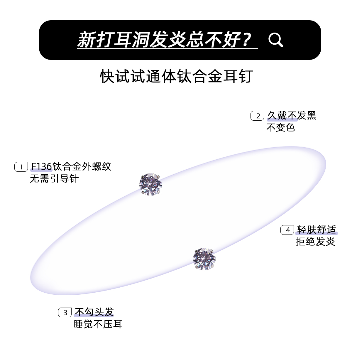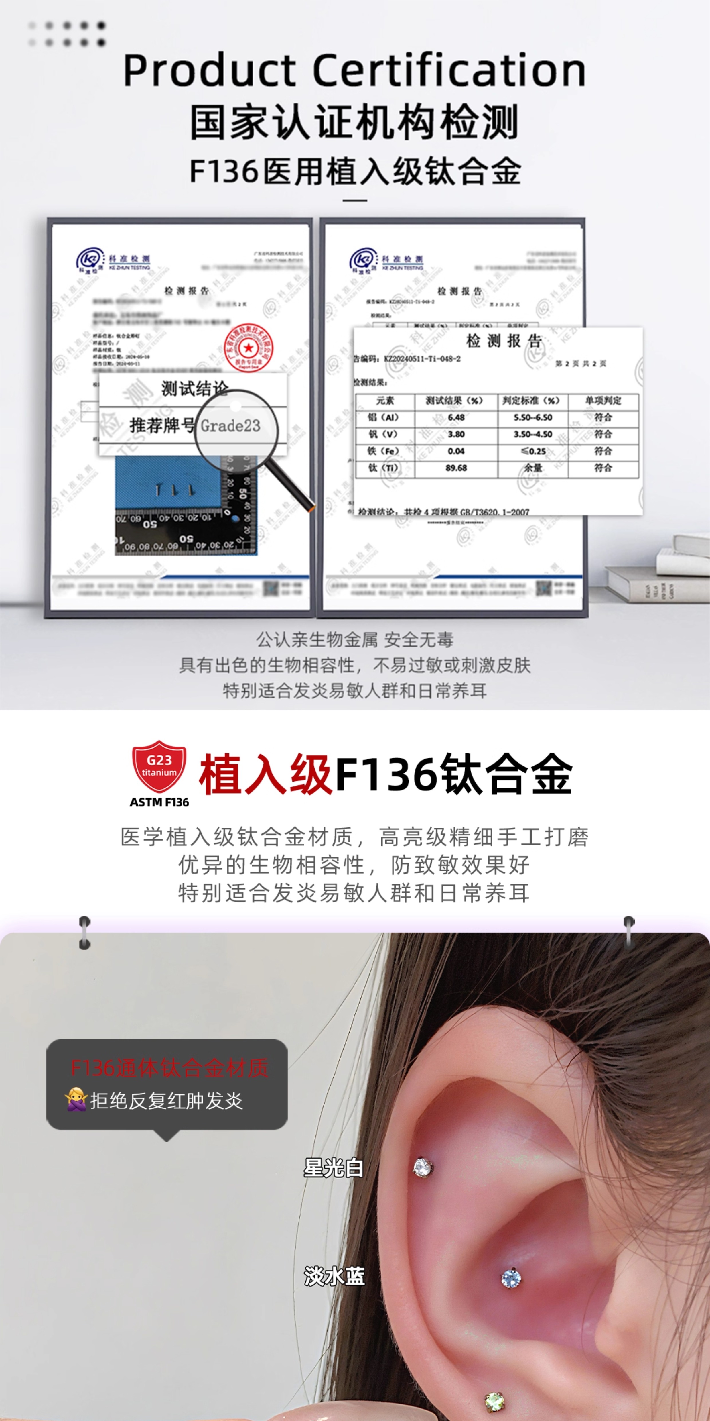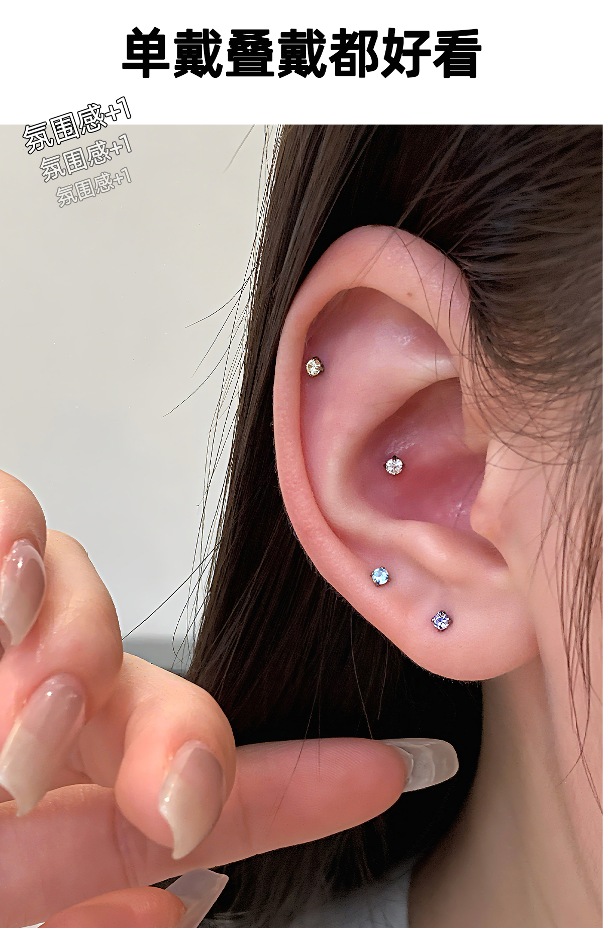 Medical Titanium Alloy Ear Studs for Ear Piercing, Mini Drill Ear Bone Studs, Titanium Steel Hypoallergenic Cochlear Studs, No Need to Remove Earrings for Sleeping