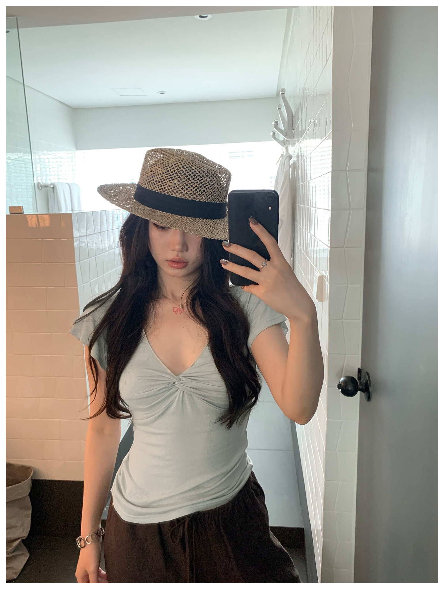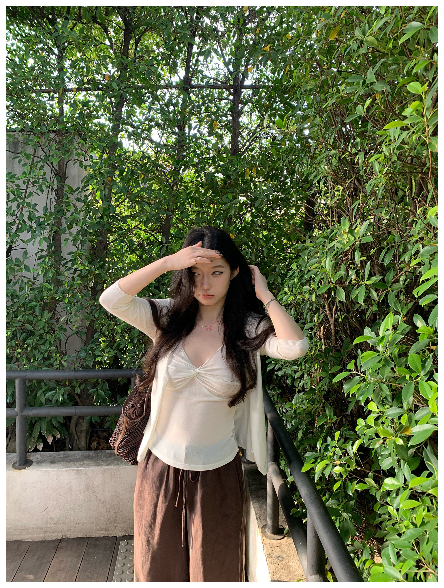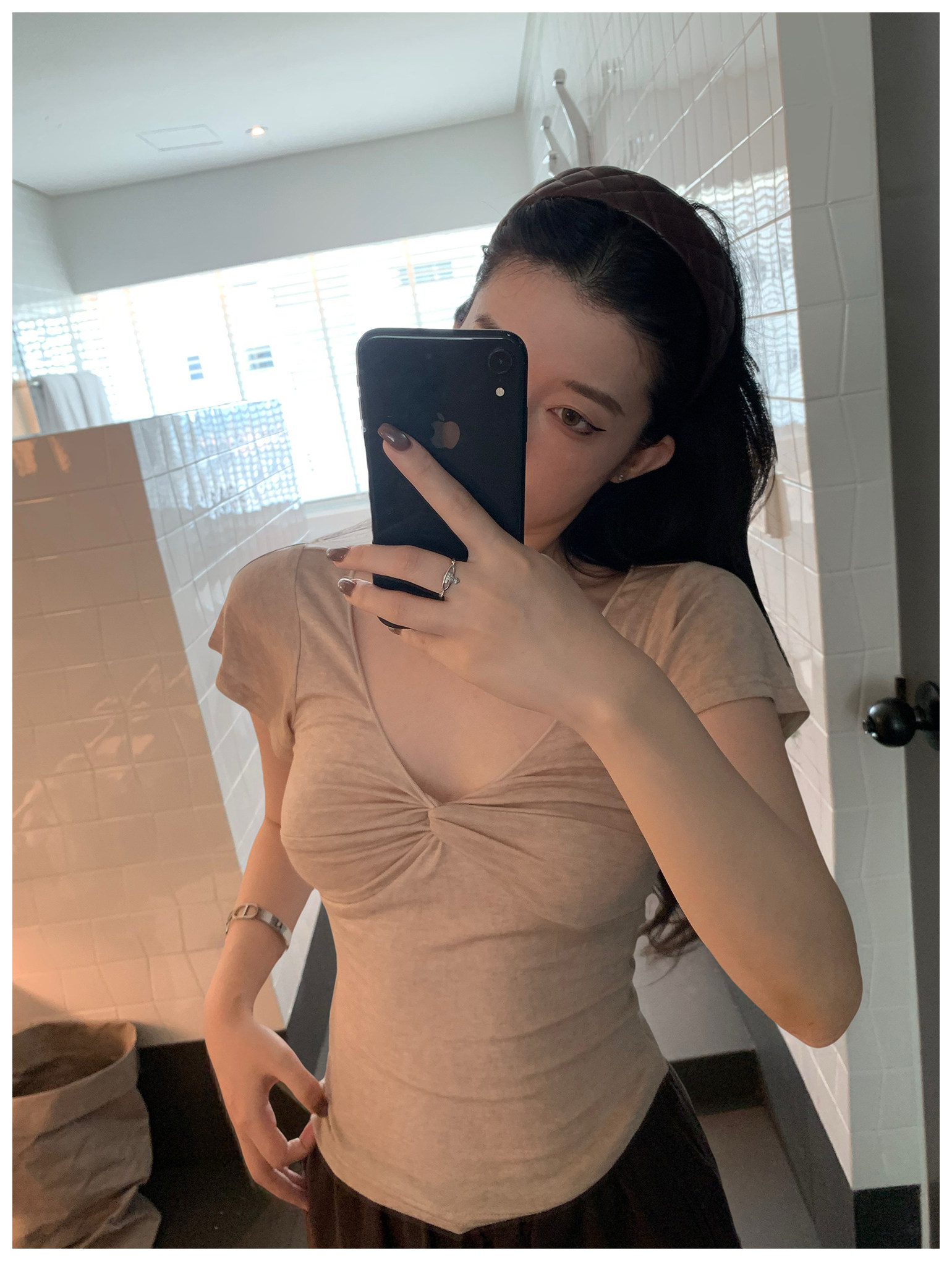Sheepland Angel Skin Tencel Wool V-Neck Twisted Long Sleeve T-Shirt for Women Spring Inner Layer Top Base Shirt