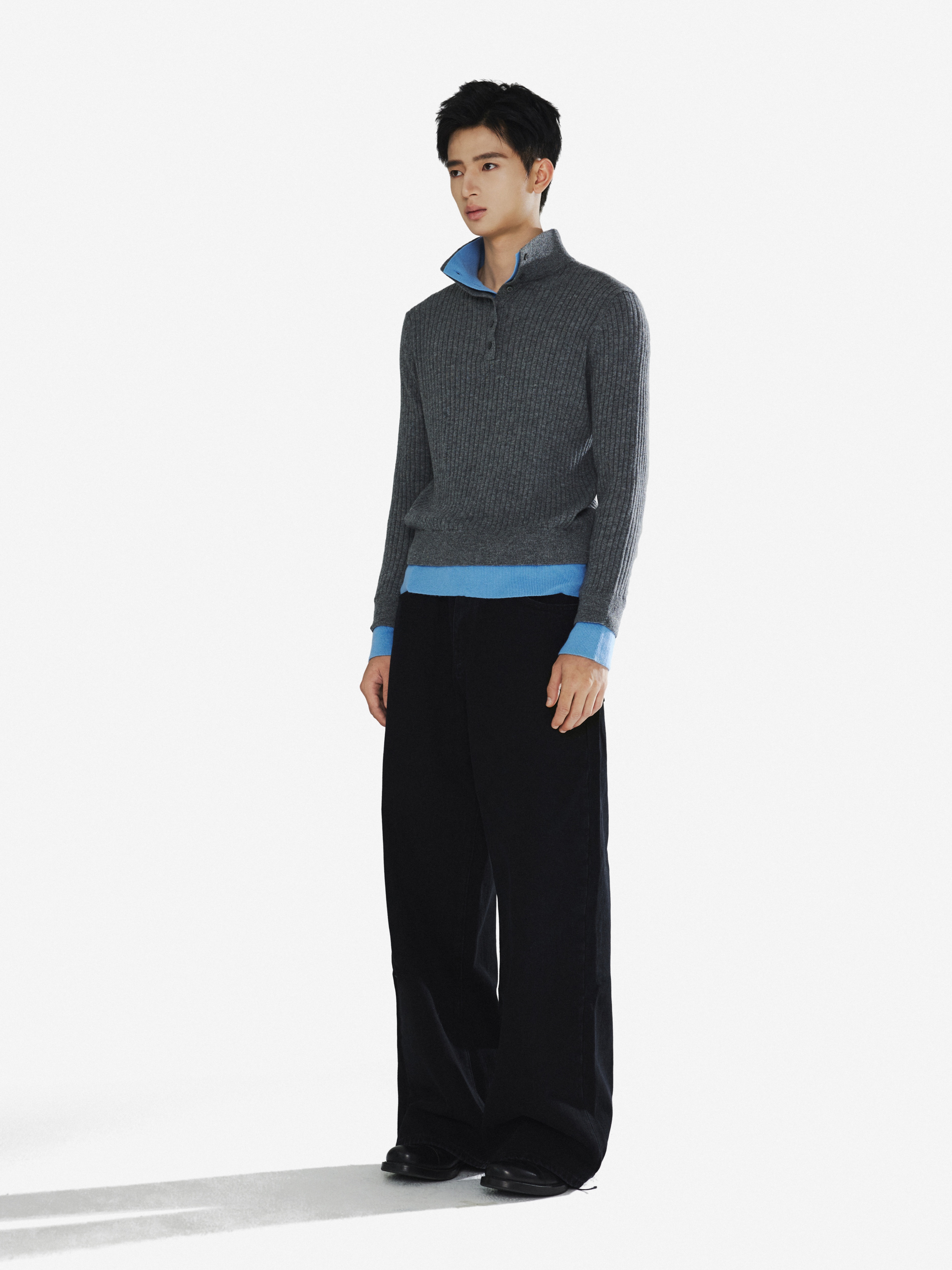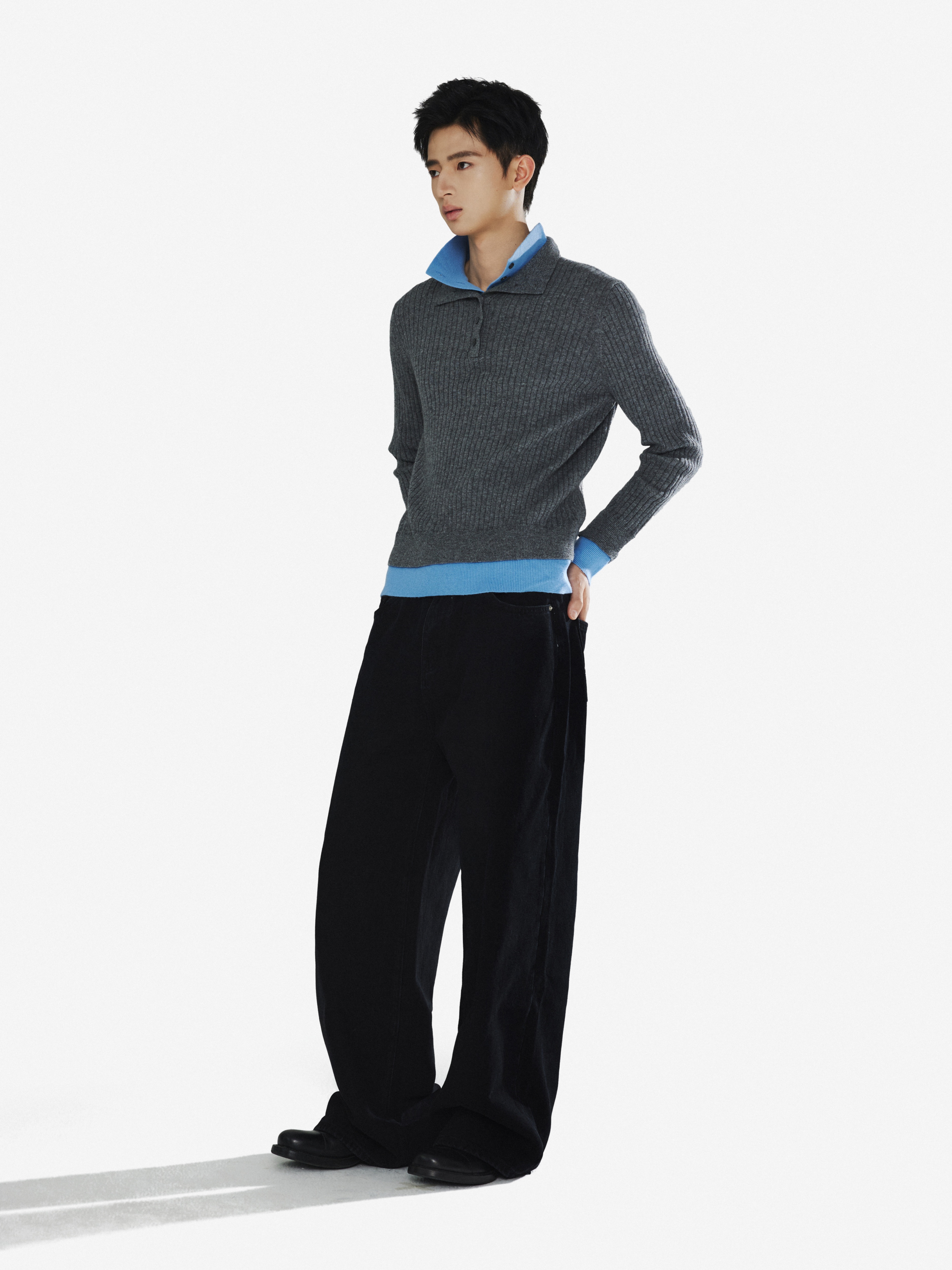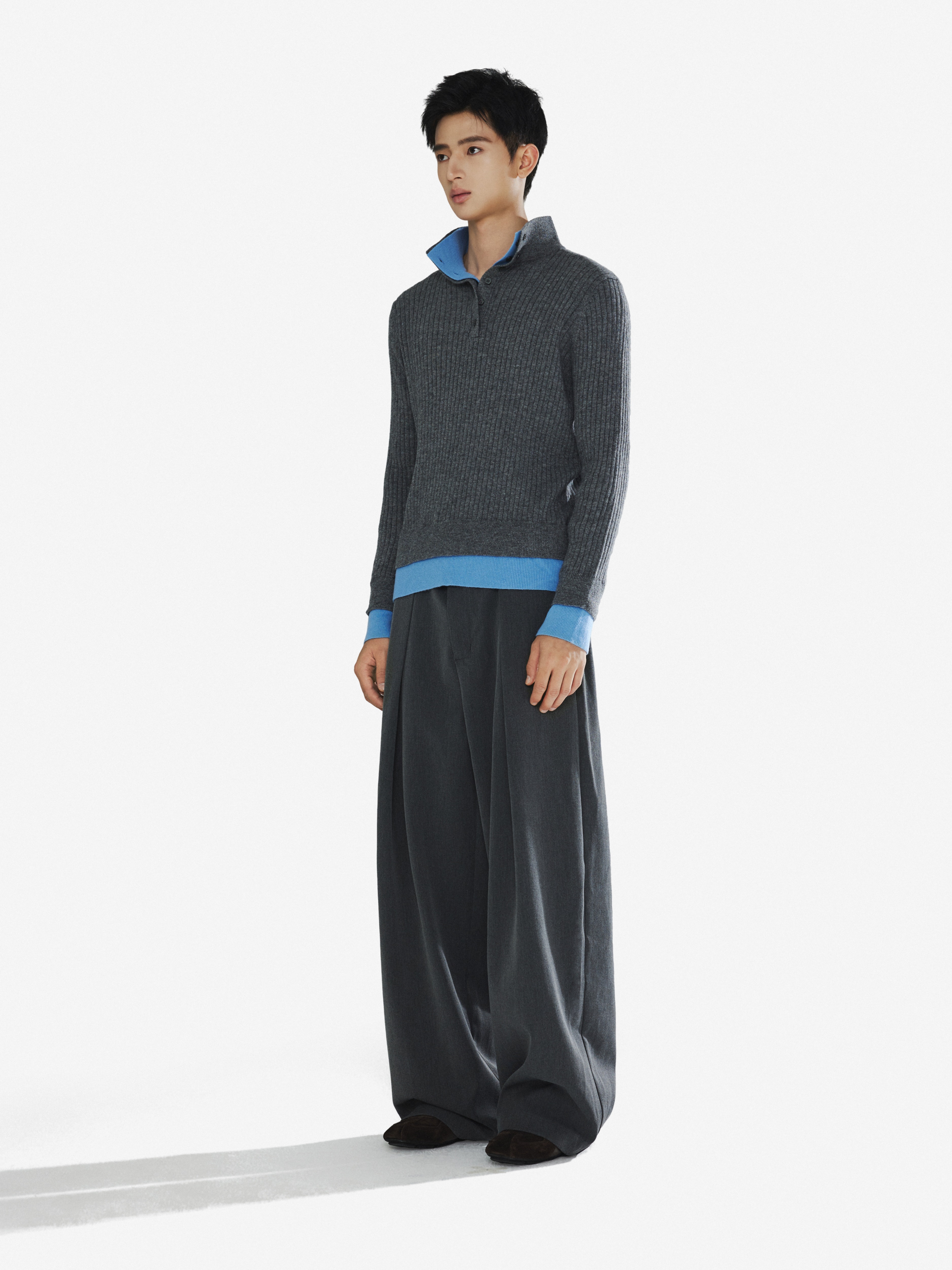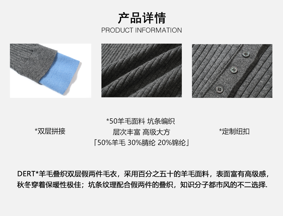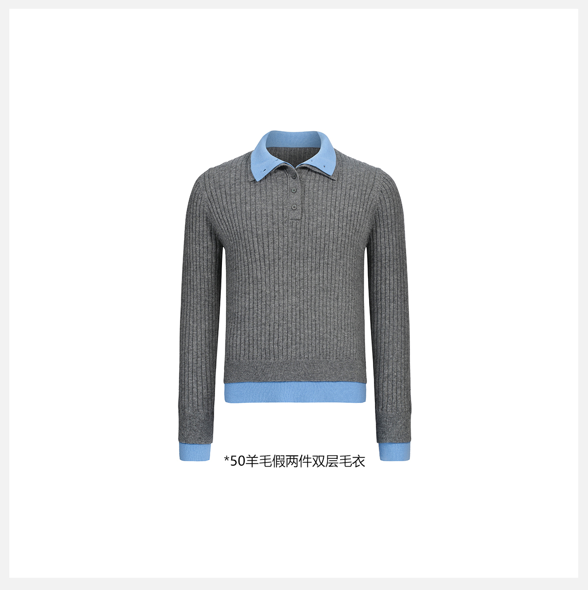 Dert*50% Wool Layered Knit Fake Two-Piece Double-Layer Collar Long-Sleeve Sweater Intellectual