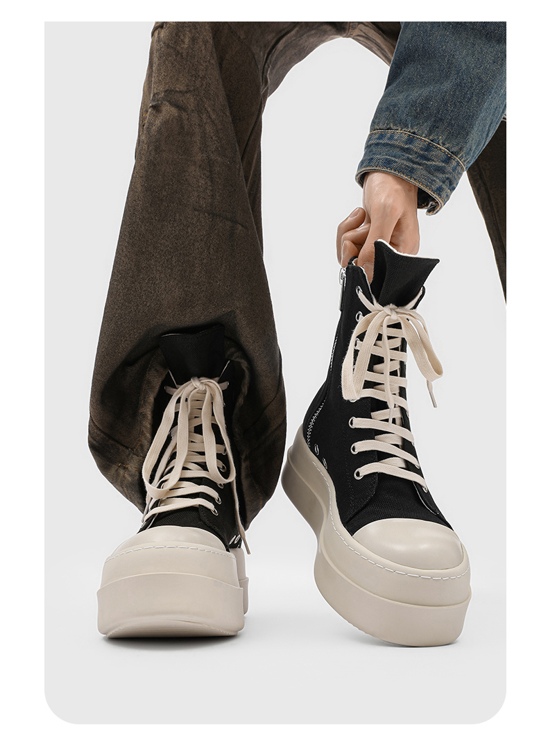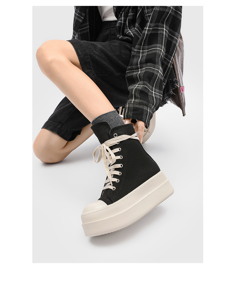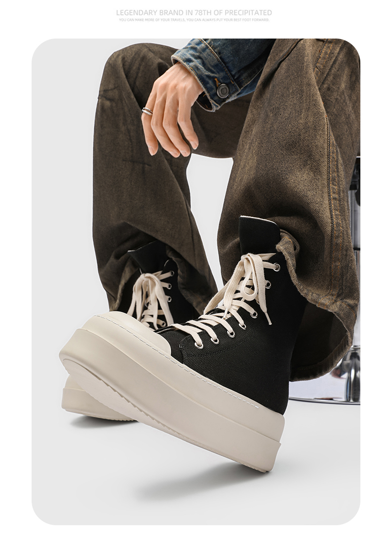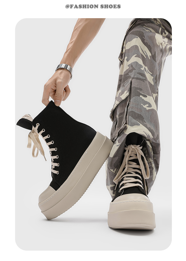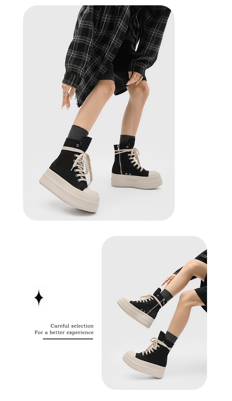 6cm Thick-Soled High-Top Shoes for Men and Women, 2025 New Autumn Height-Increasing Canvas Shoes, Black and White Versatile ins Trendy Casual Sneakers
