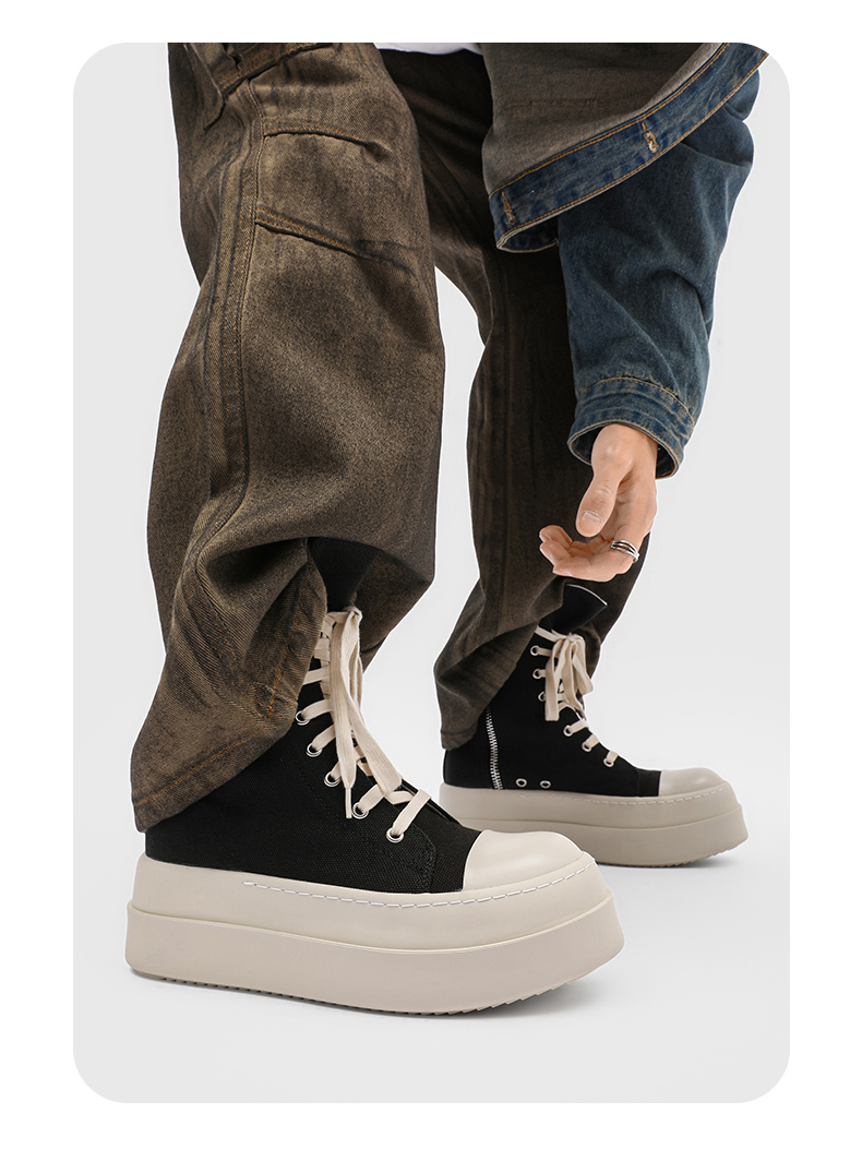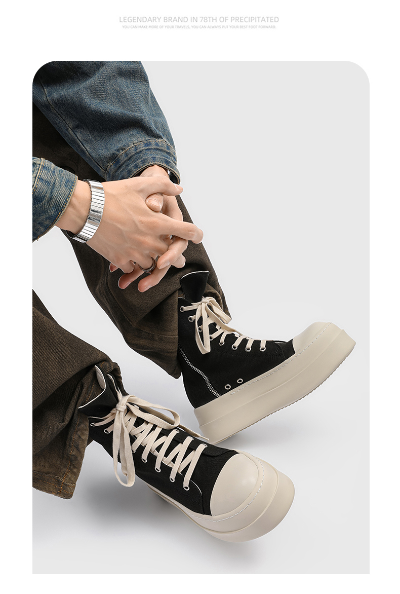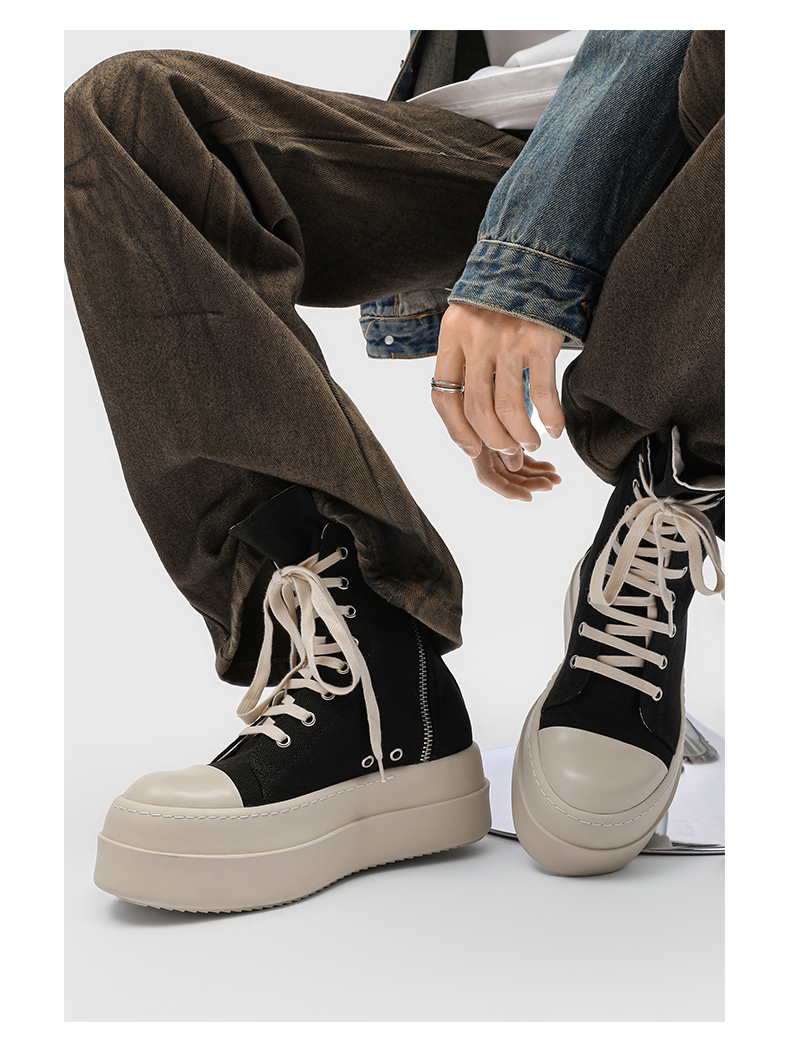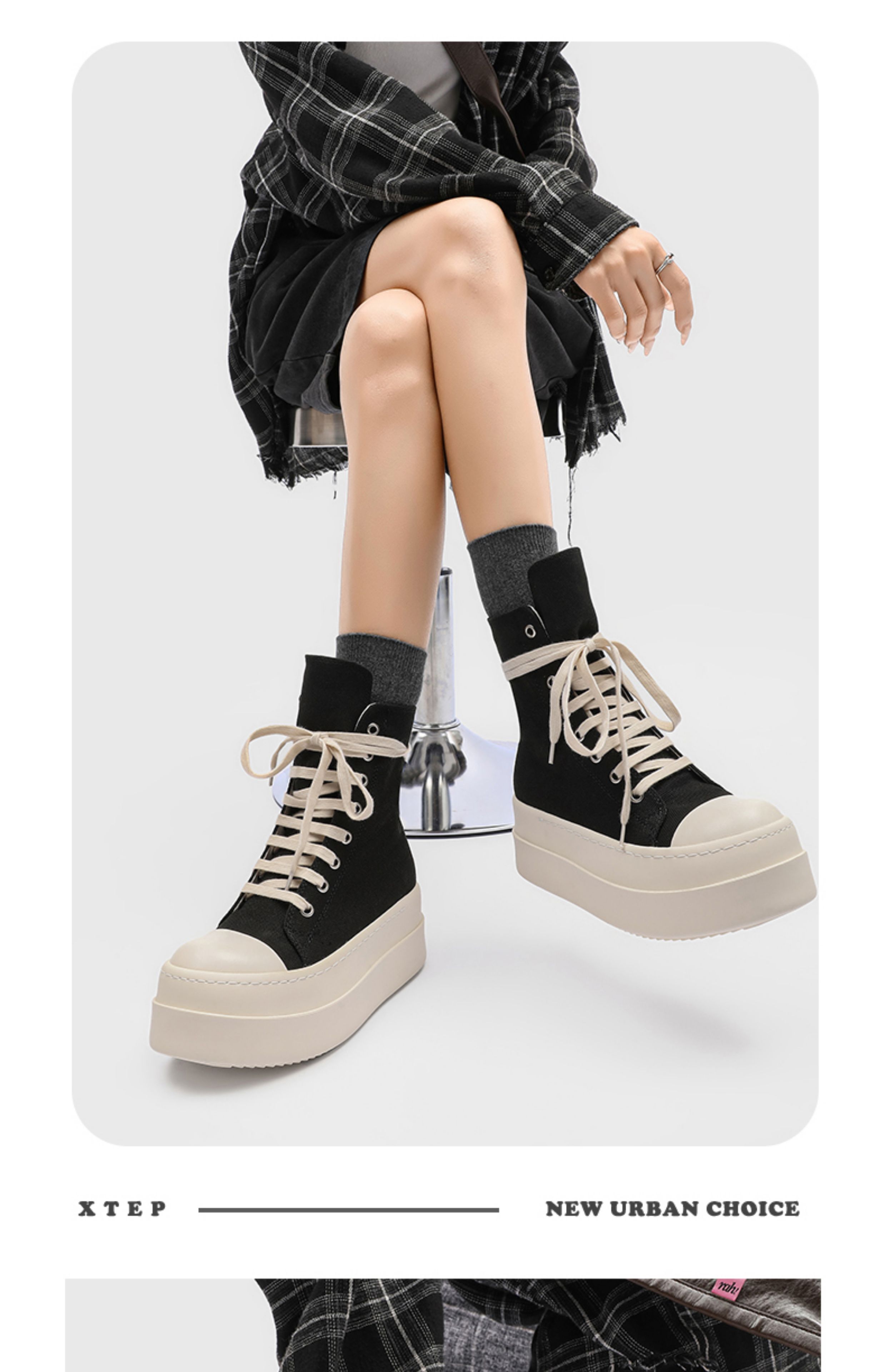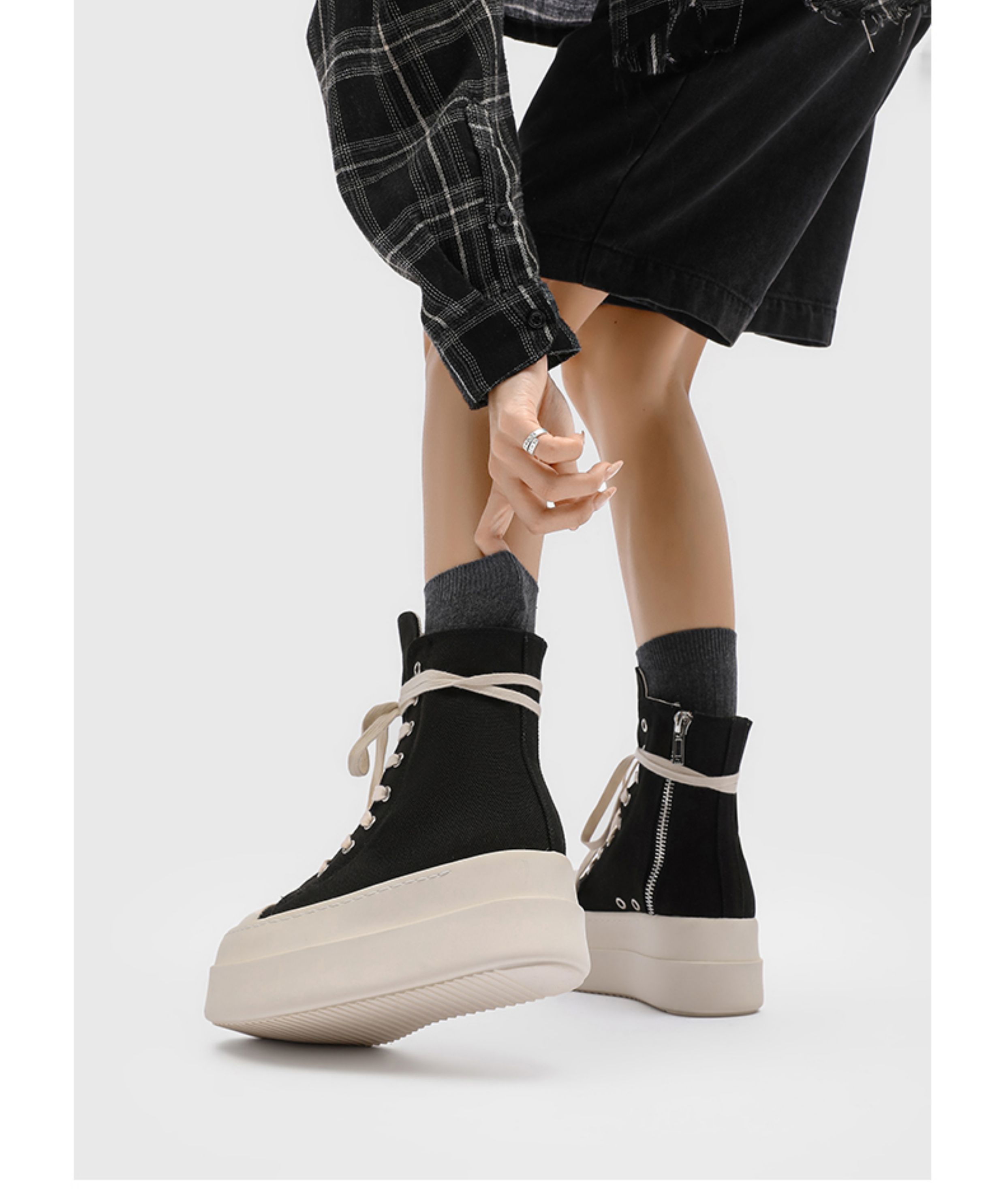 6cm Thick-Soled High-Top Shoes for Men and Women, 2025 New Autumn Height-Increasing Canvas Shoes, Black and White Versatile ins Trendy Casual Sneakers