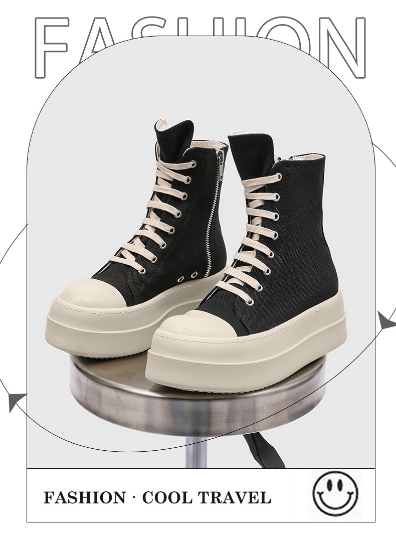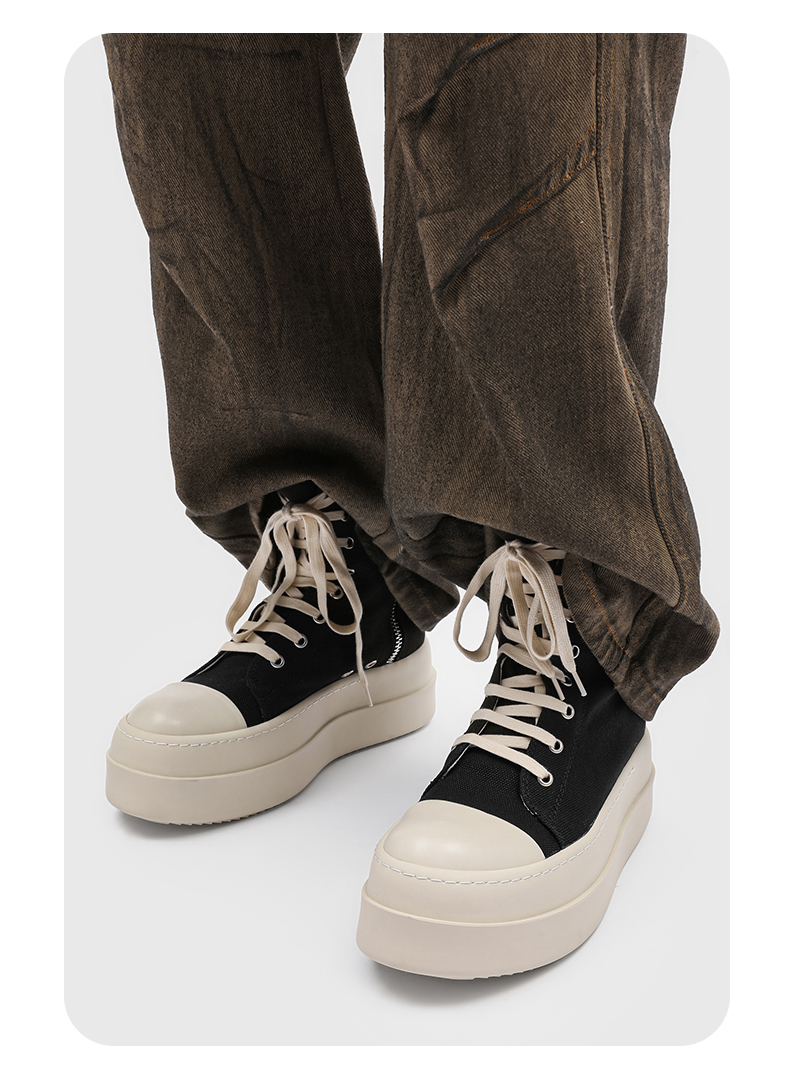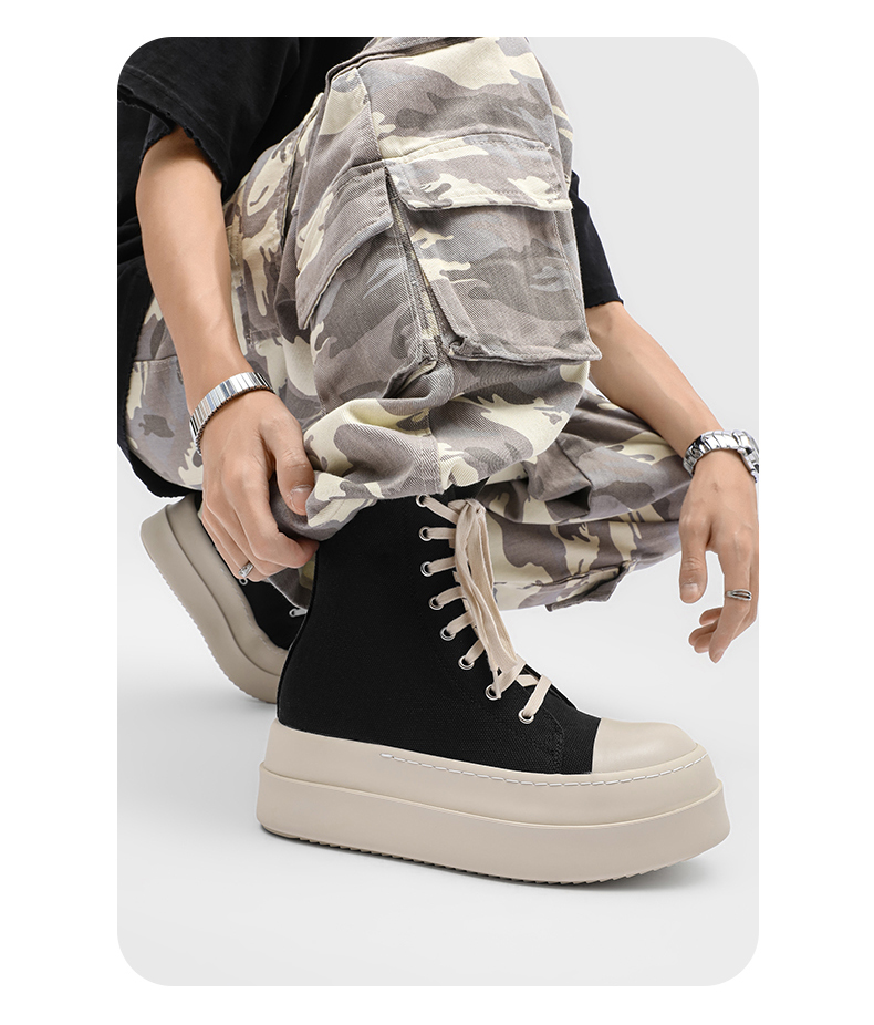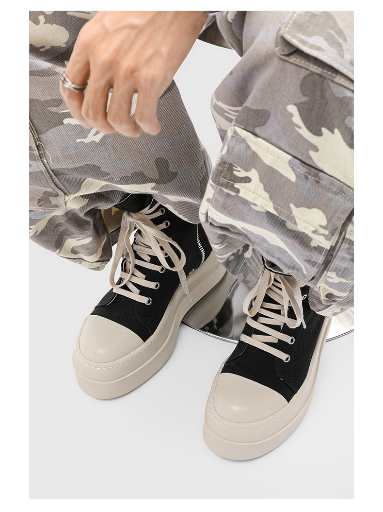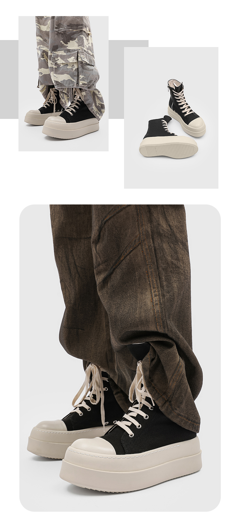 6cm Thick-Soled High-Top Shoes for Men and Women, 2025 New Autumn Height-Increasing Canvas Shoes, Black and White Versatile ins Trendy Casual Sneakers