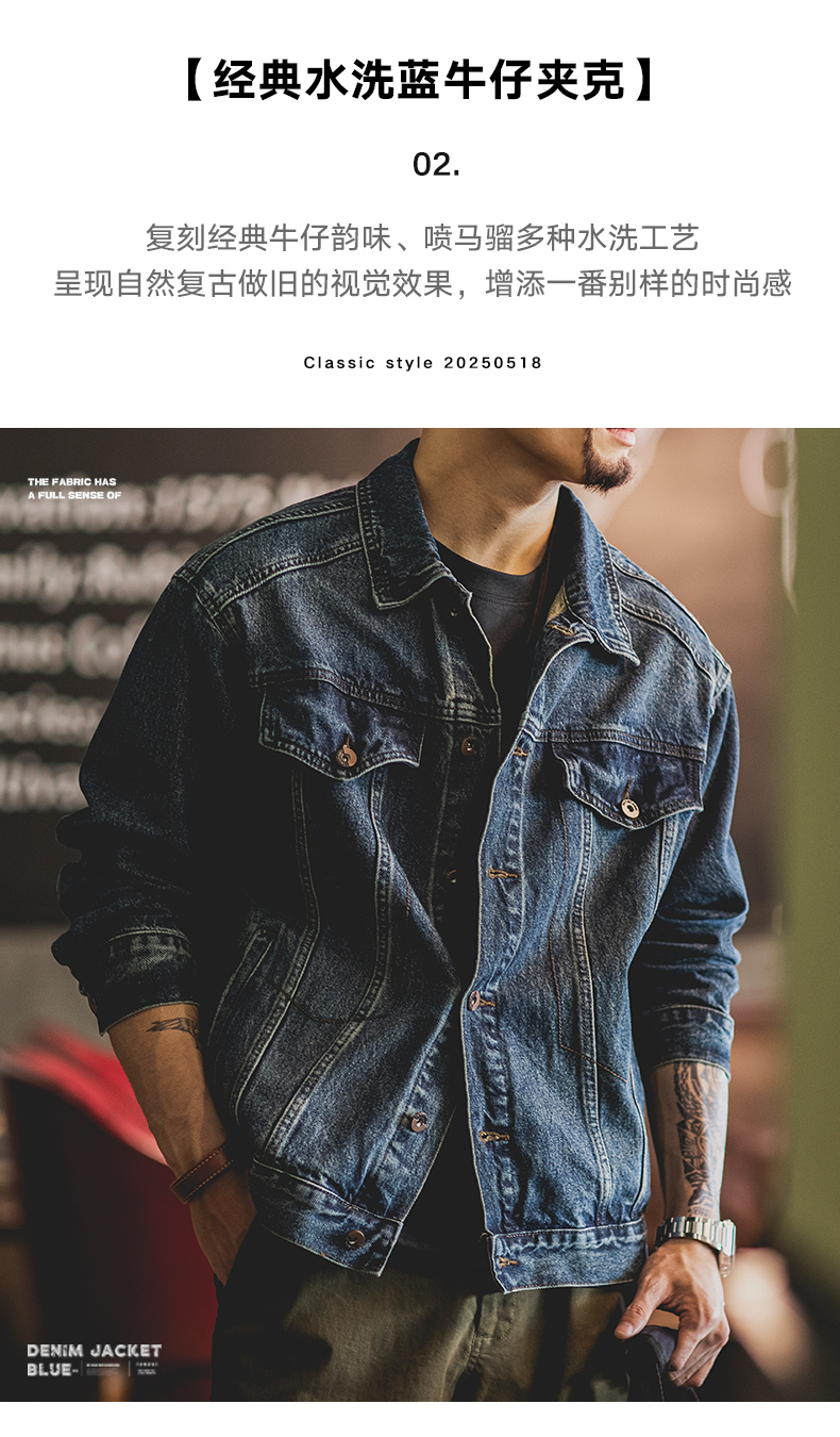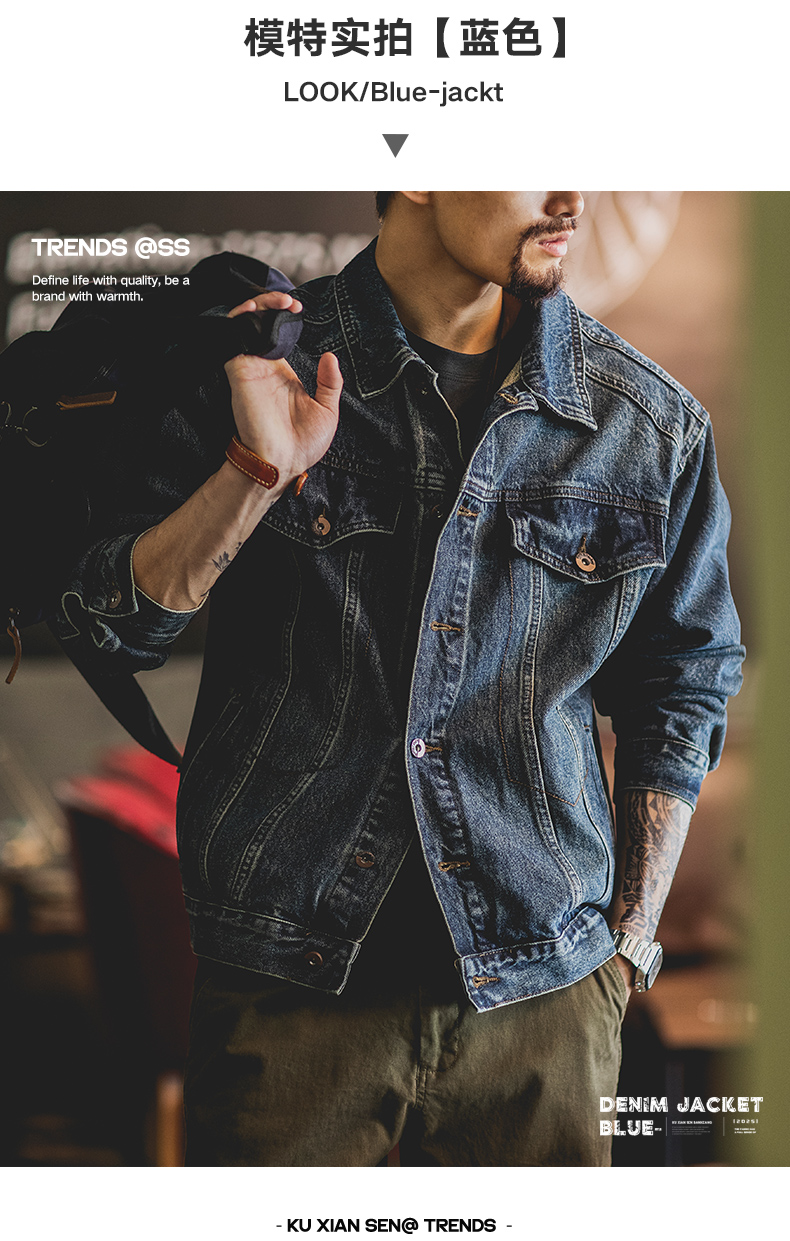 American Retro Washed Blue Fleece-Lined Denim Jacket for Men 2025 Autumn and Winter New Style Amekaji Workwear Jacket Trendy