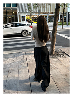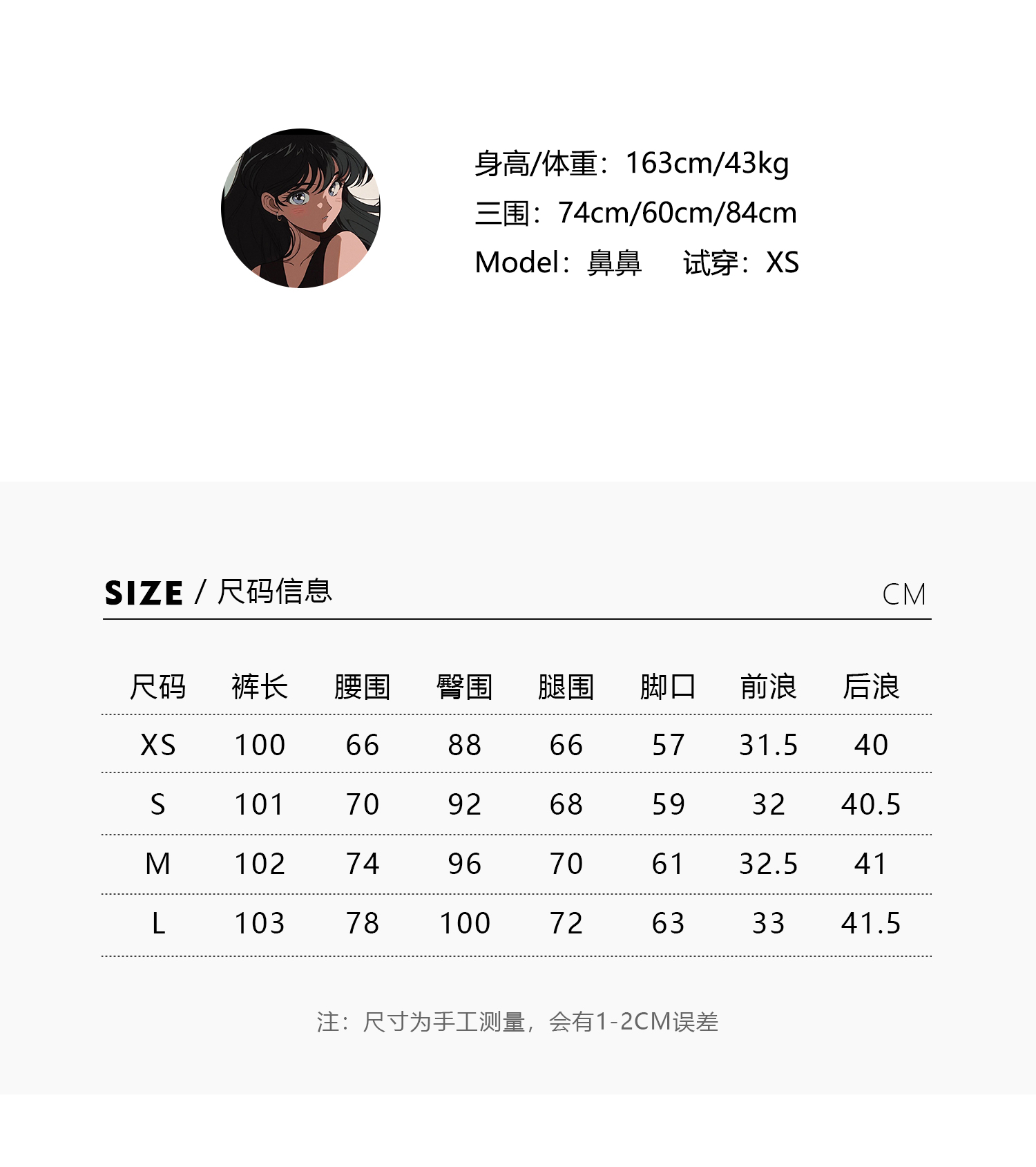 我拍照时候穿的s,因为比较喜欢松垮低腰的感觉,