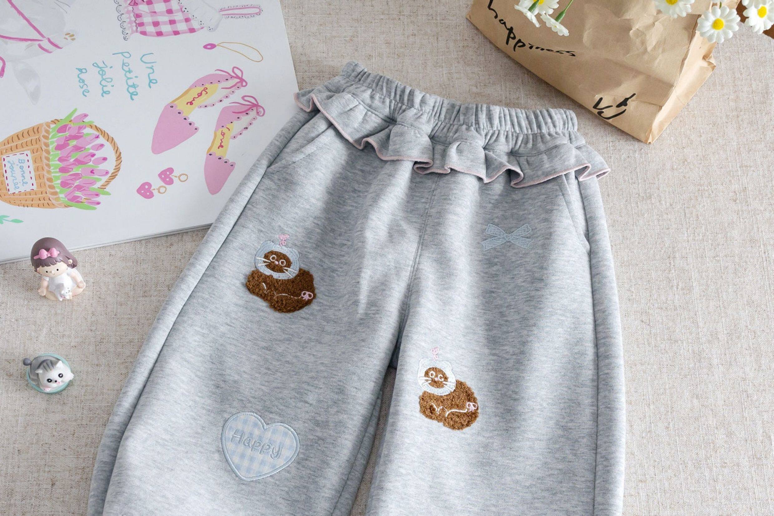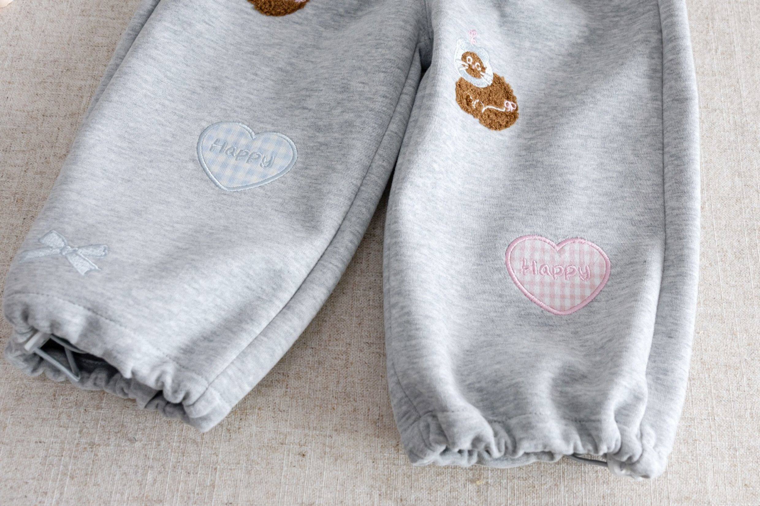 2026 New Autumn Girls' Gray Casual Sweatpants Cute Embroidered Loose Versatile Joggers Children's Pants