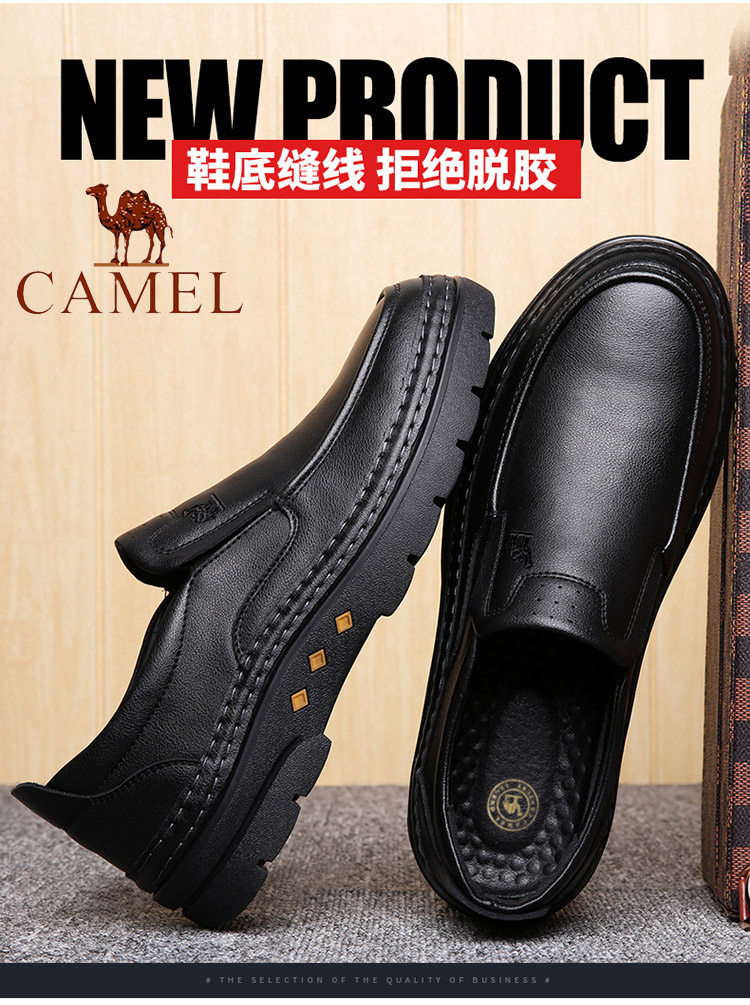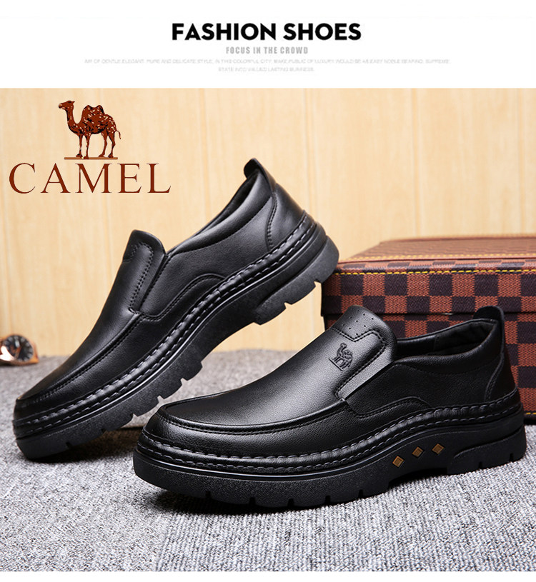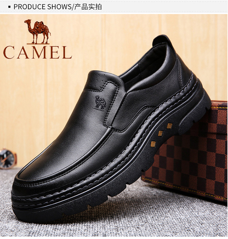 CAMEL Men's Genuine Leather Business Shoes 2025 Hand-Stitched Winter Fleece-Lined Warm Dad's Cotton Shoes for Men