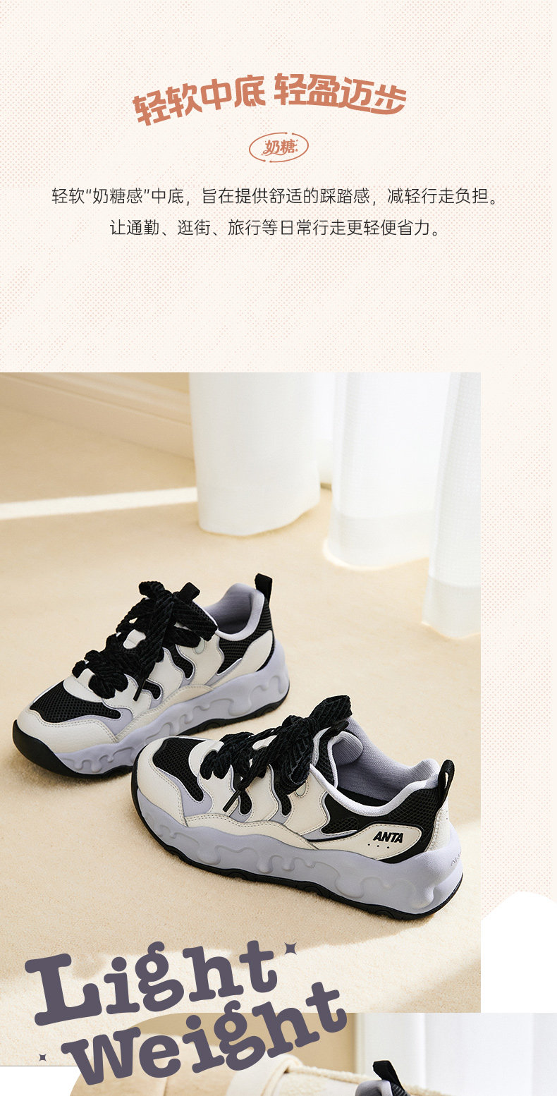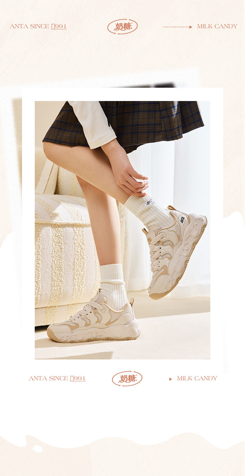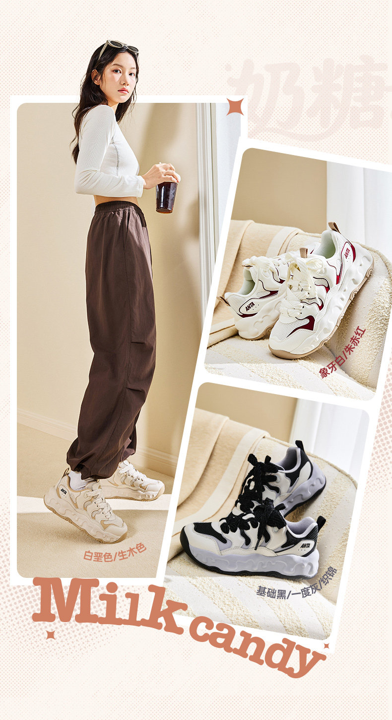Anta Milk Candy | Thick-Soled Height-Increasing Dad Shoes, Low-Top Loafers, Casual Shoes, Women's Shoes, Soft-Soled Comfortable Sneakers