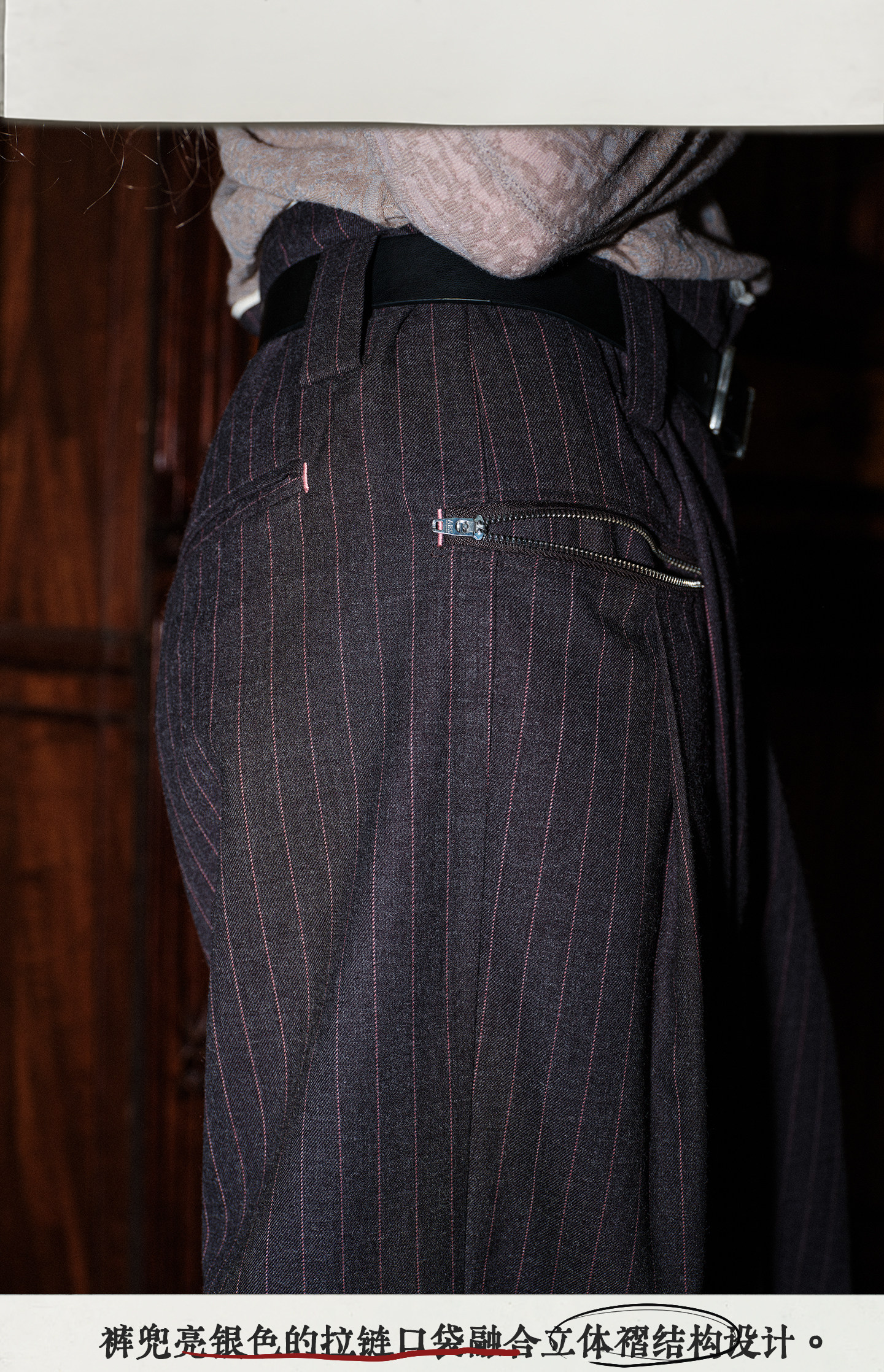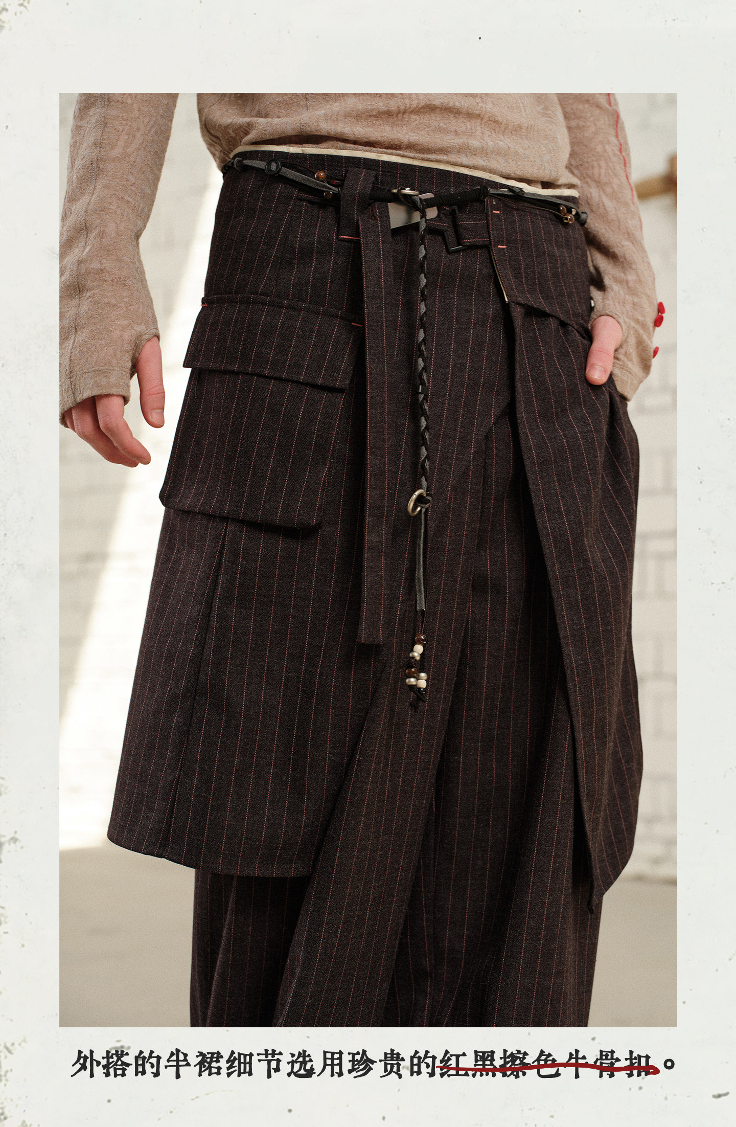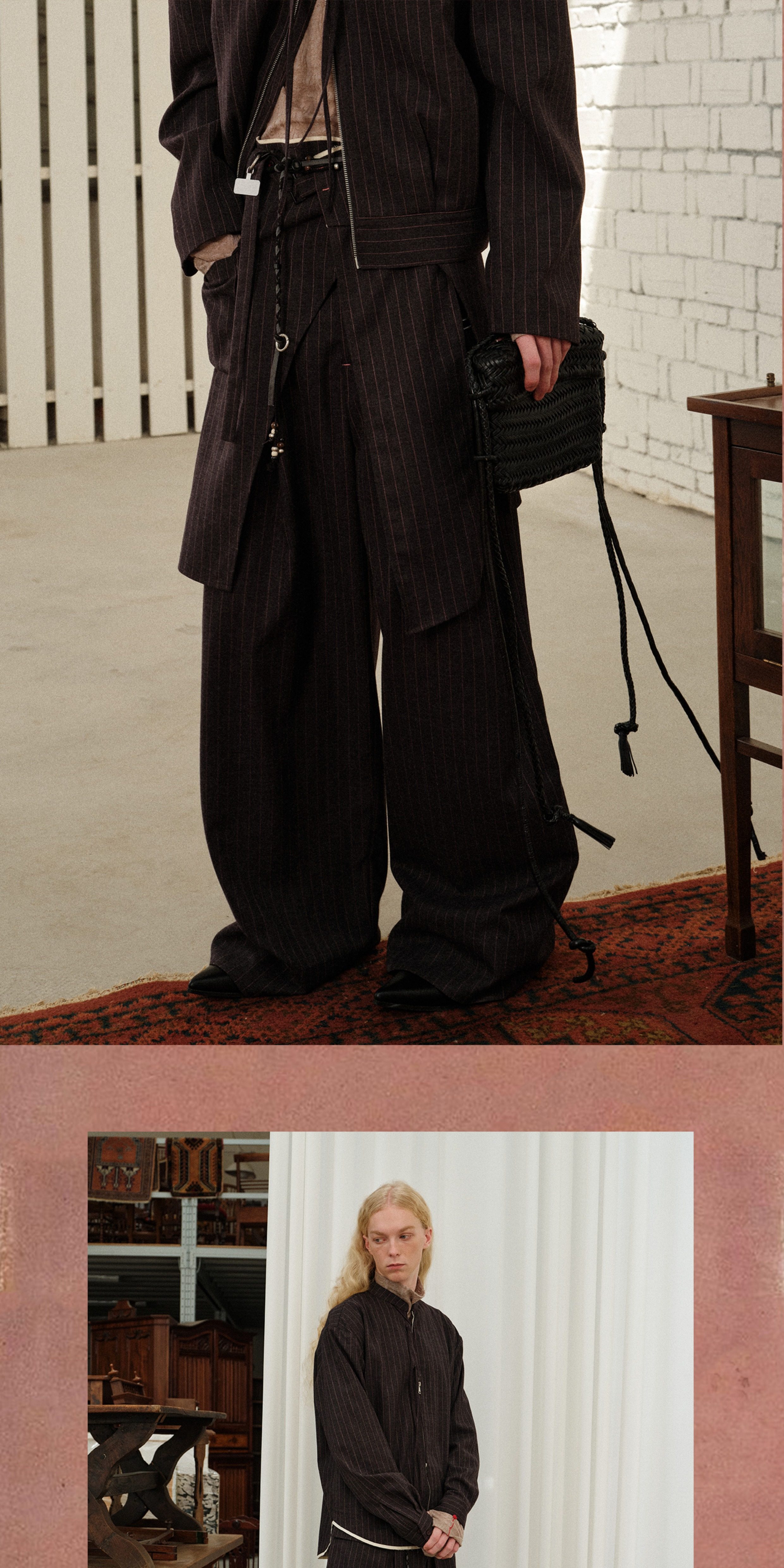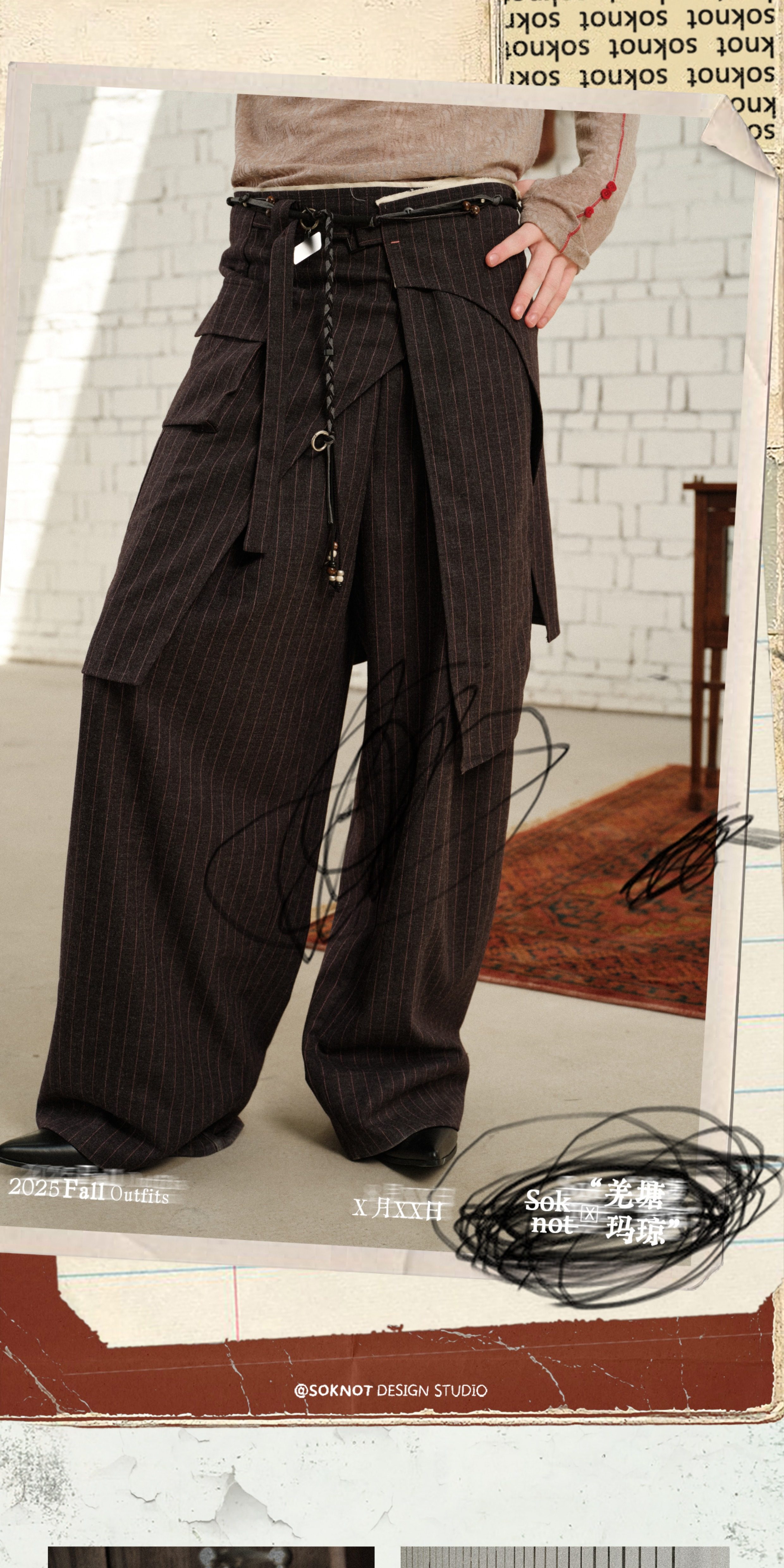 Soknot〔Tibetan Red Erosion〕Original Niche Designer Brand Gray-Pink Striped Dress Pants Casual Long Pants for Men