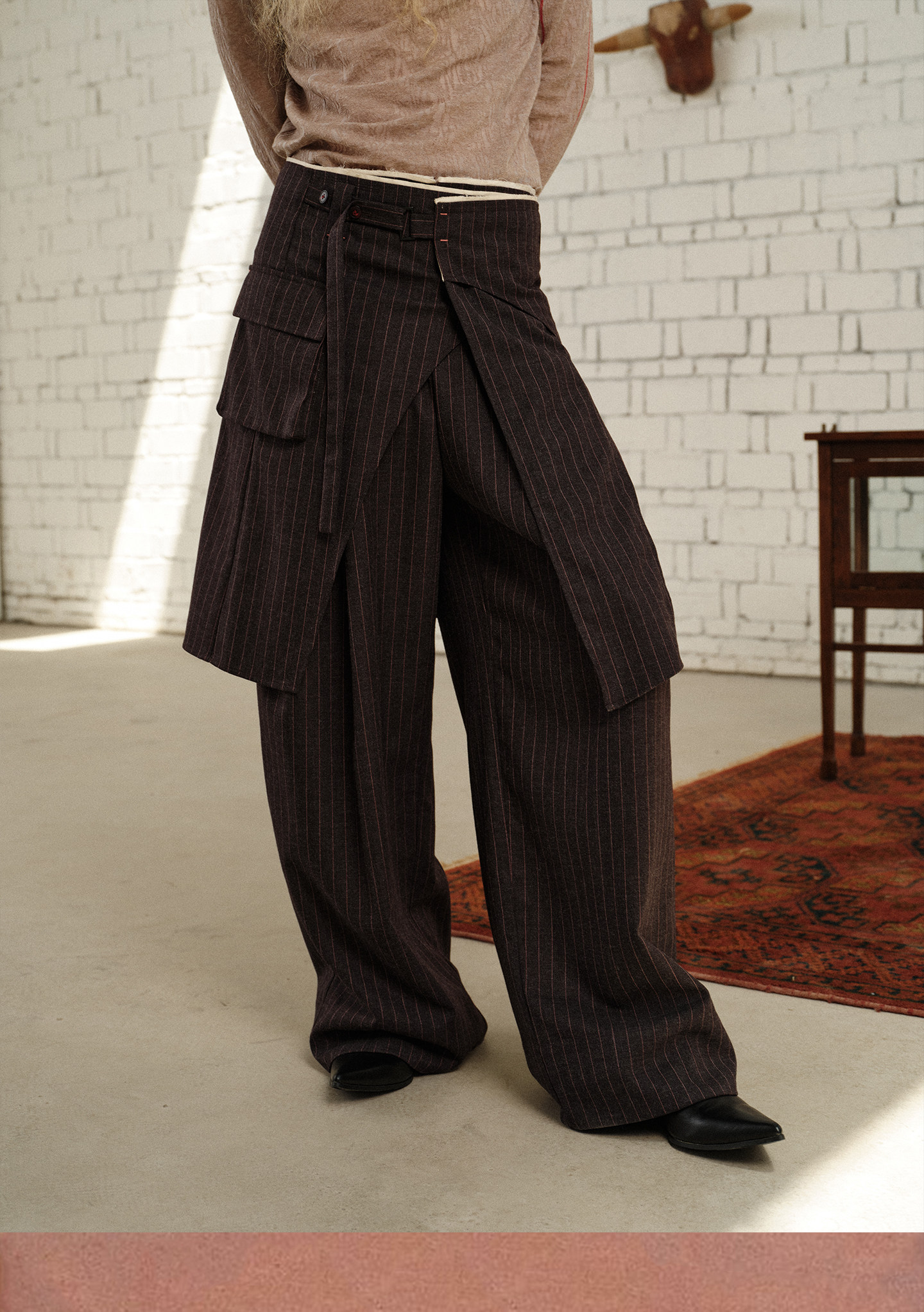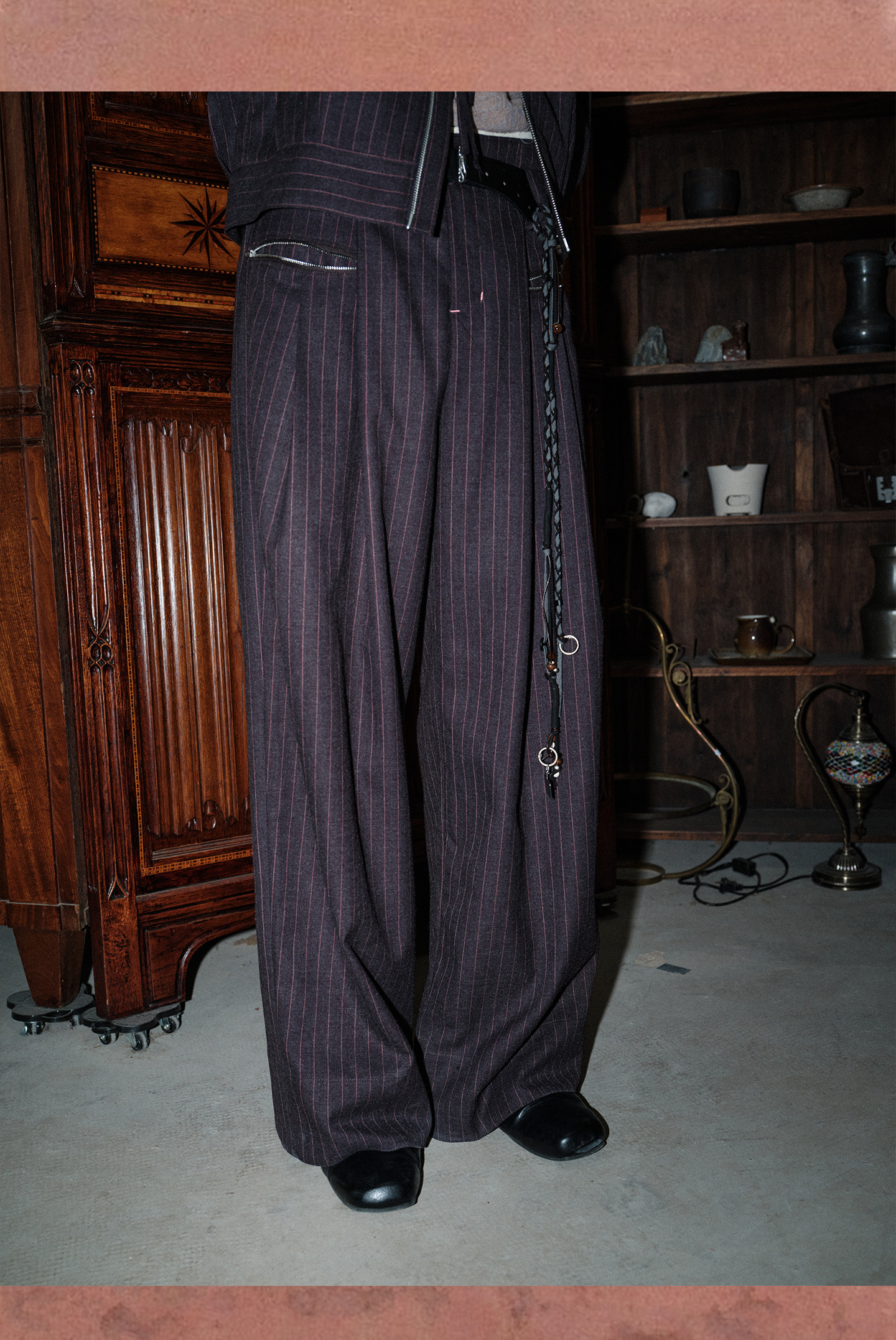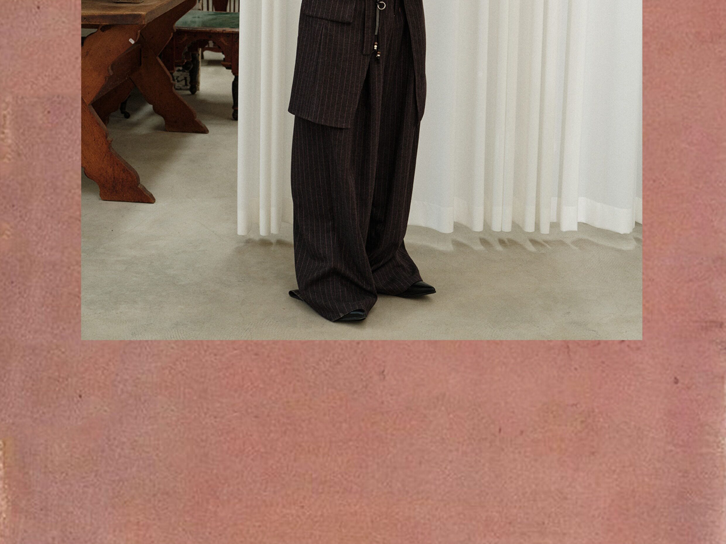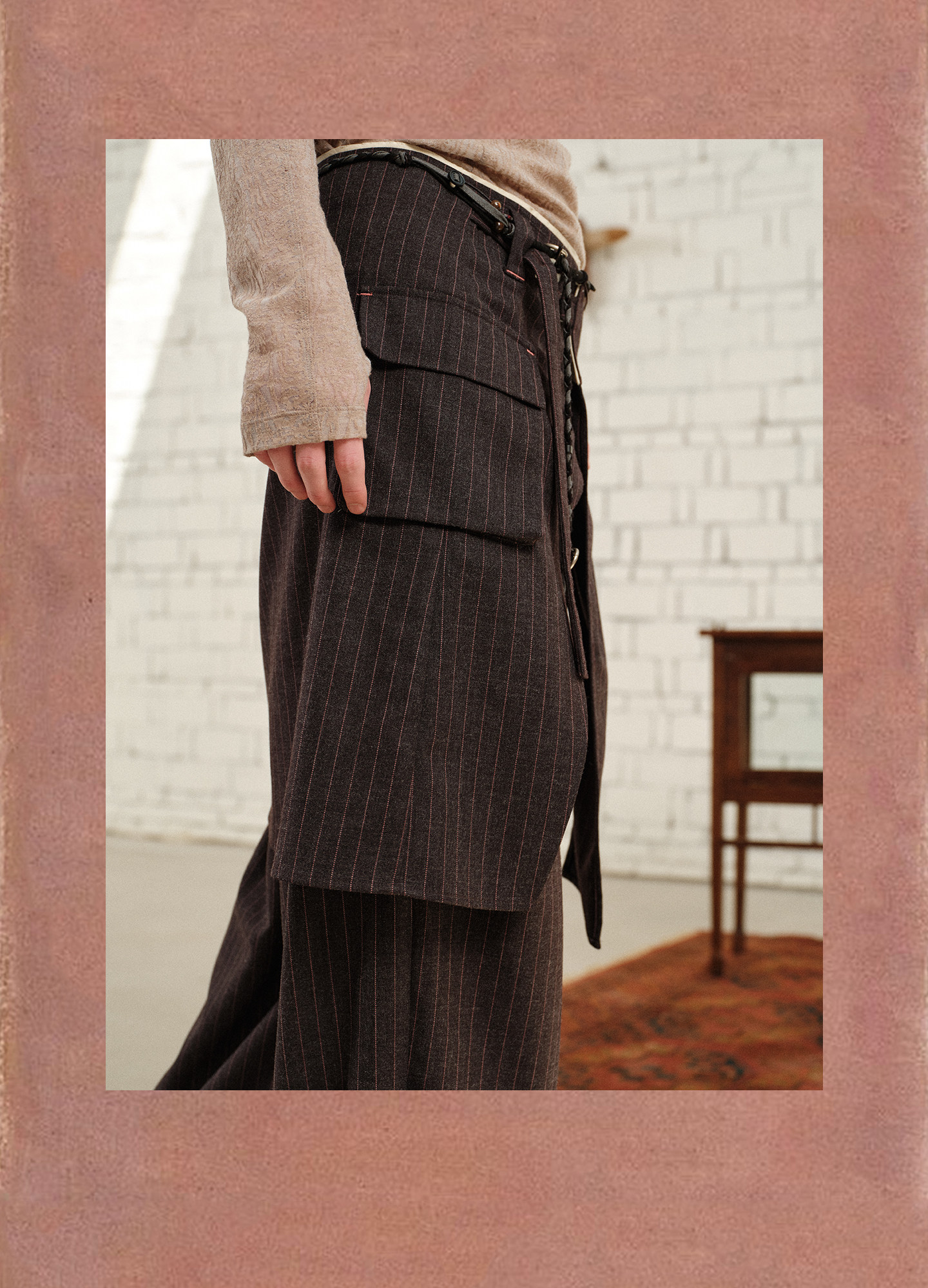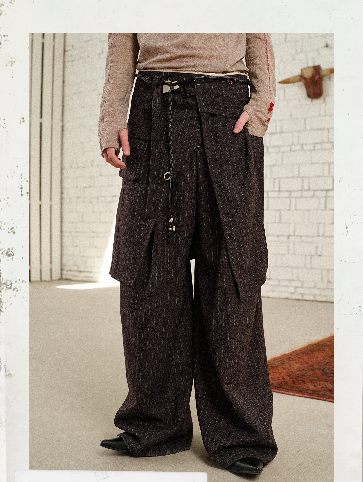 Soknot〔Tibetan Red Erosion〕Original Niche Designer Brand Gray-Pink Striped Dress Pants Casual Long Pants for Men