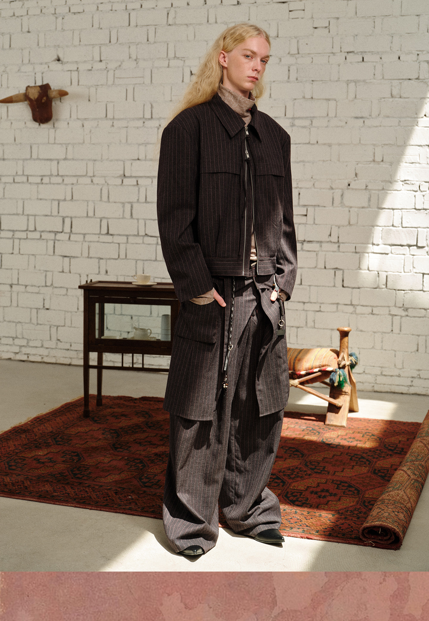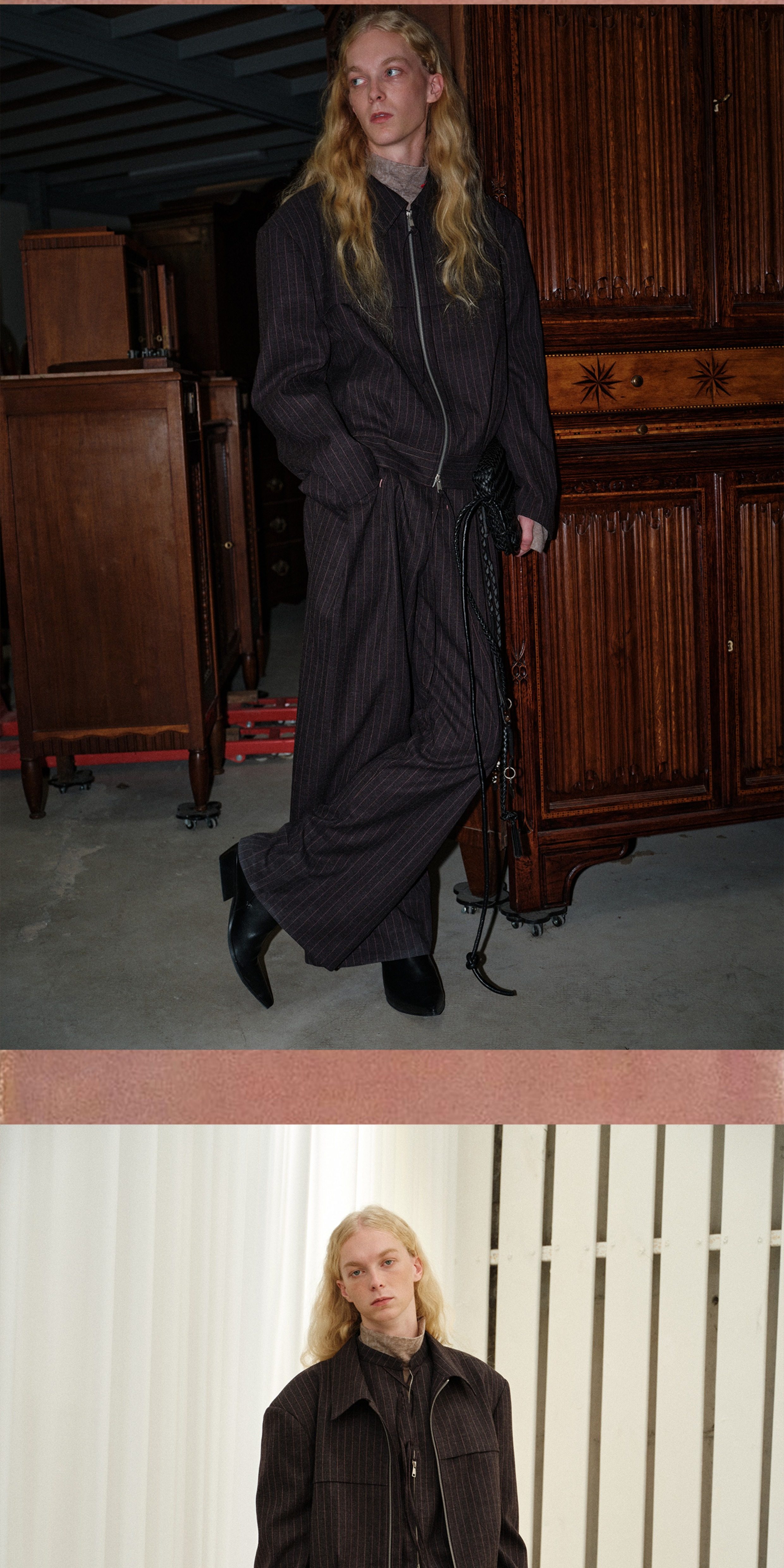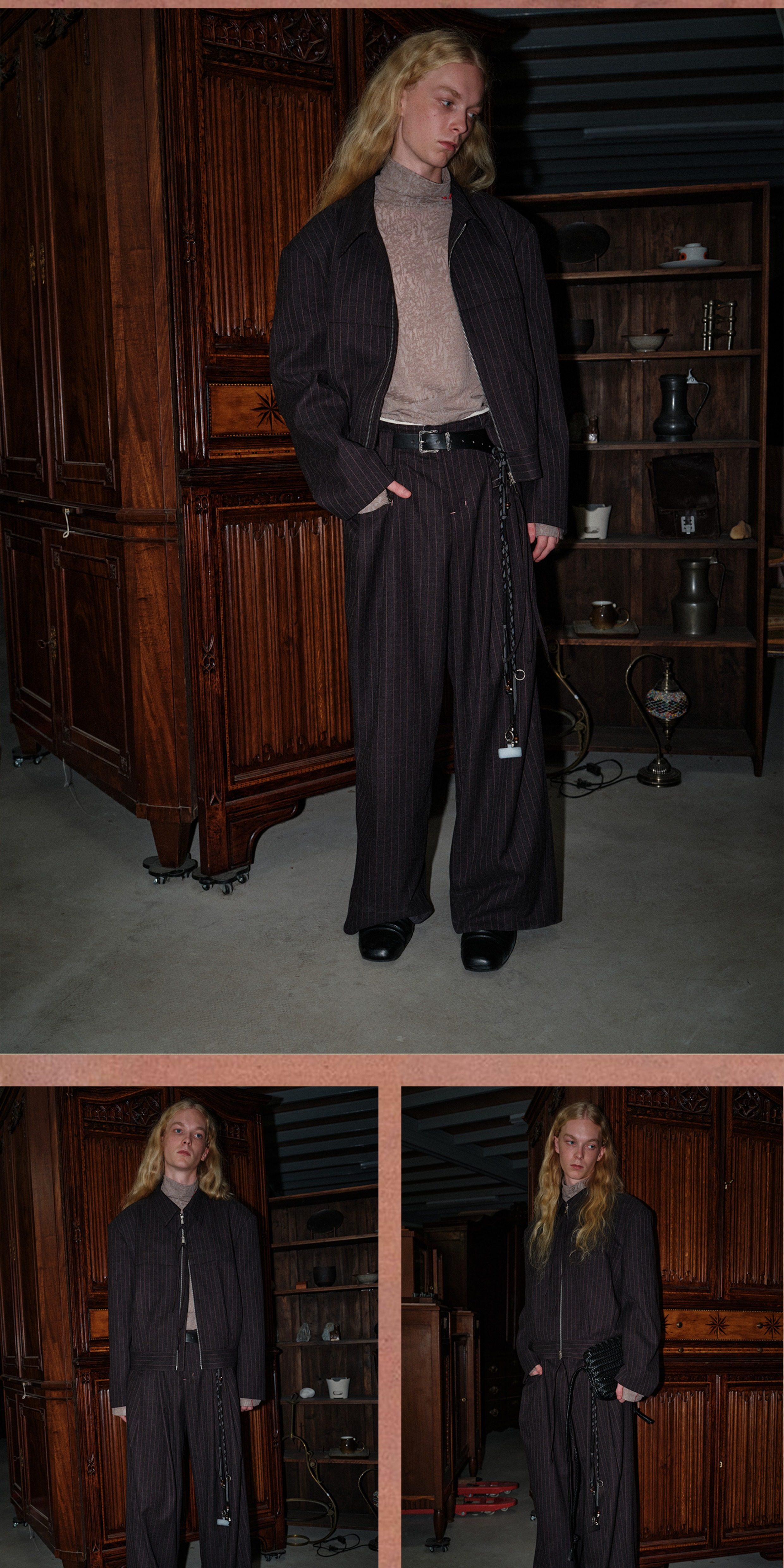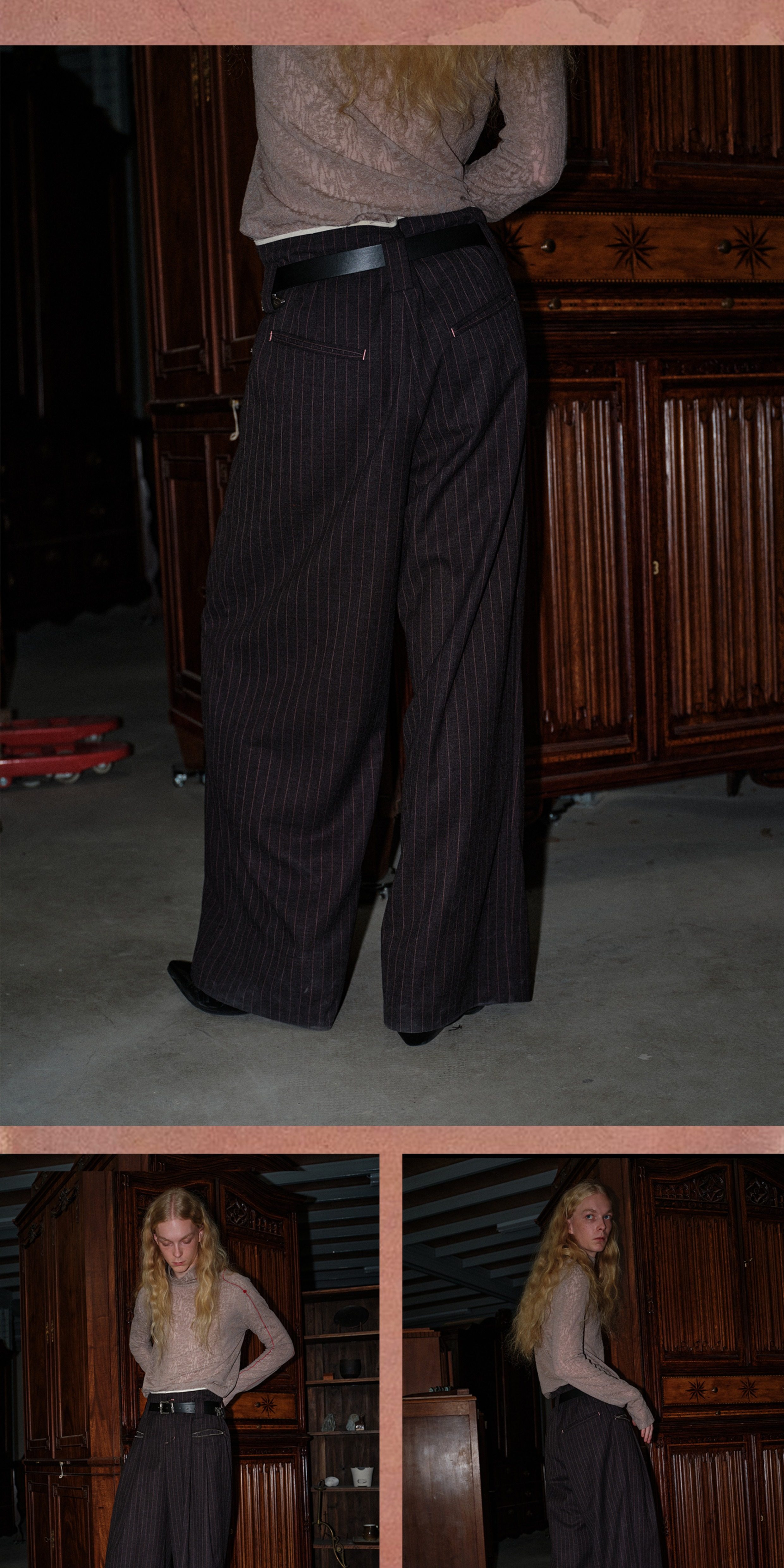 Soknot〔Tibetan Red Erosion〕Original Niche Designer Brand Gray-Pink Striped Dress Pants Casual Long Pants for Men