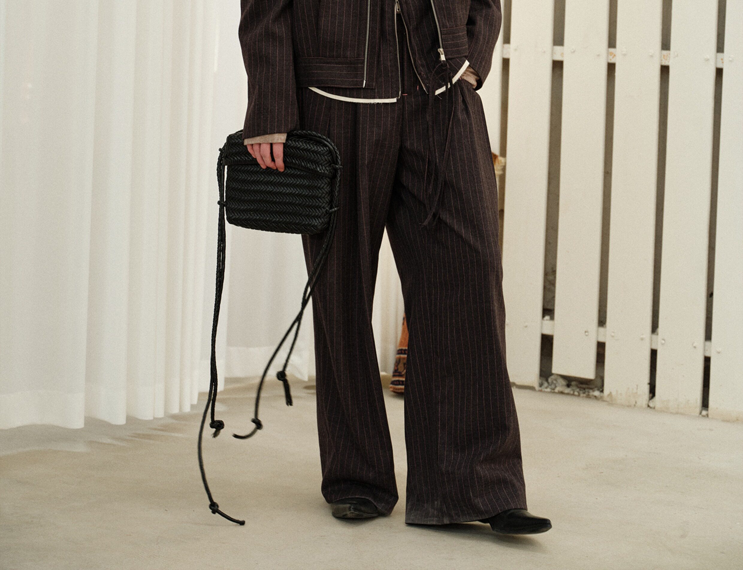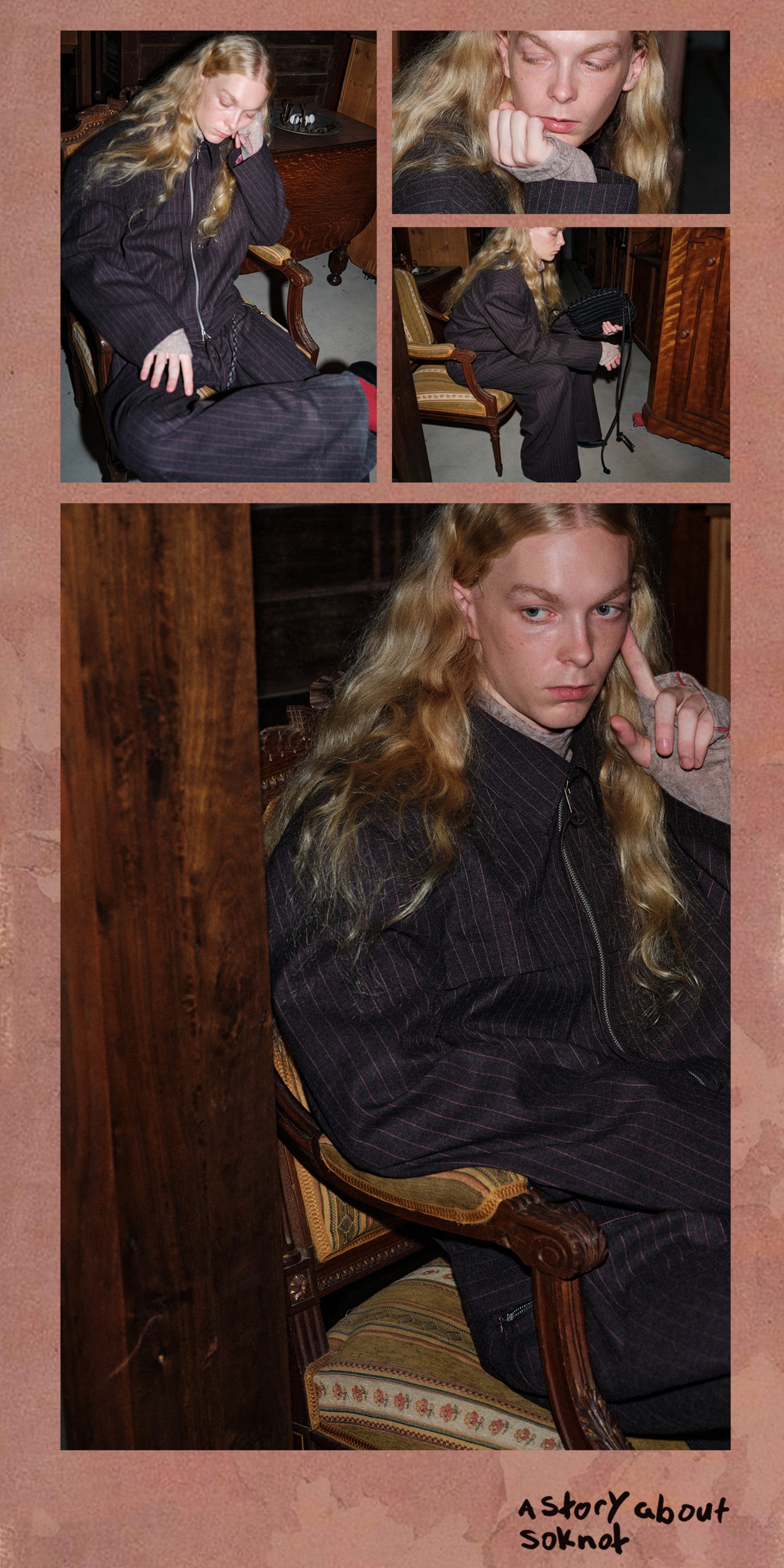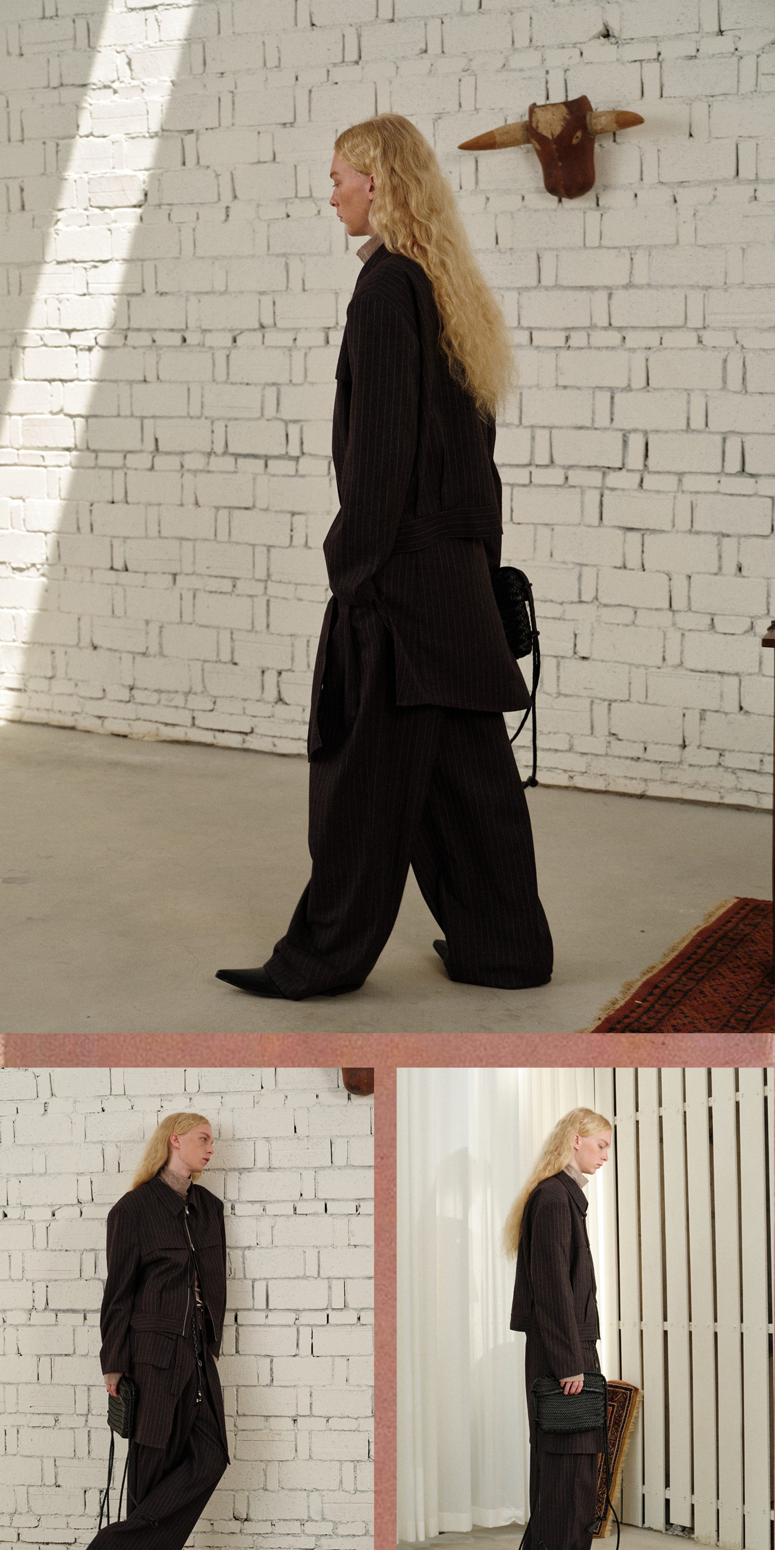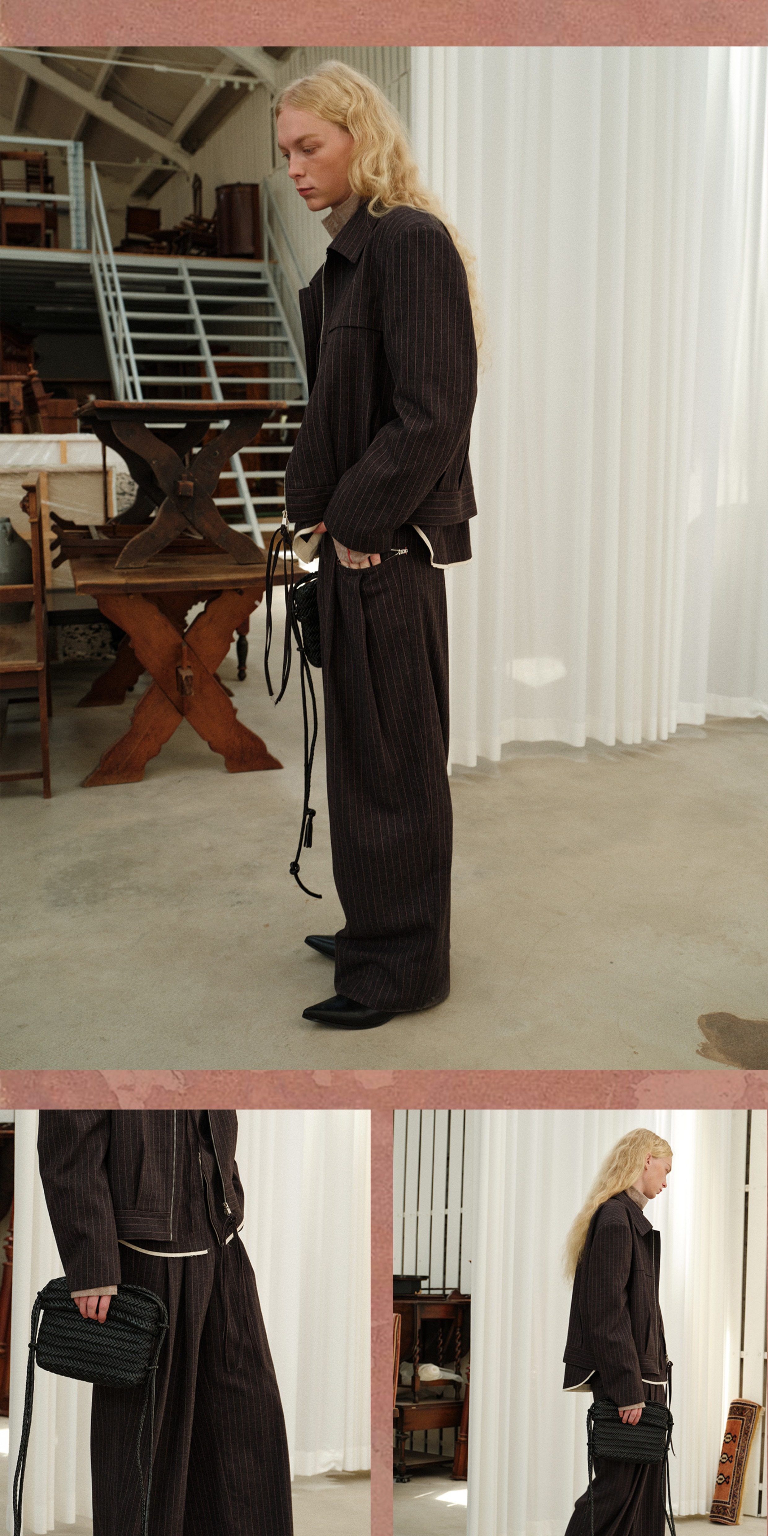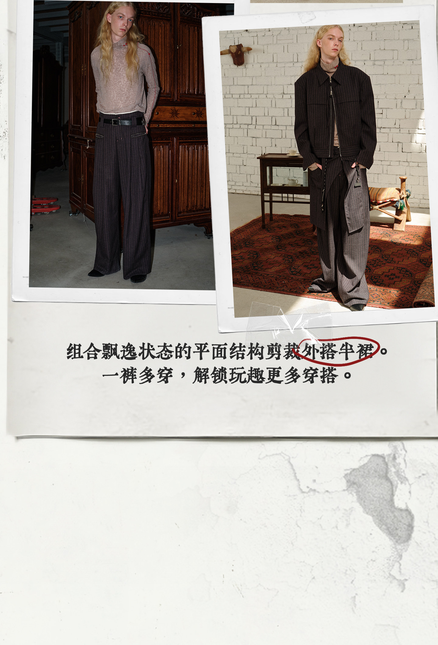 Soknot〔Tibetan Red Erosion〕Original Niche Designer Brand Gray-Pink Striped Dress Pants Casual Long Pants for Men