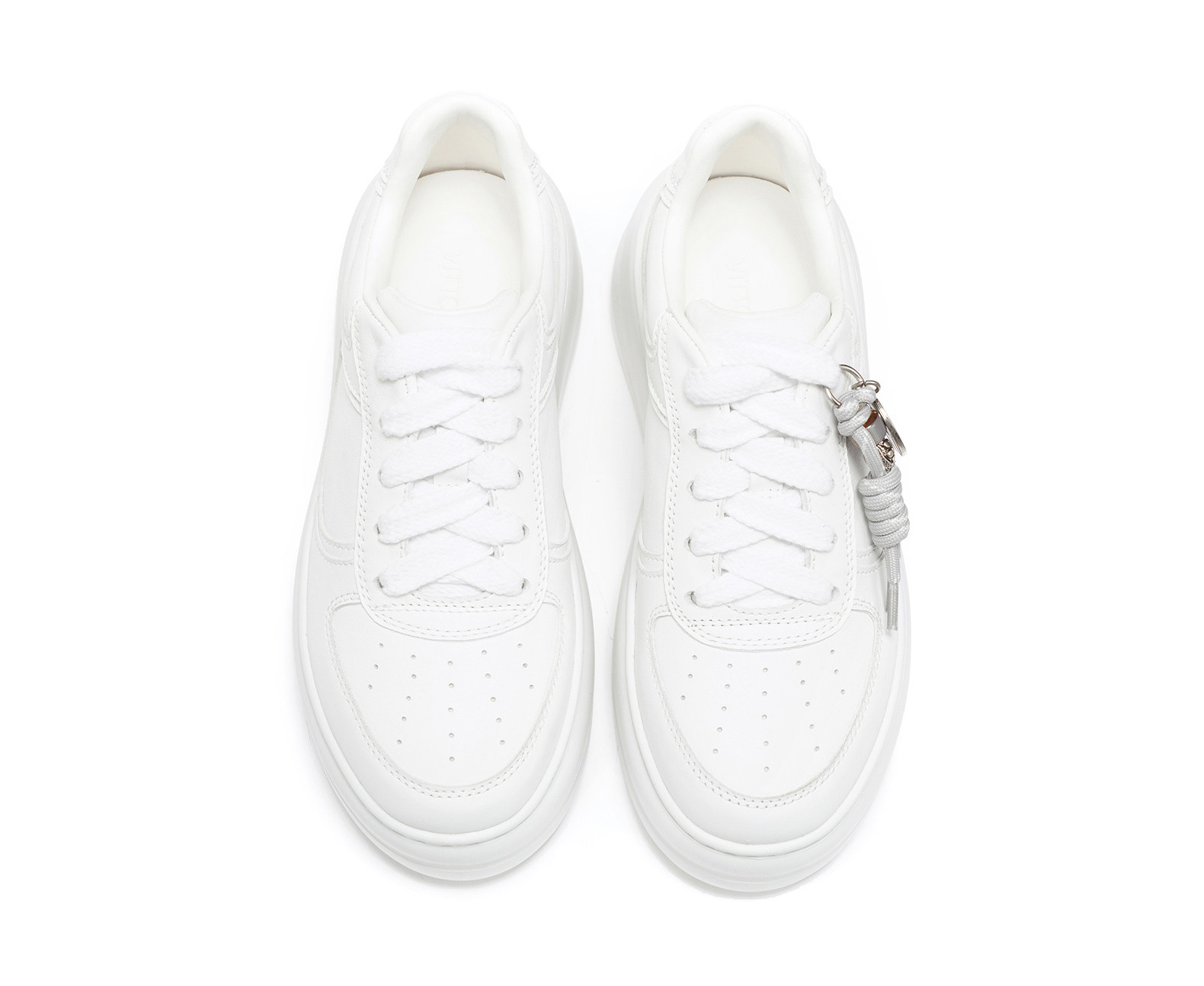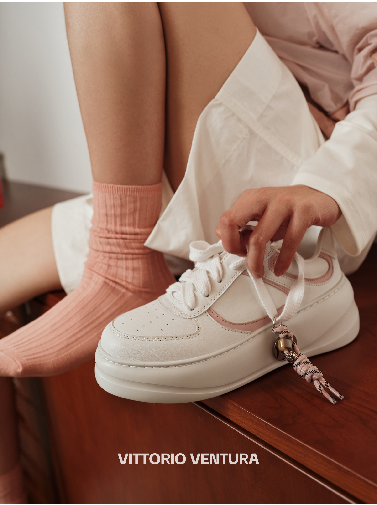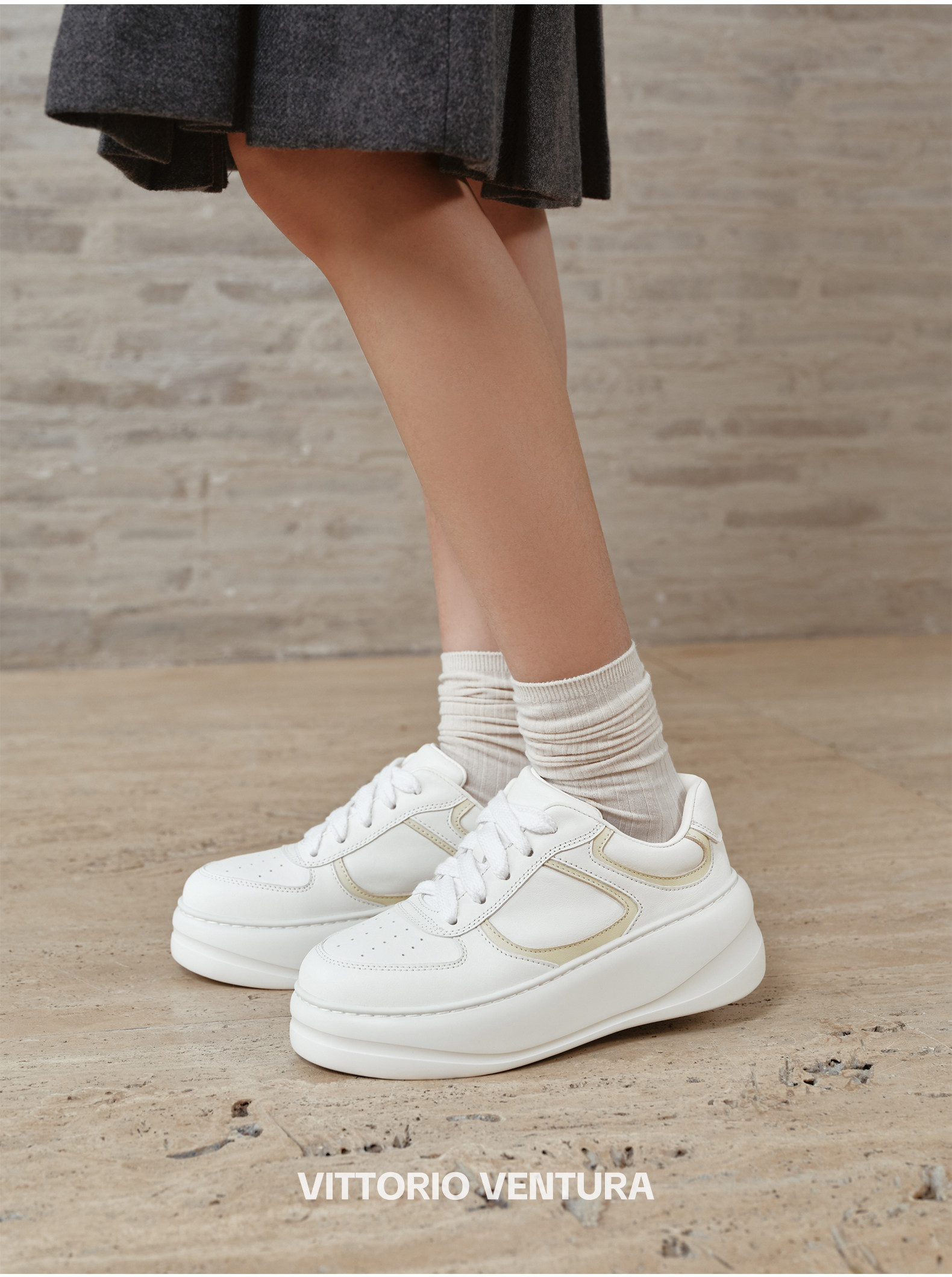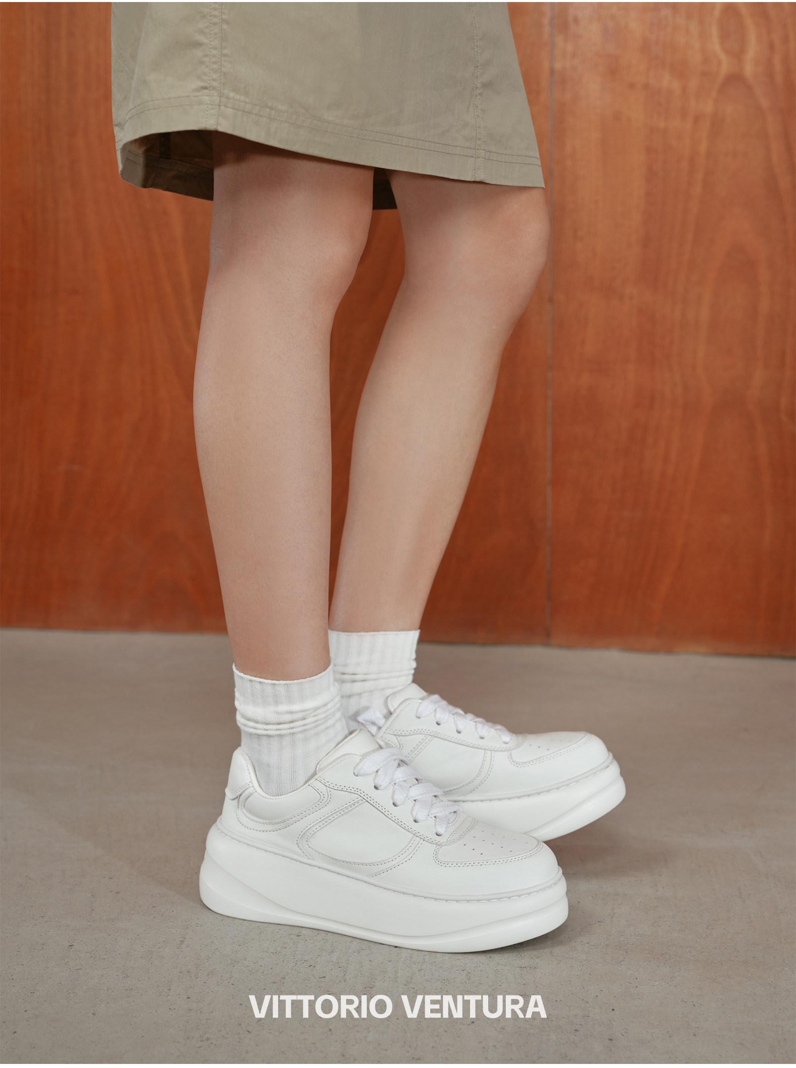 [Same Style as Dong Xuan] Vittorio Ventura Weiwei Ran Genuine Leather Thick-Soled Height-Increasing White Sneakers