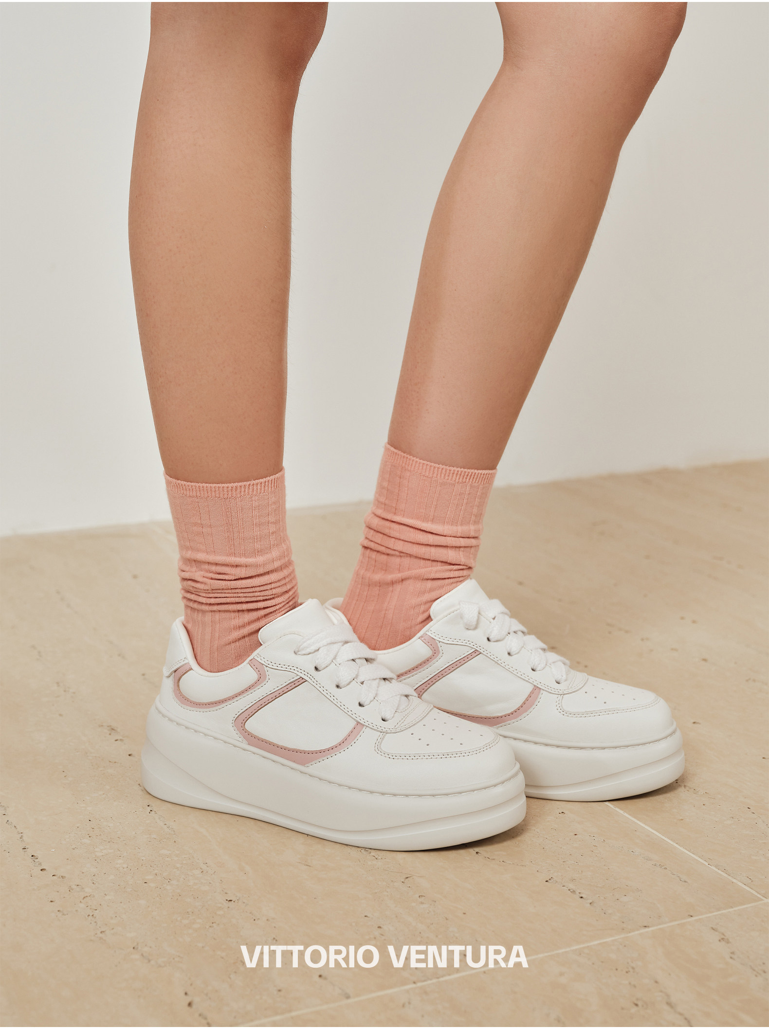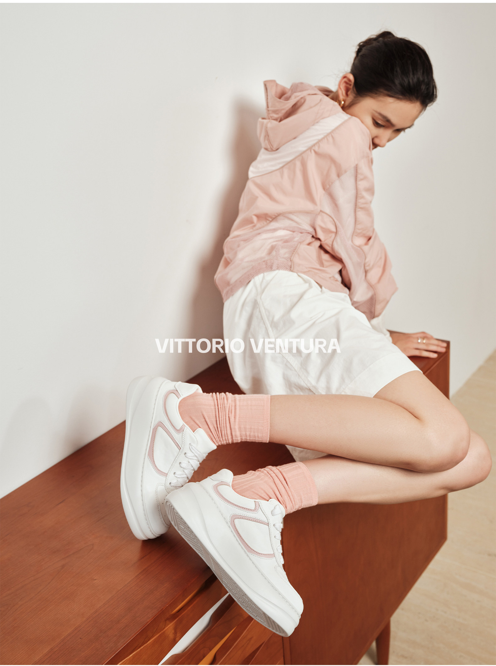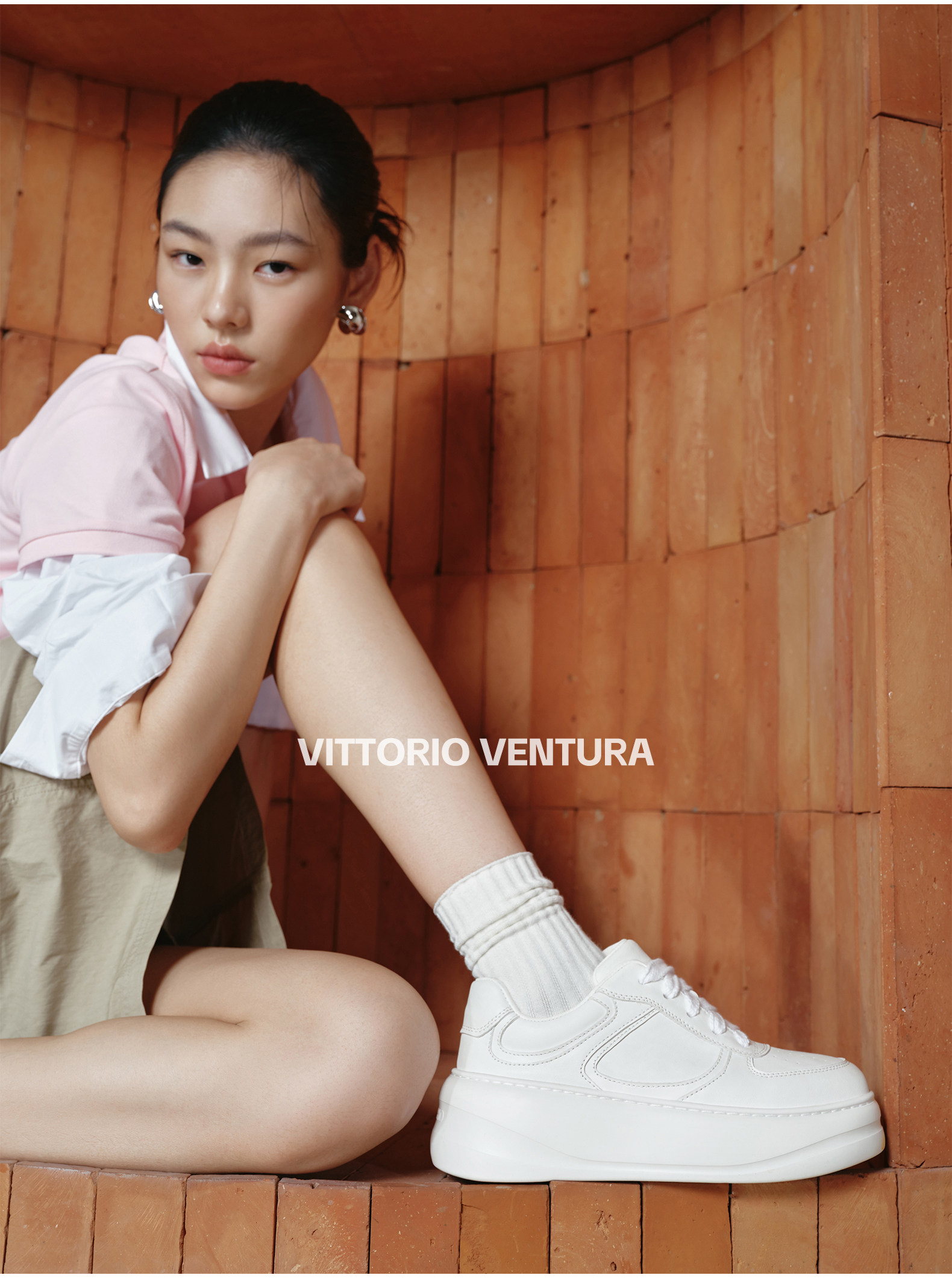 [Same Style as Dong Xuan] Vittorio Ventura Weiwei Ran Genuine Leather Thick-Soled Height-Increasing White Sneakers