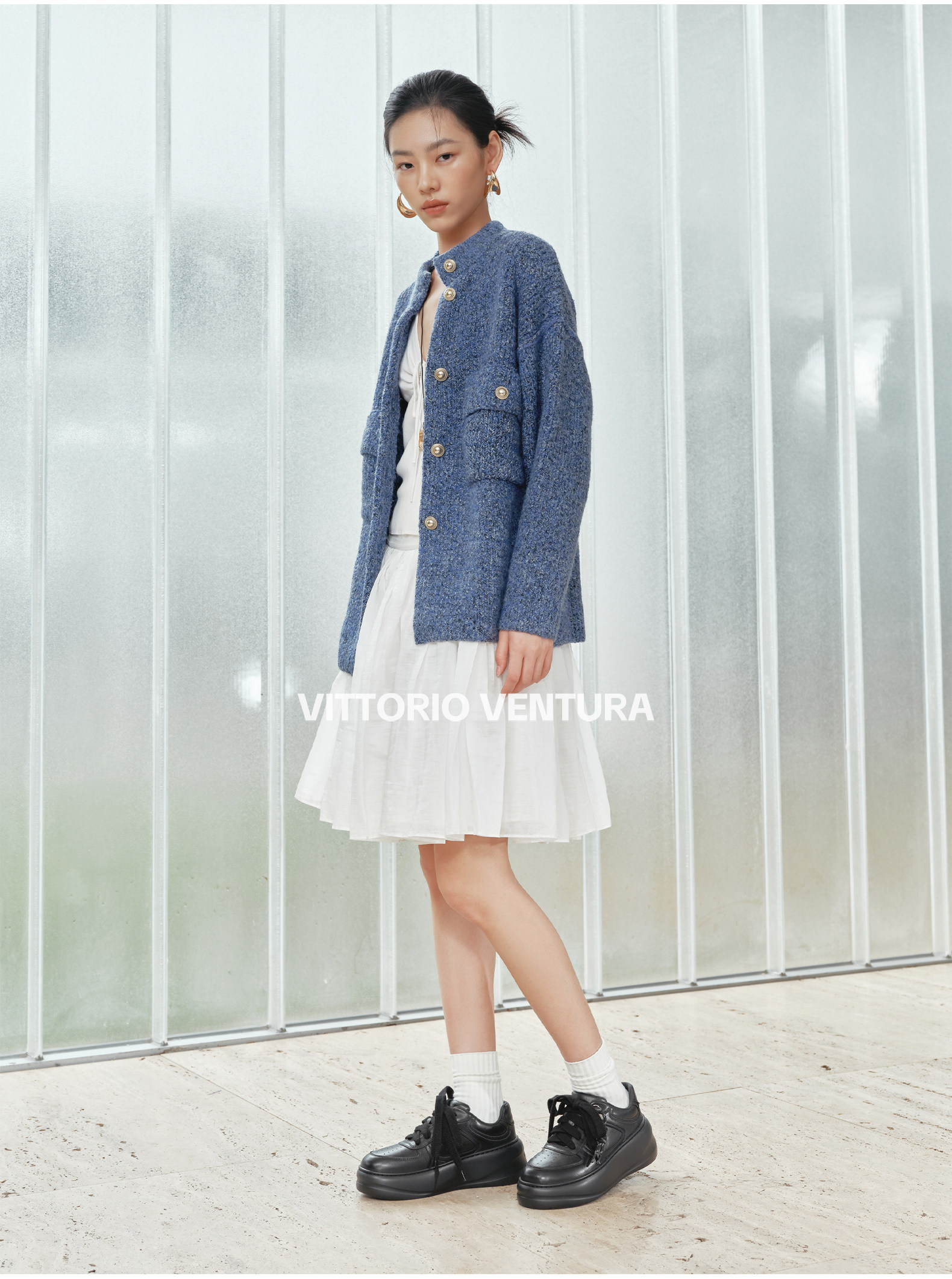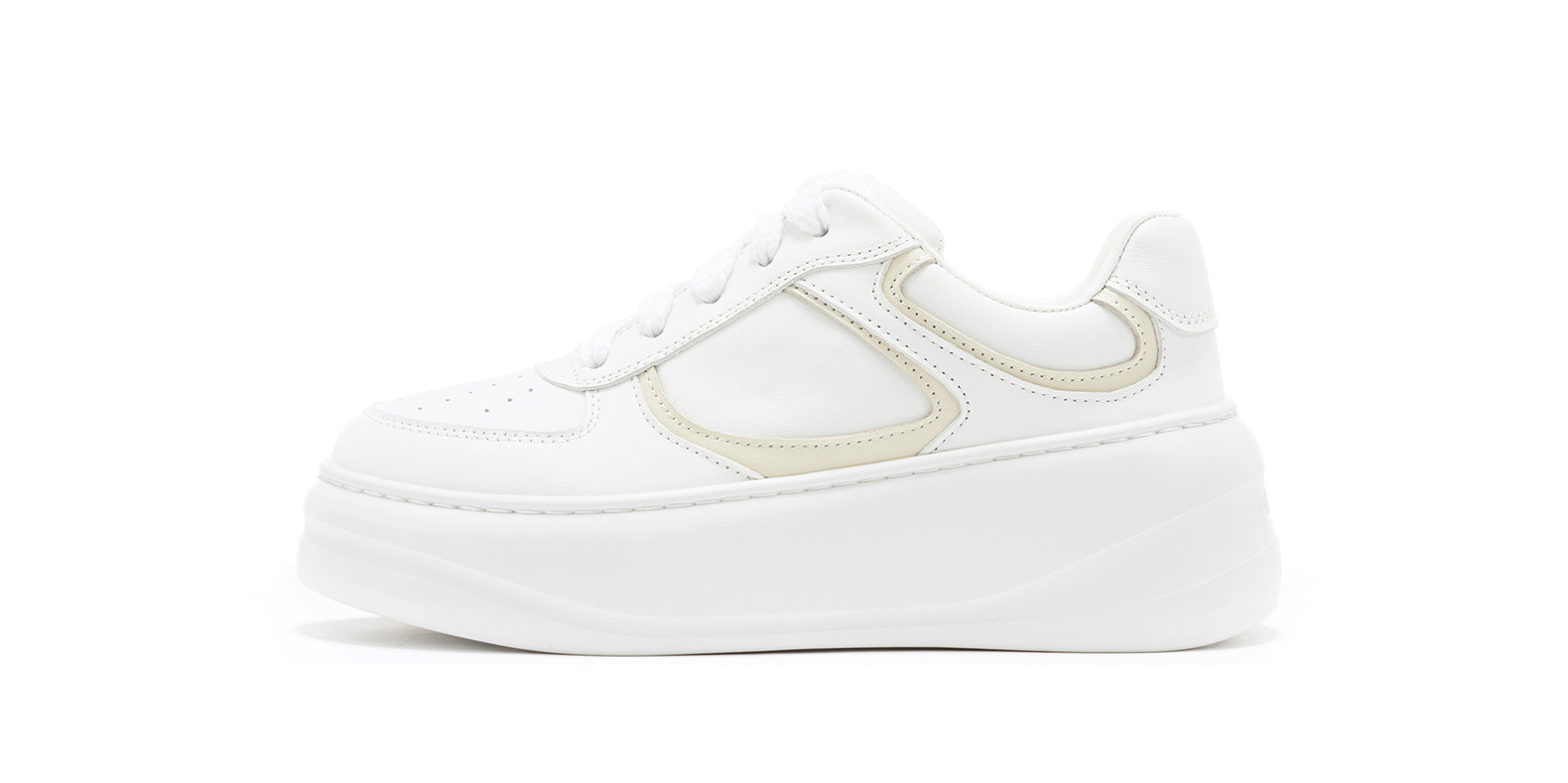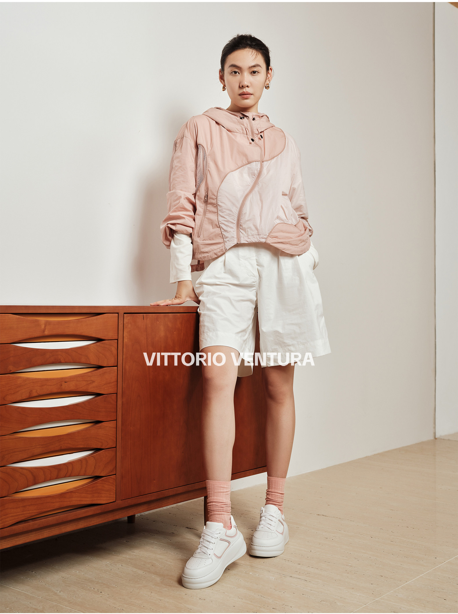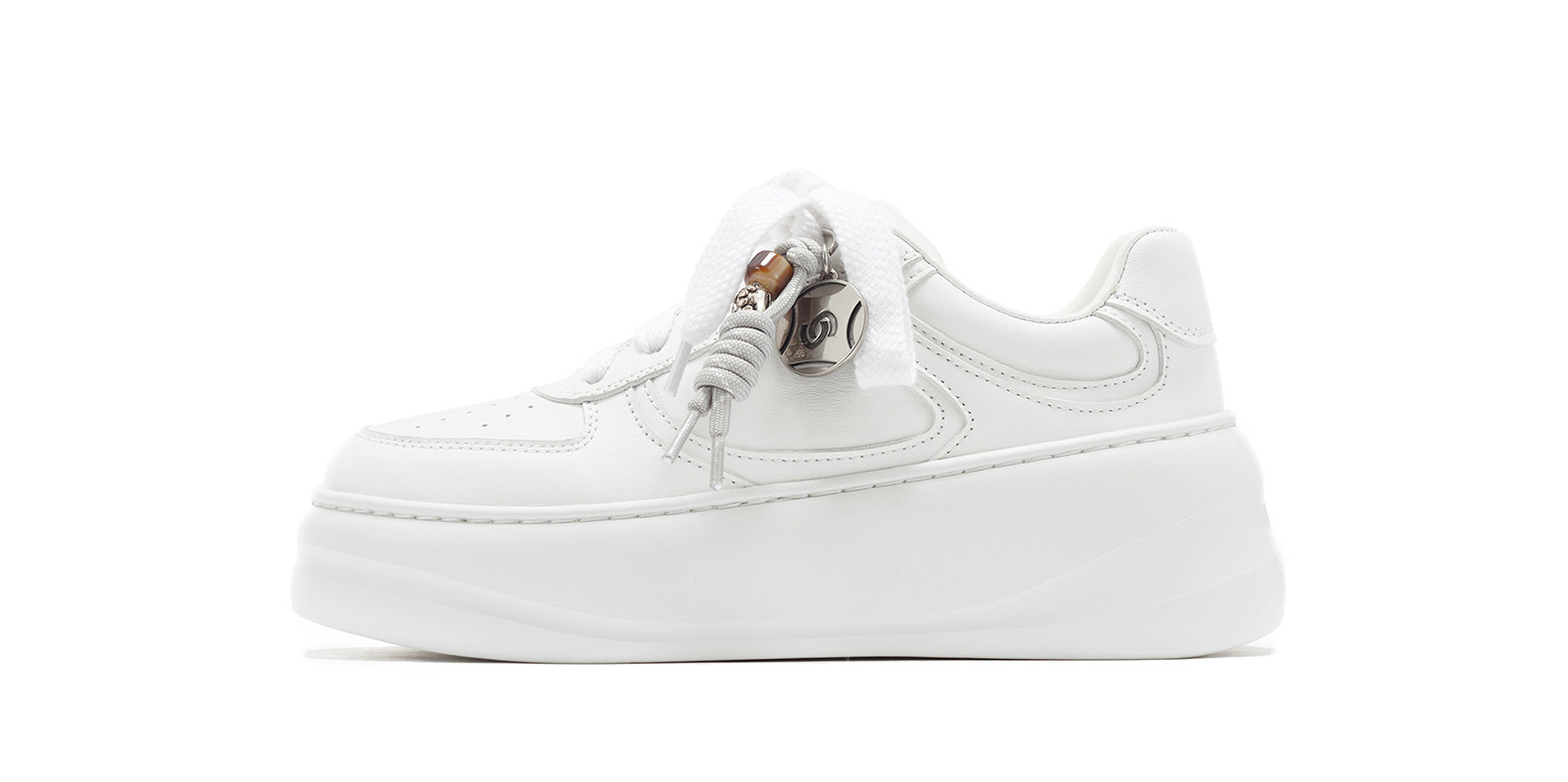 [Same Style as Dong Xuan] Vittorio Ventura Weiwei Ran Genuine Leather Thick-Soled Height-Increasing White Sneakers