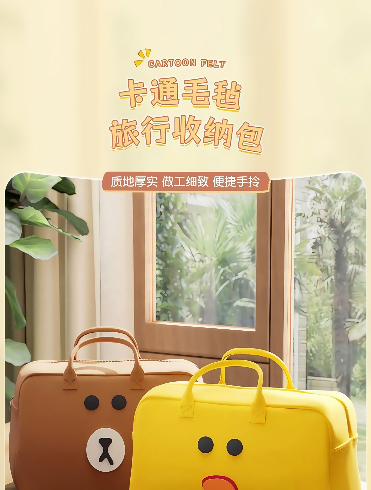 Cartoon Travel Bag, Storage Handbag, Large Capacity Children's Luggage Bag, Trolley Suitcase, Felt Bag, Lightweight