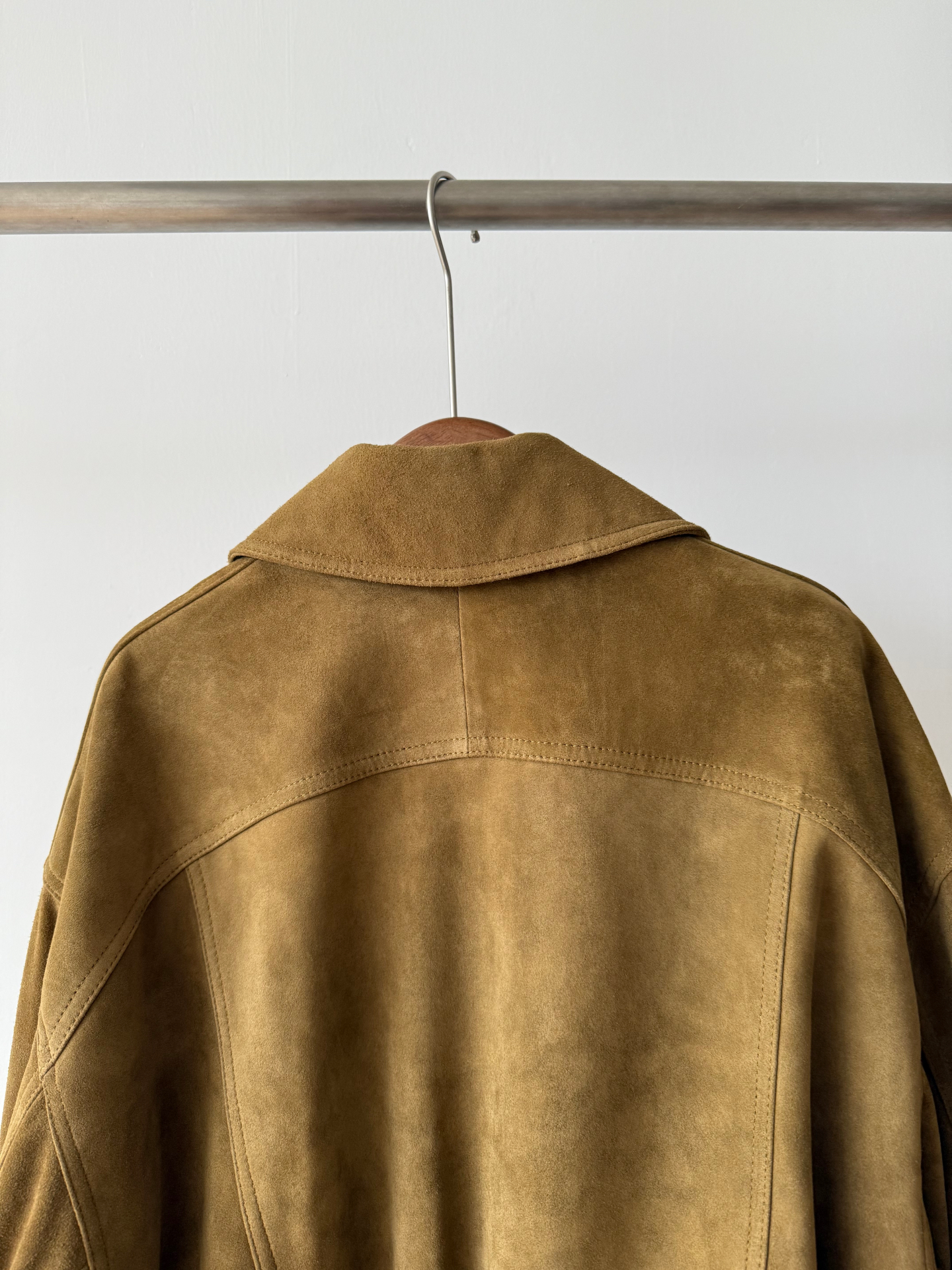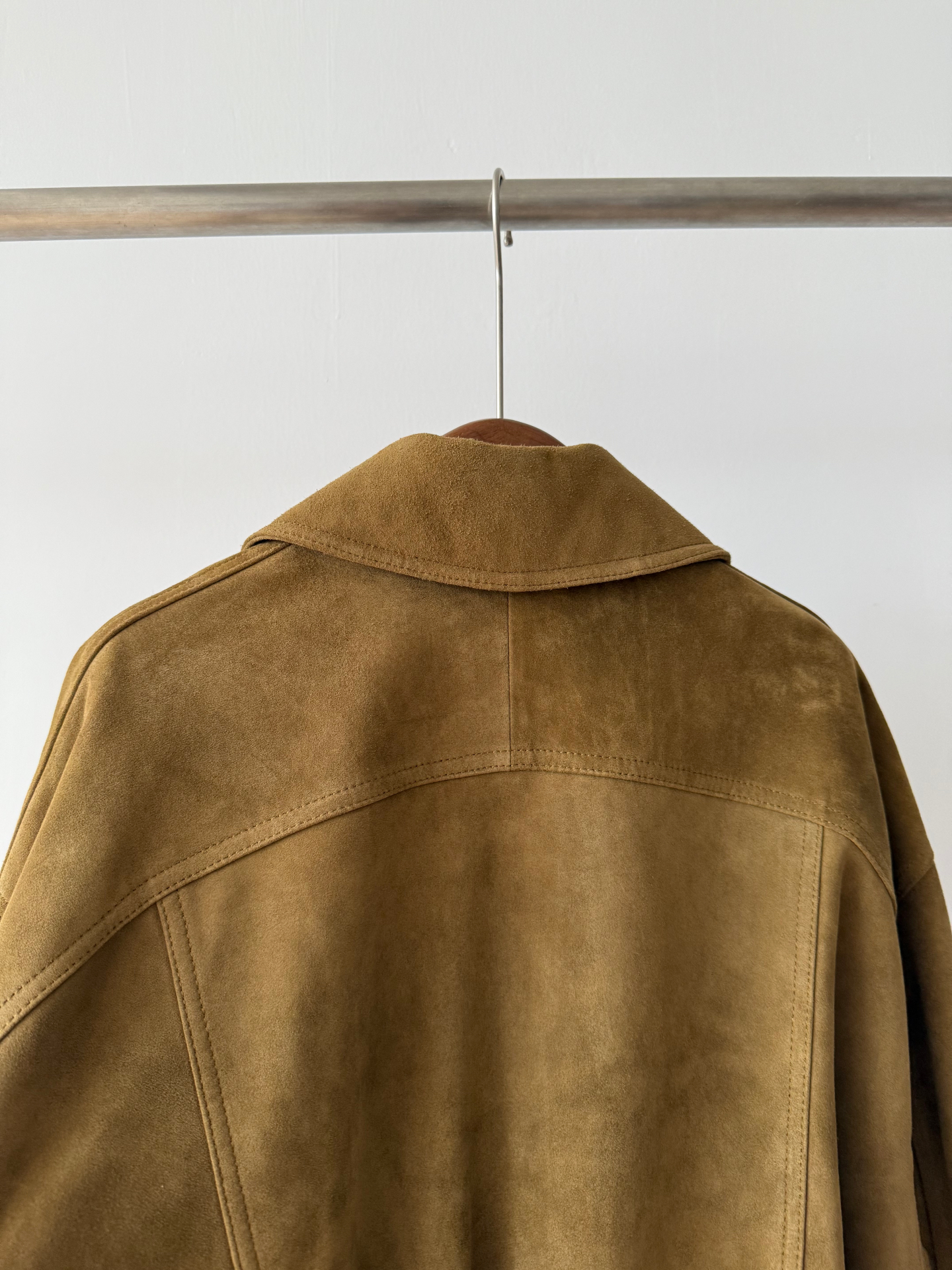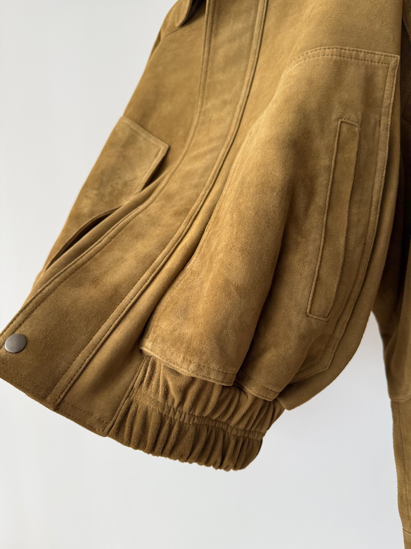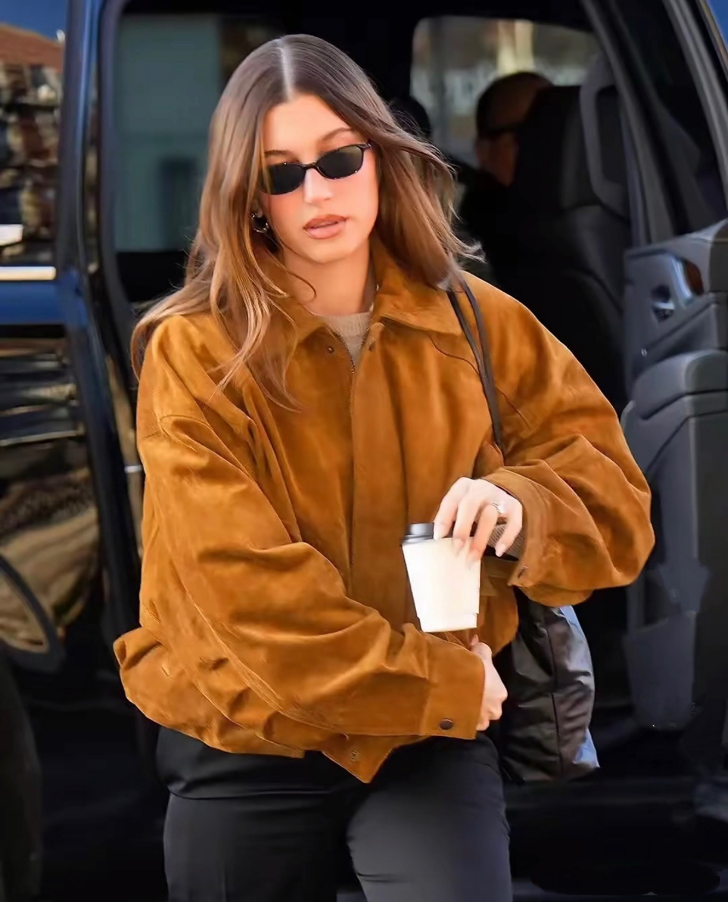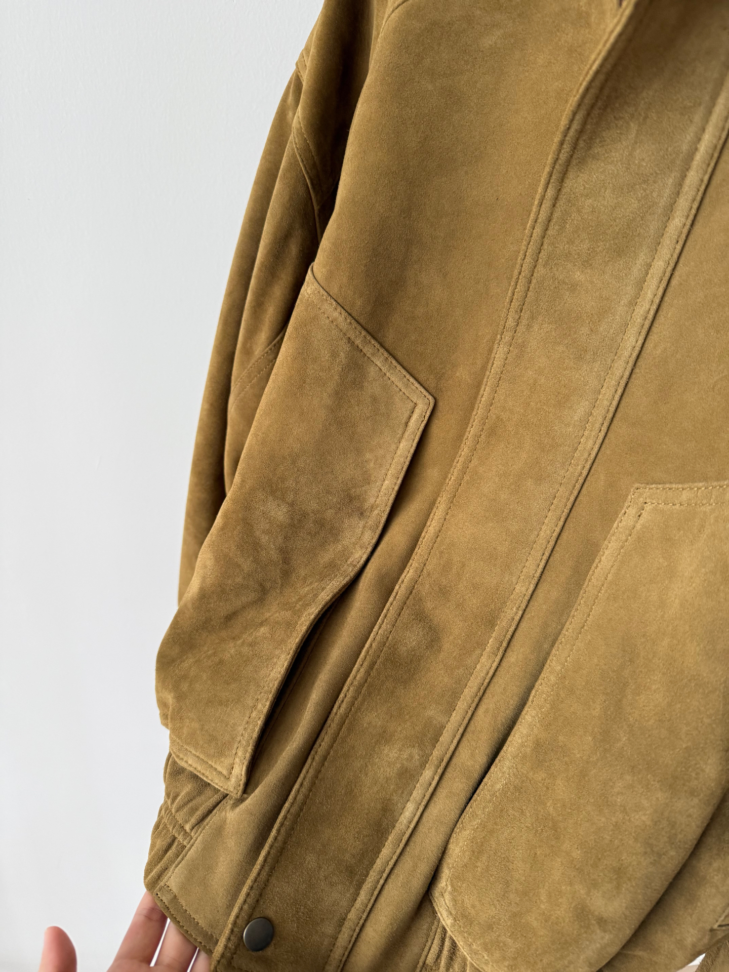 整体轮廓是oversize宽松廓形,衣身微微外扩,给身体留出充裕活动空间很会藏肉,落肩+微肩宽线组合,消弱肩部的硬朗感,是非常适配亚洲人的肩型,优化头肩比,把“松弛感”拆解为:空间感(宽松不紧绷)、比例感(优化头身比)、细节平衡感(下摆松紧、袖型变化)巧妙融合,让一件皮衣既能适配日常随性出街,又能通过版型细节叠加精致度,搭配不同下装,可切换街头潮酷或复古文艺风格 。