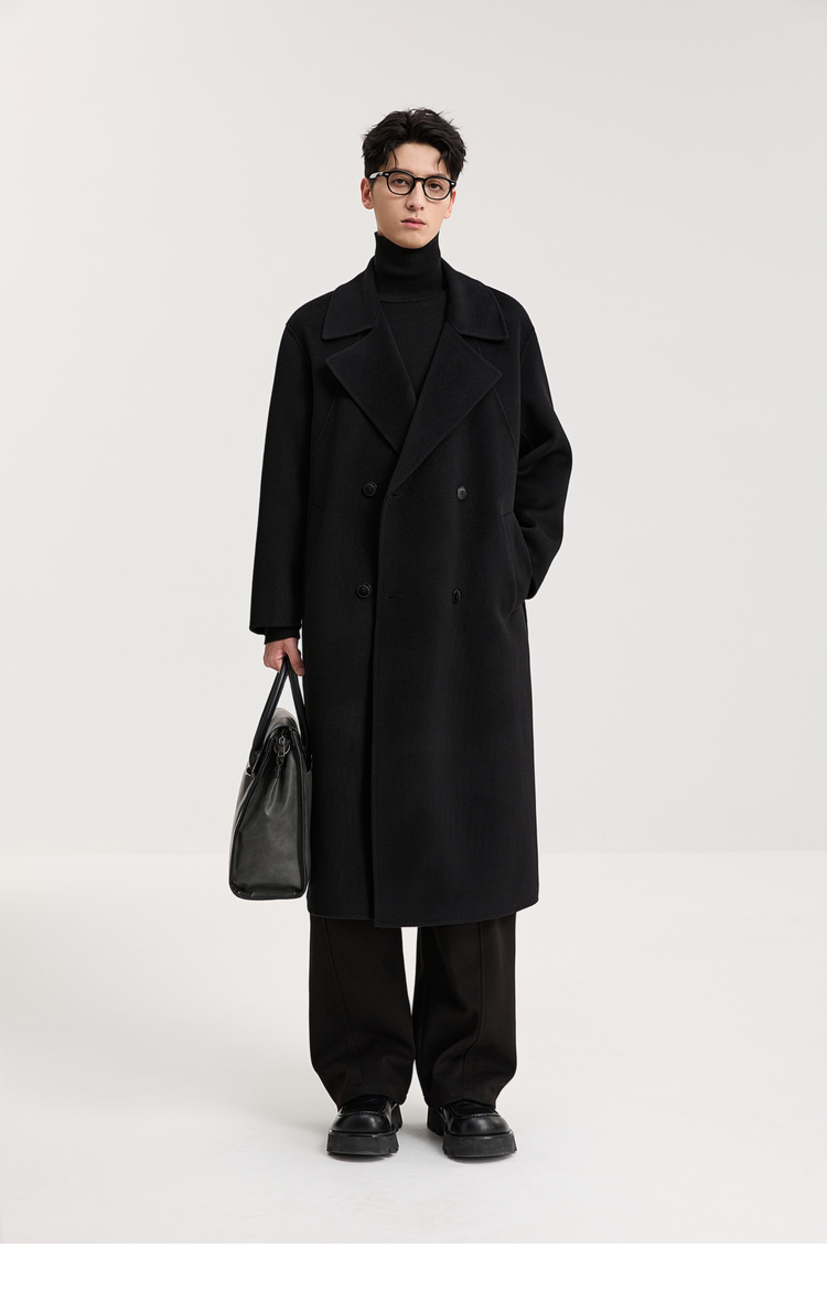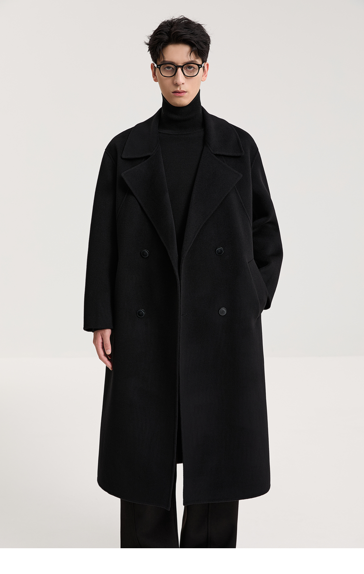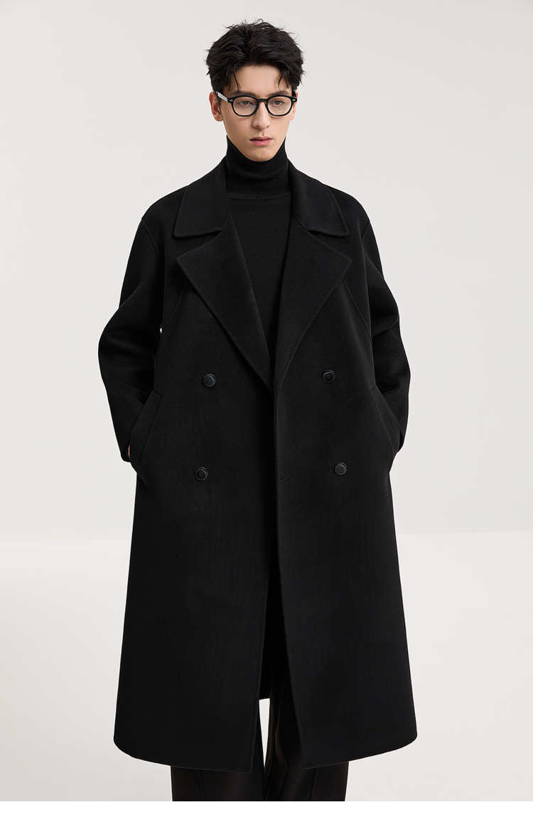 100% Sheep Wool Black Double-Sided Woolen Coat for Men 2025 Autumn New High-End Woolen Mid-Length Coat